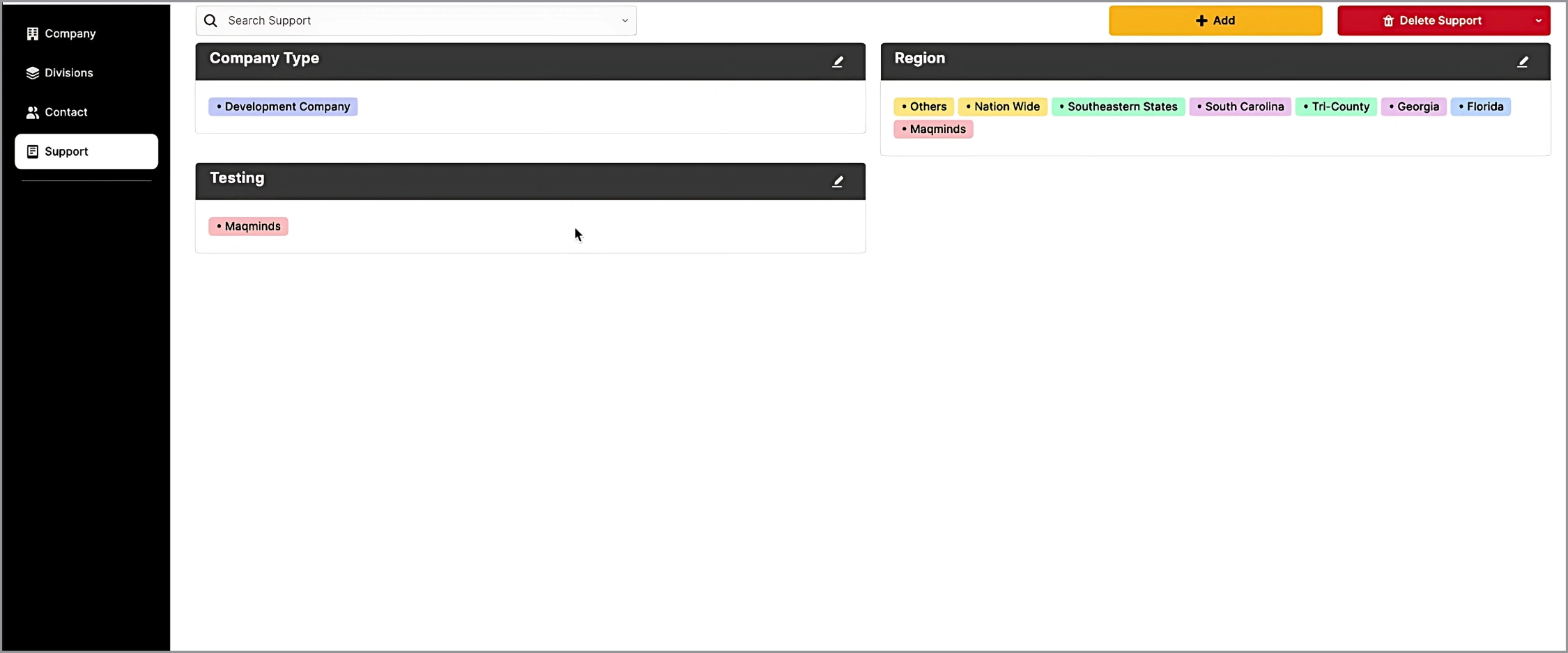 Dynamic support tables maintain all reference data and can be updated in real-time.