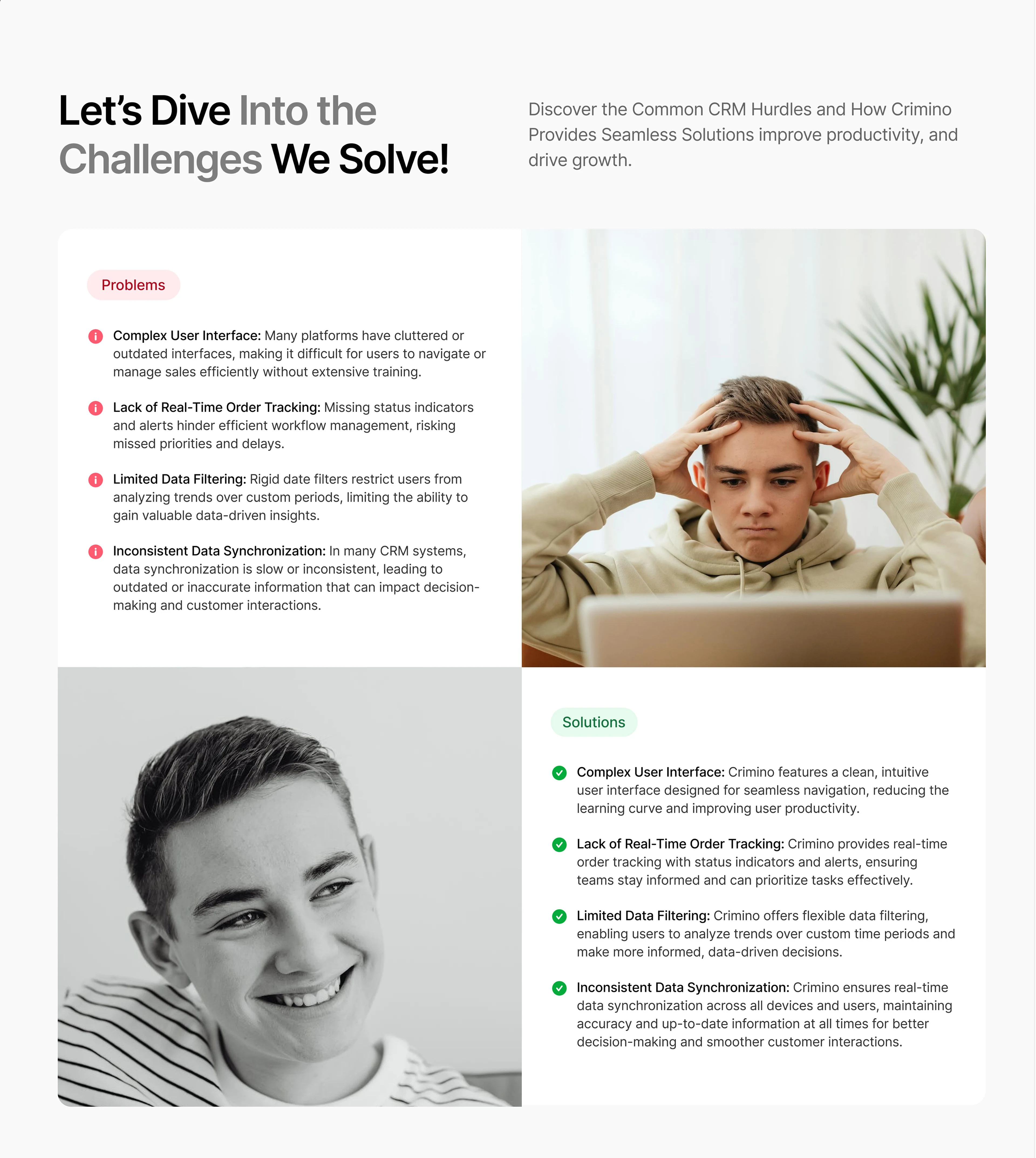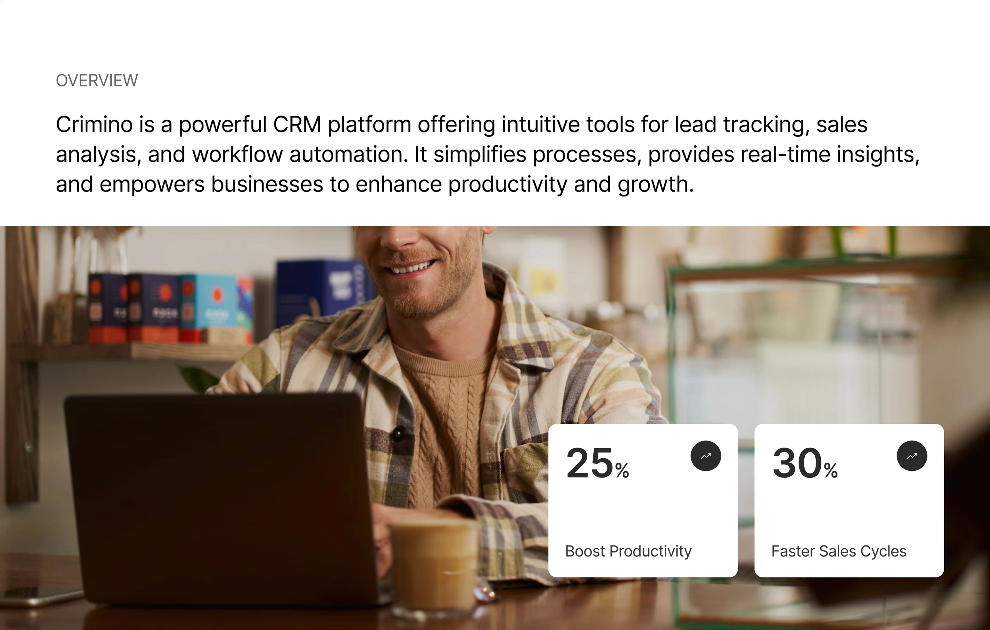 Crimino makes managing customer relationships effortless. Track leads, automate workflows, and focus on what matters—building lasting connections.
