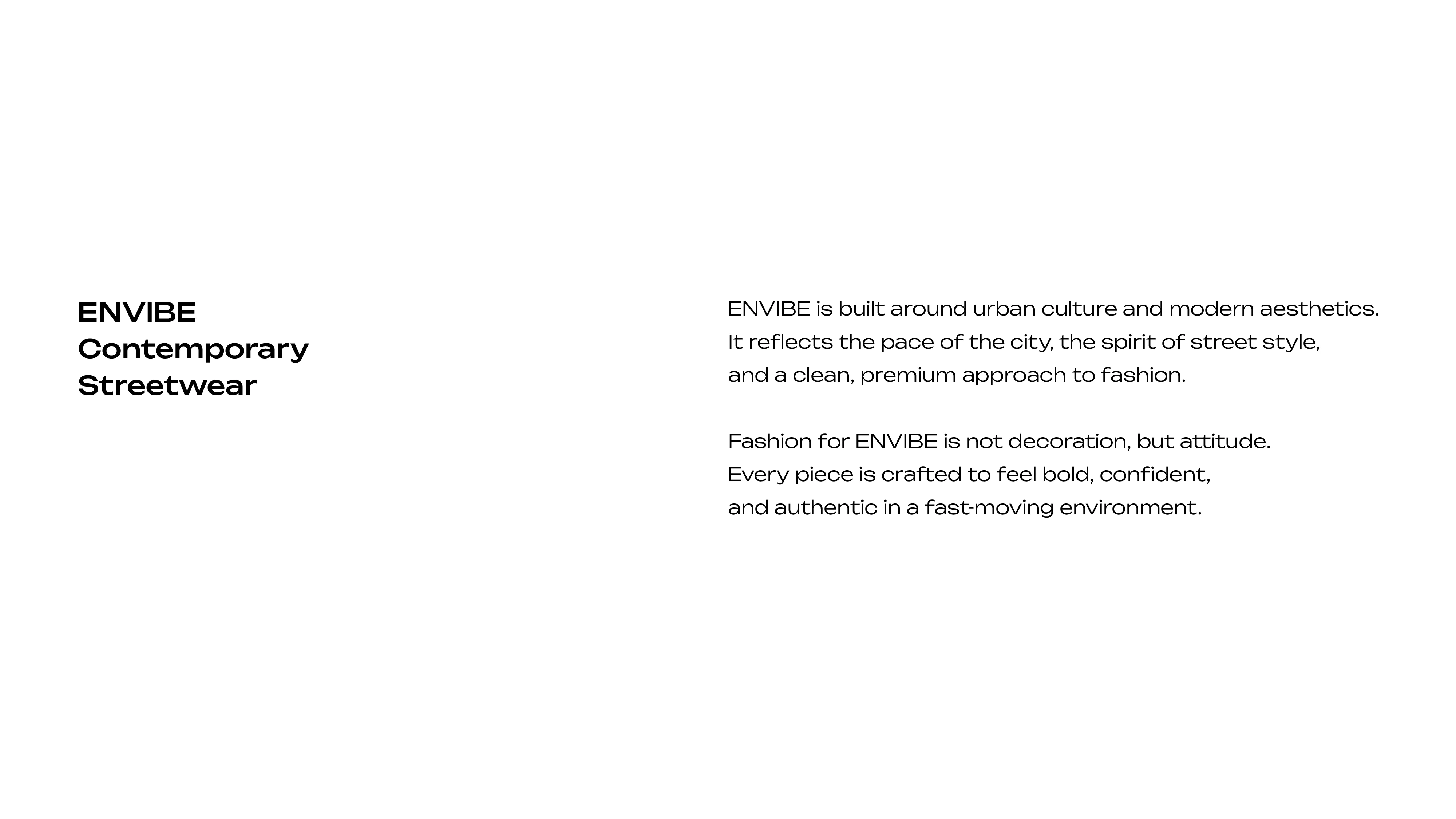 Contemporary streetwear built on urban culture and clean premium aesthetics — where city pace meets street style.