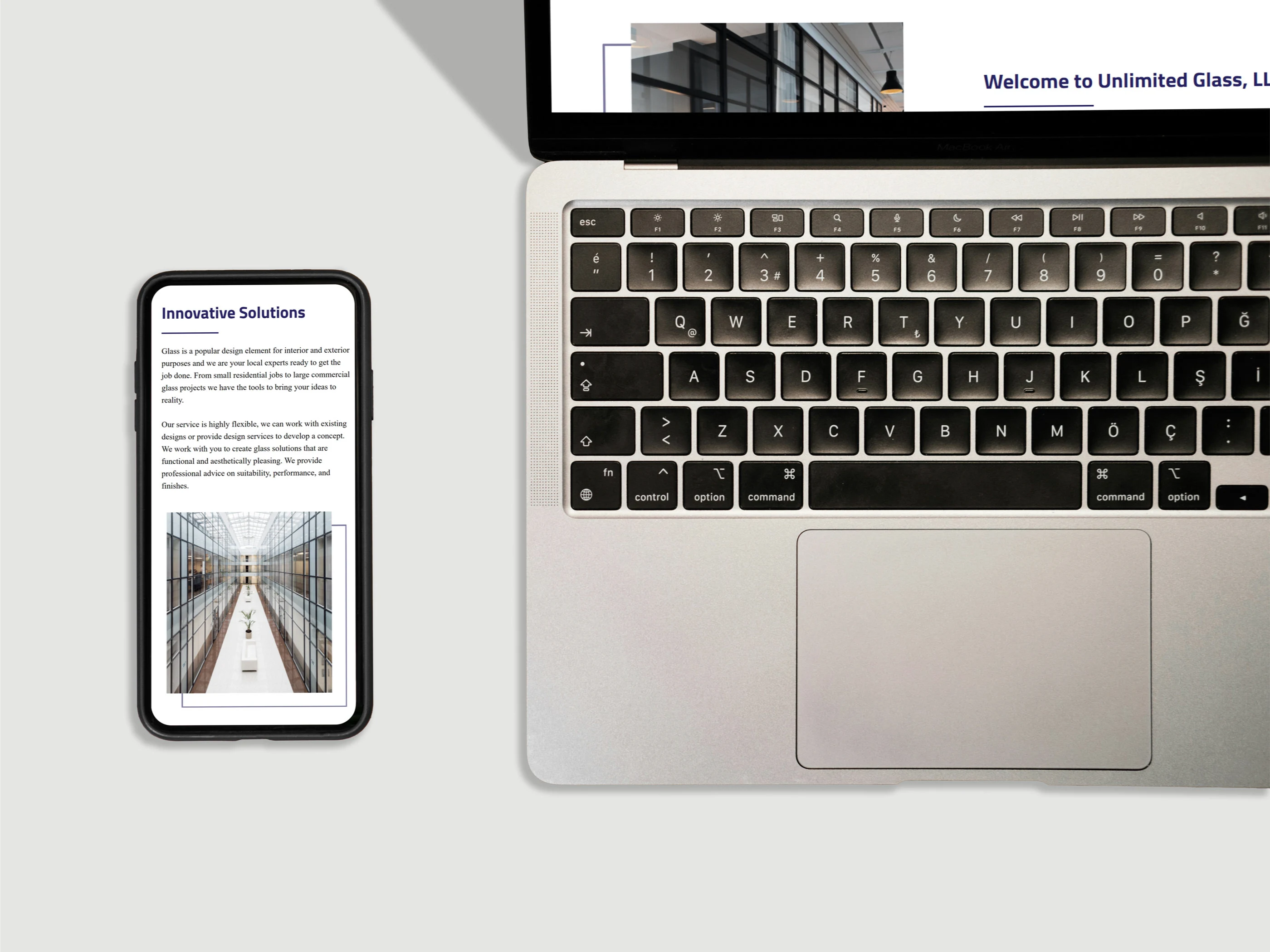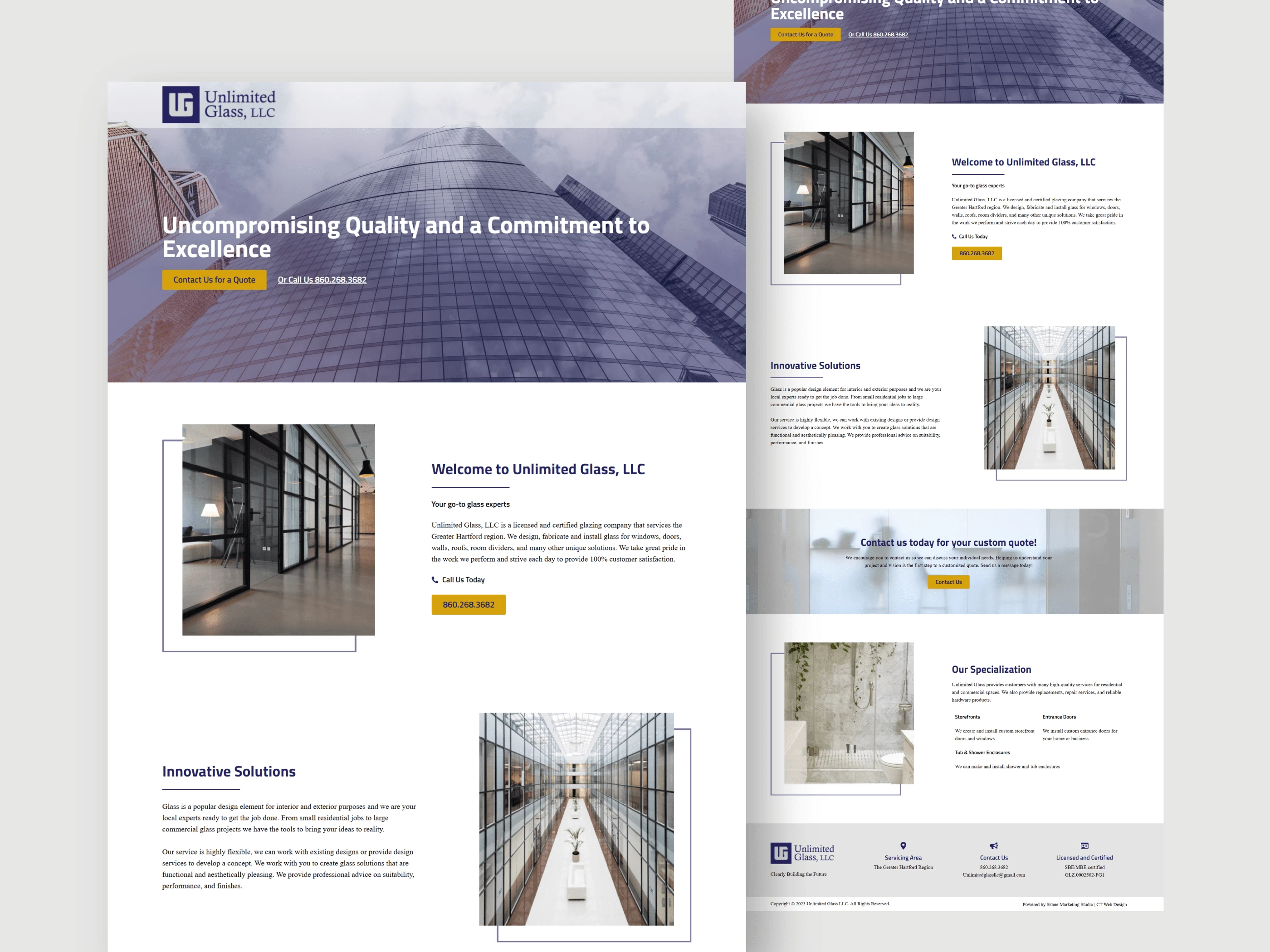 Created a cohesive brand identity and startup website for Unlimited Glass LLC, establishing a strong foundation for their business growth.