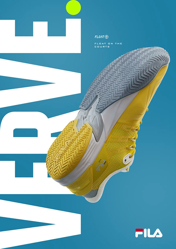 Developed for tennis athletes, Float Verve unites comfort, cushioning, and energy return. CGI film and images highlight ifeatures and connection to the sport.