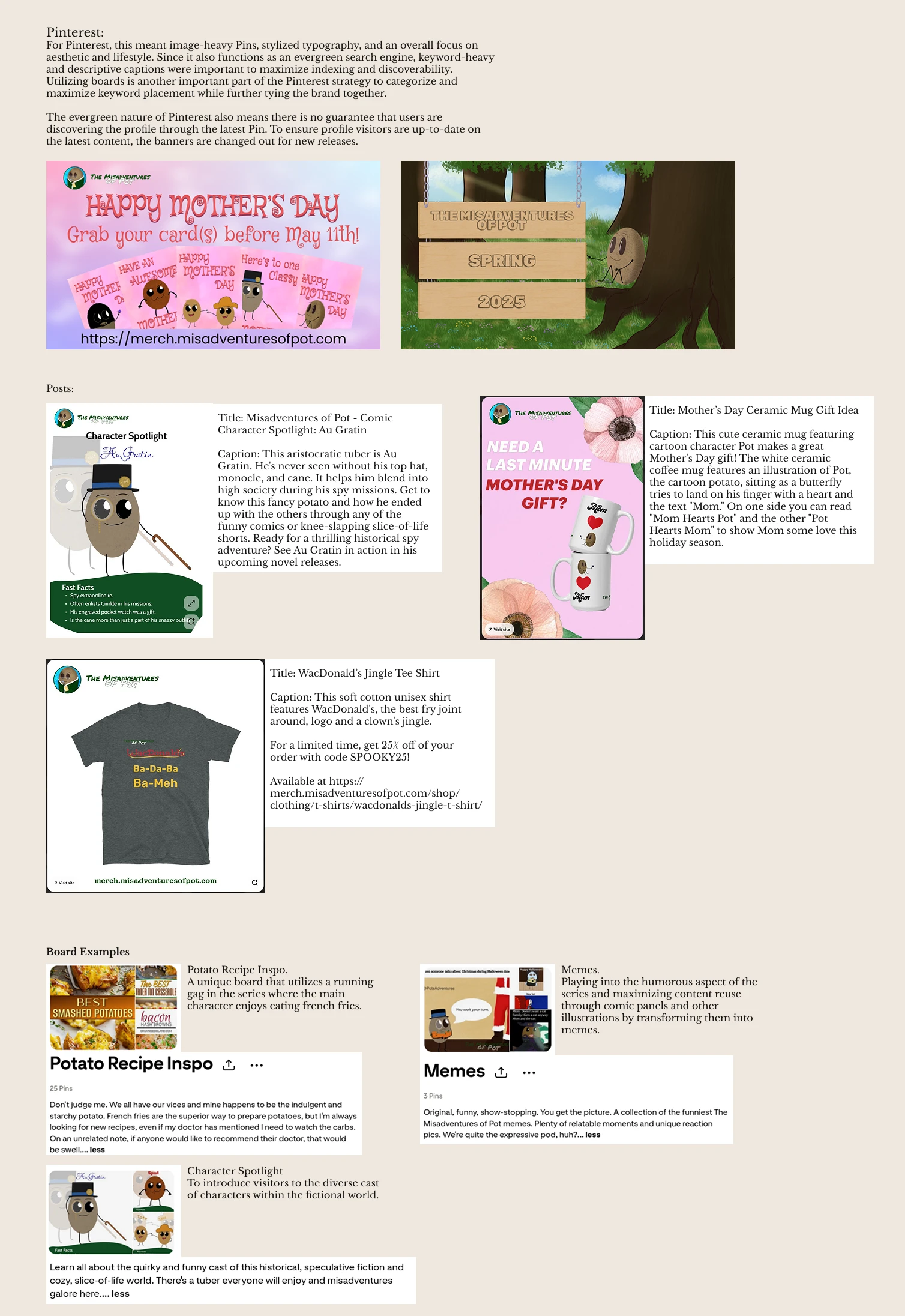 Created a successful social presence for The Misadventures of Pot by achieving an 800% boost on Pinterest and site clicks doubling in under a month.
