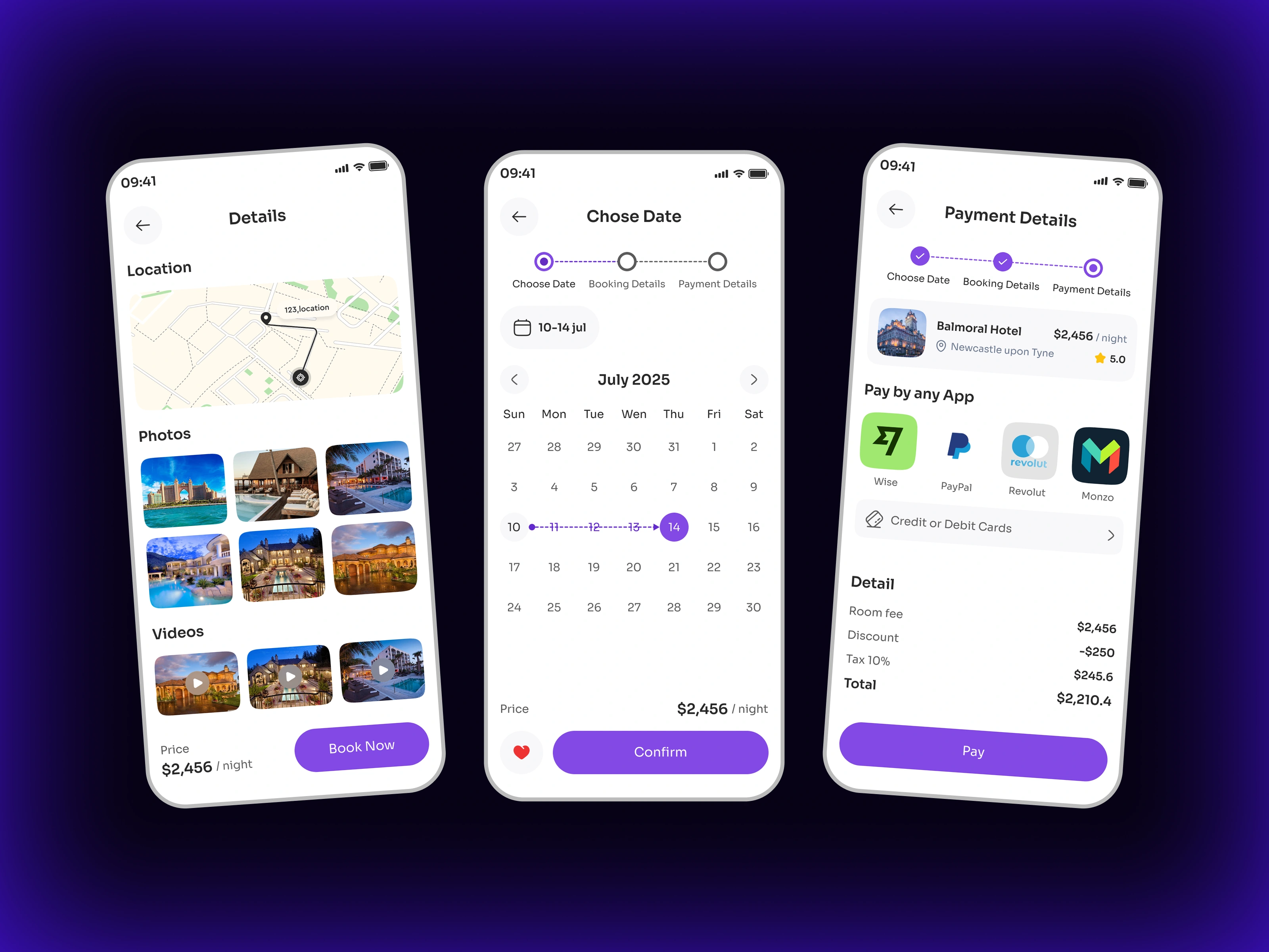 To create this hotel booking app, we prioritized a smooth, user-centric experience in a travel app that makes finding and booking accommodations easier.