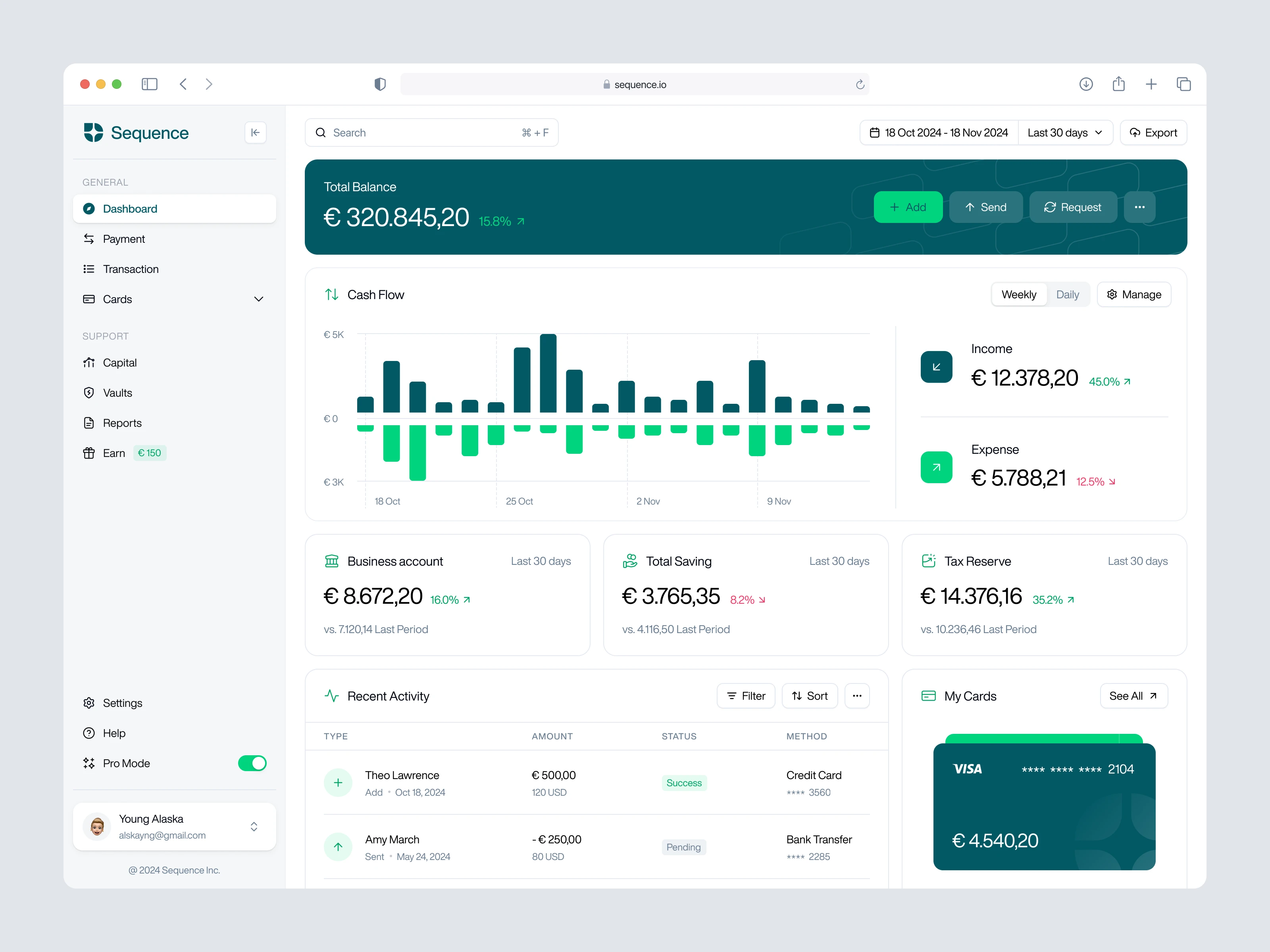Financial Dasboard called Sequence. Gain clarity and control over your finances effortlessly. With our intuitive platform, you can effortlessly track every transaction, uncover spending patterns, and set achievable goals.