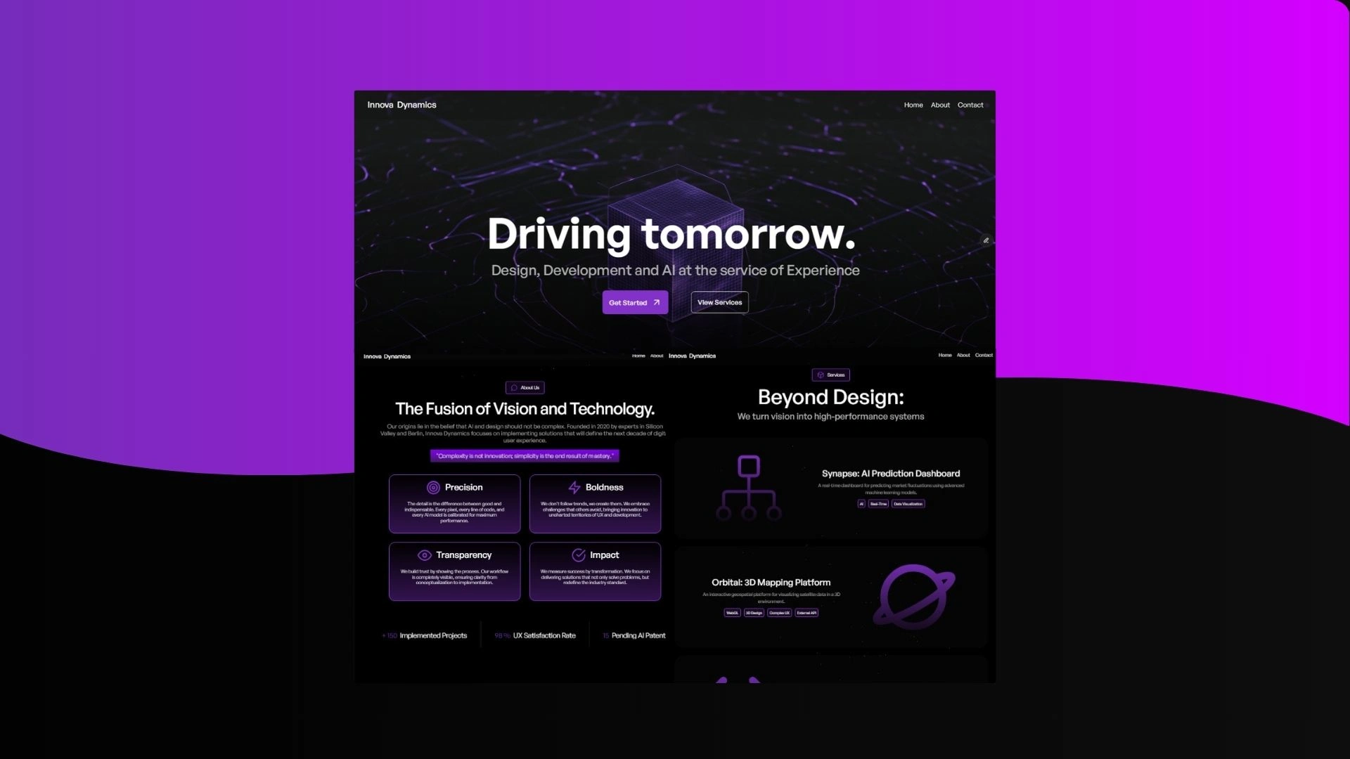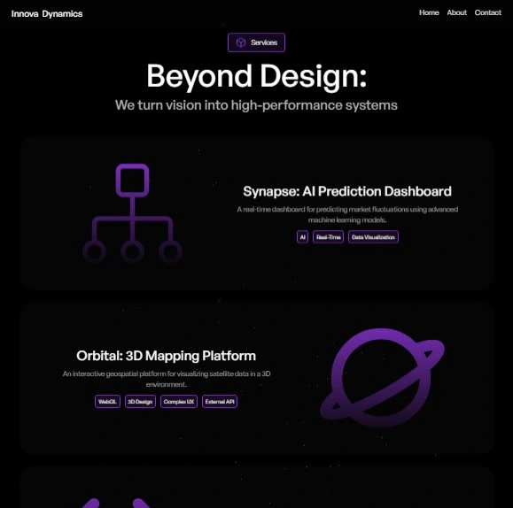 Conceptual website for Innovatech Dynamics. Designed and developed from scratch in Framer.