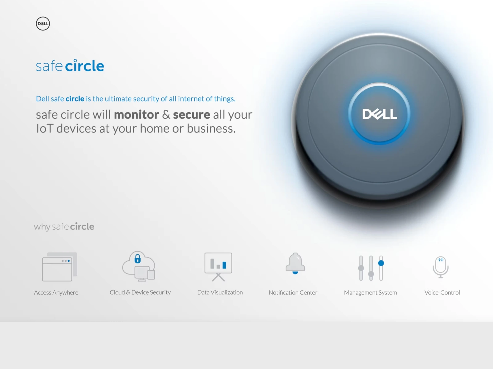 Dell Safe Circle is a device that monitors and secures all your IoT devices—whether at home or work. It's designed to provide ultimate IoT security.