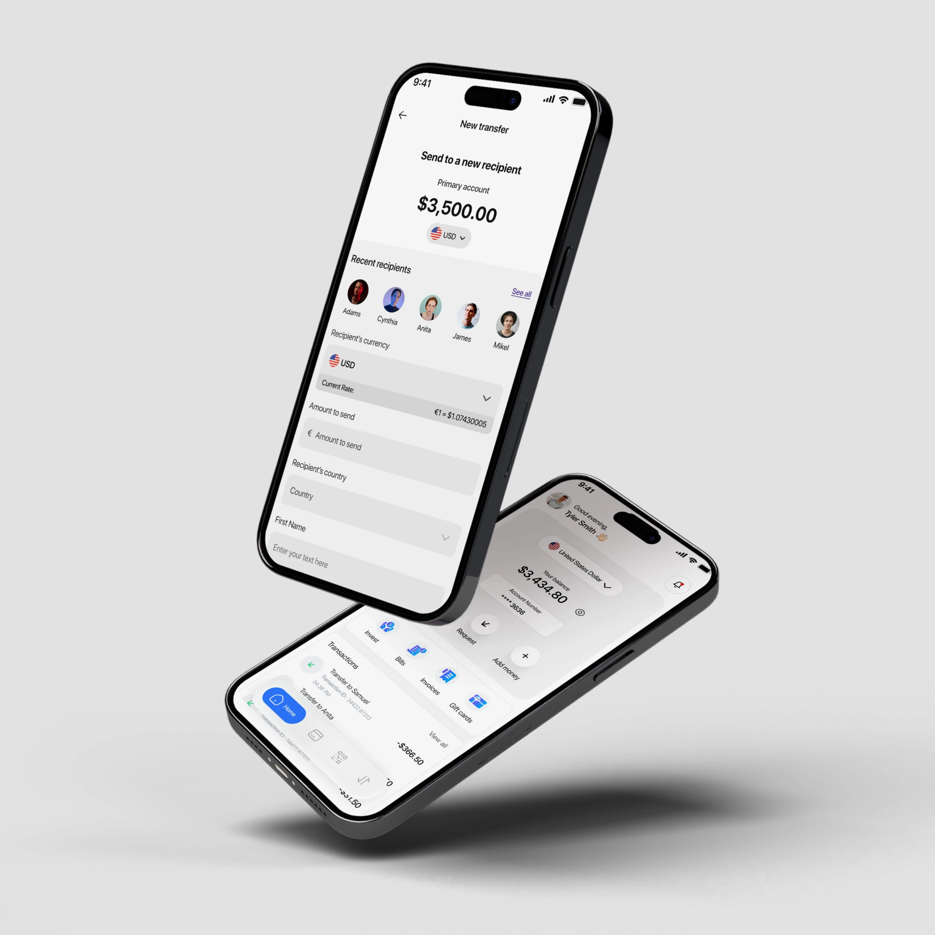 Transfer Flow: I designed a step-by-step process that allows users to select recipients, currencies, and amounts with ease, minimizing chances of errors.