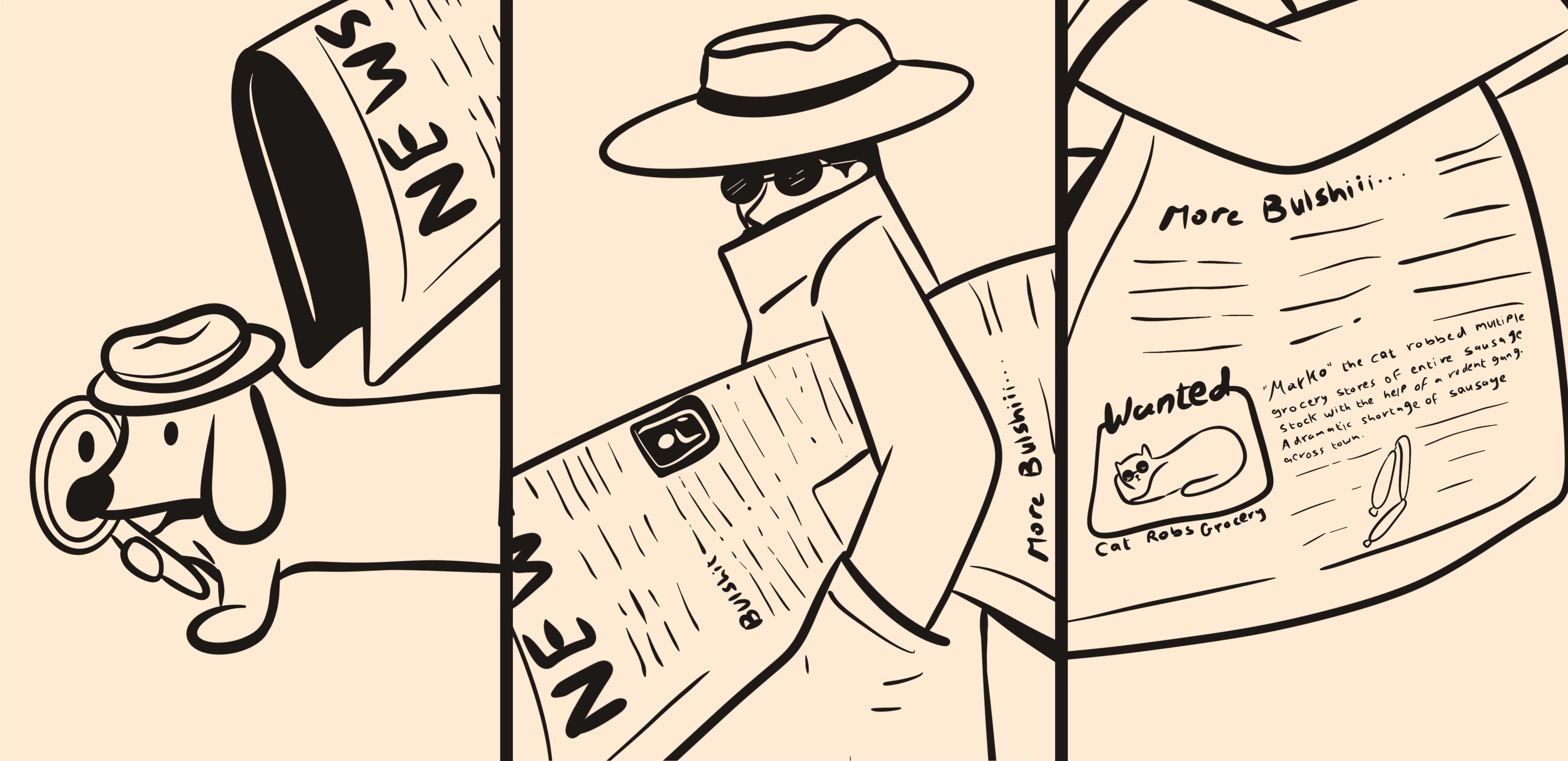 Meet detective “Bobby Buttons” and his dog assistant. They’re on a secret mission to catch “Marko” the cat and his gang of rodents after stealing all the sausages across the entire town from the grocery stores.