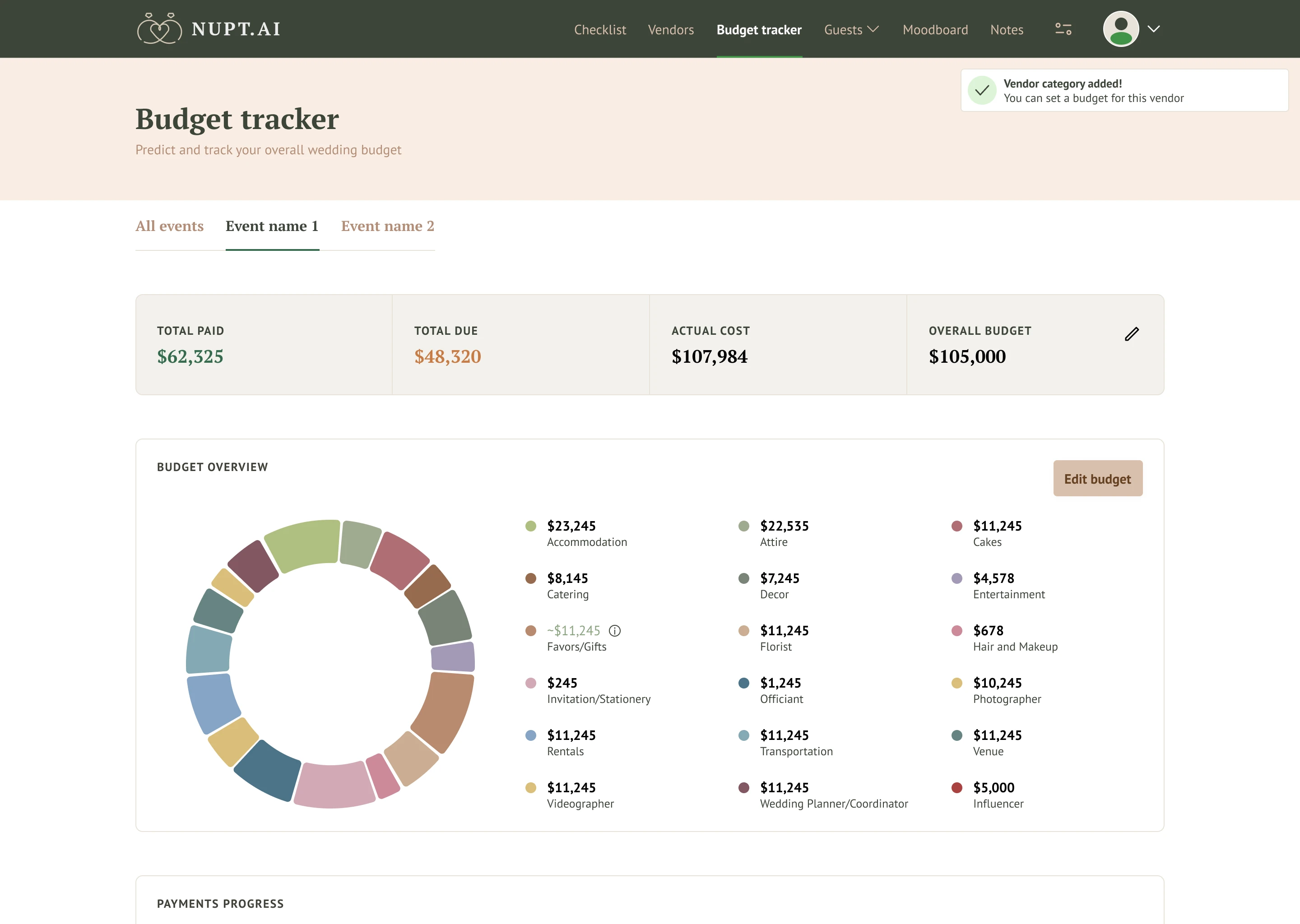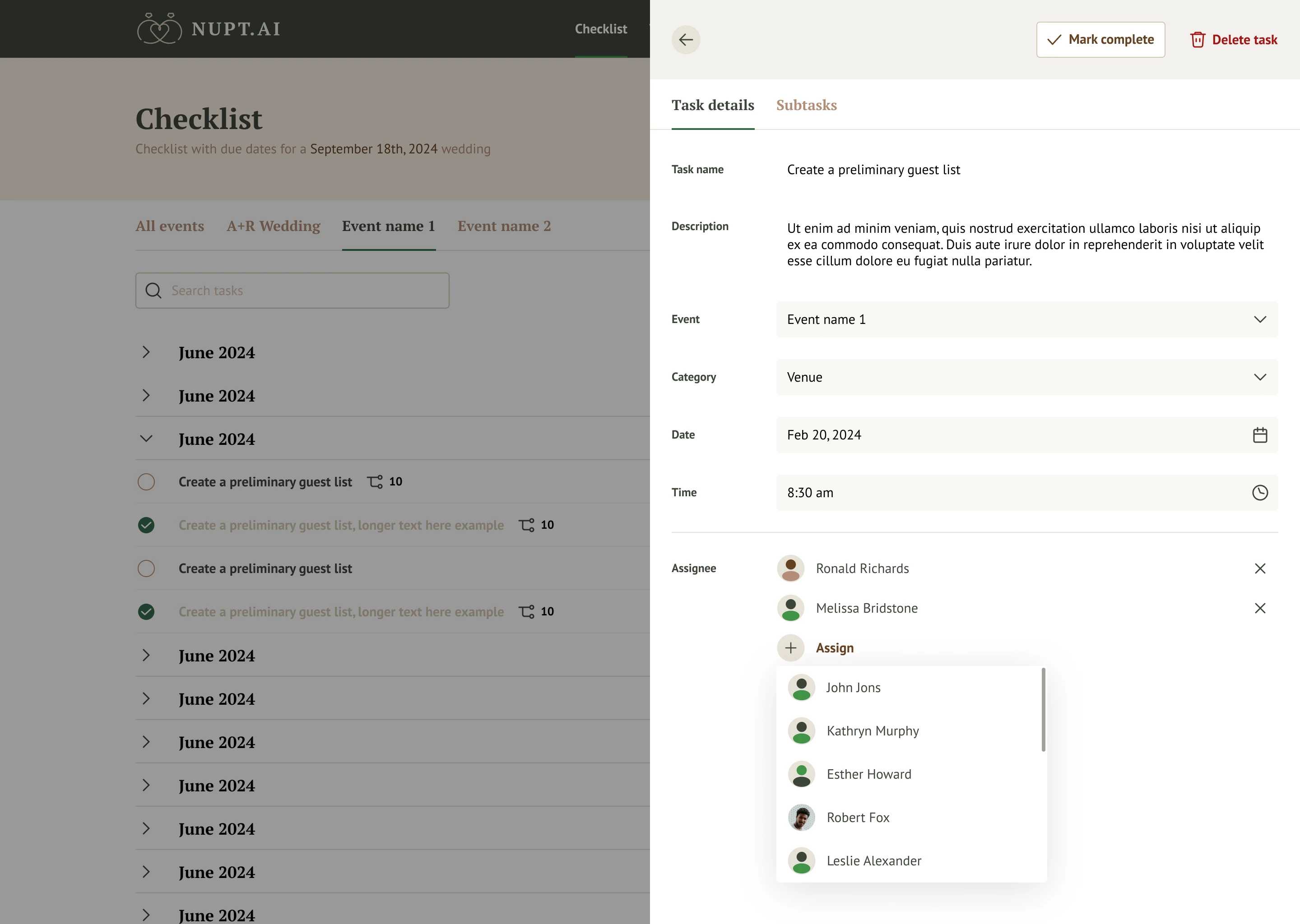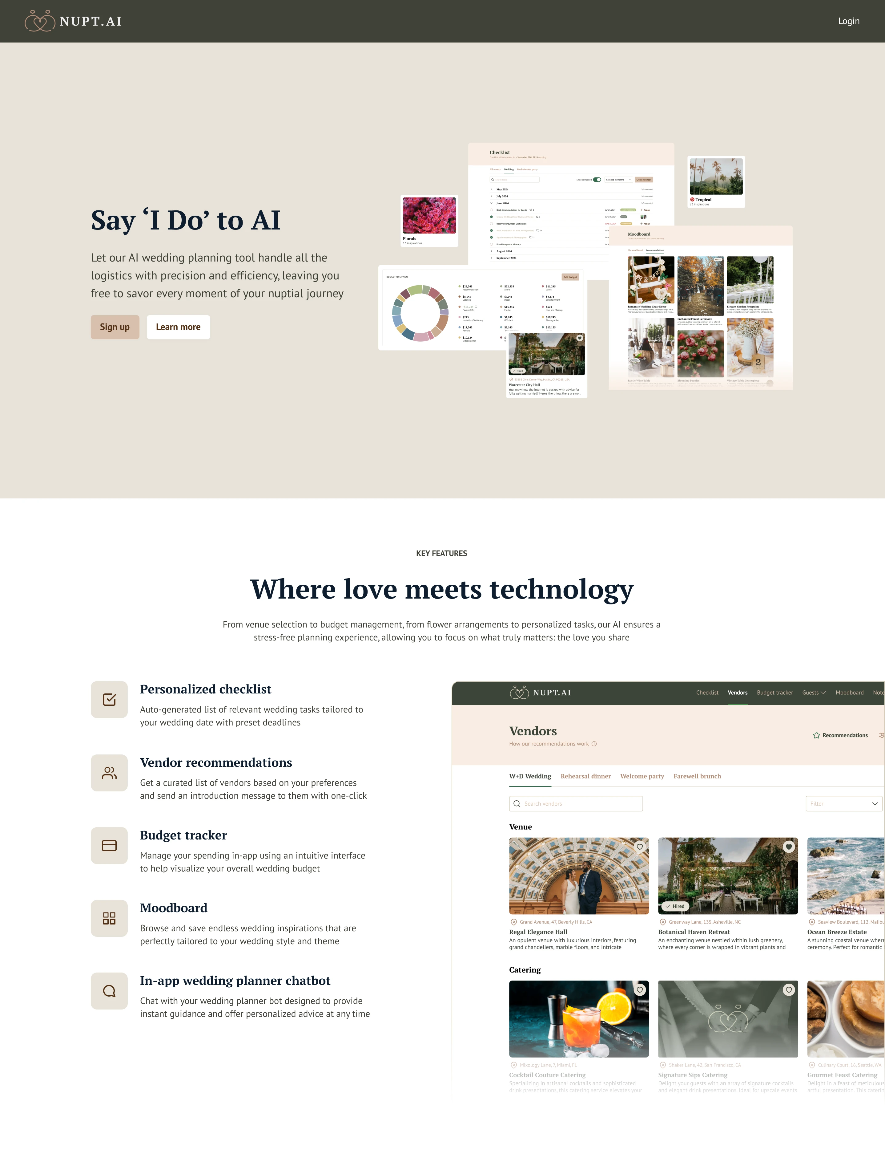 Developed dynamic features such as personalized checklists, vendor suggestions, and budget estimations.