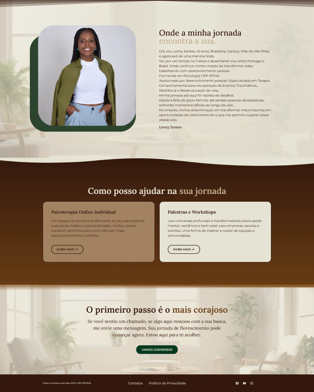 Website for psychologist Lenny Santos, designed to welcome, build trust, and guide visitors seamlessly from first click to first conversation.