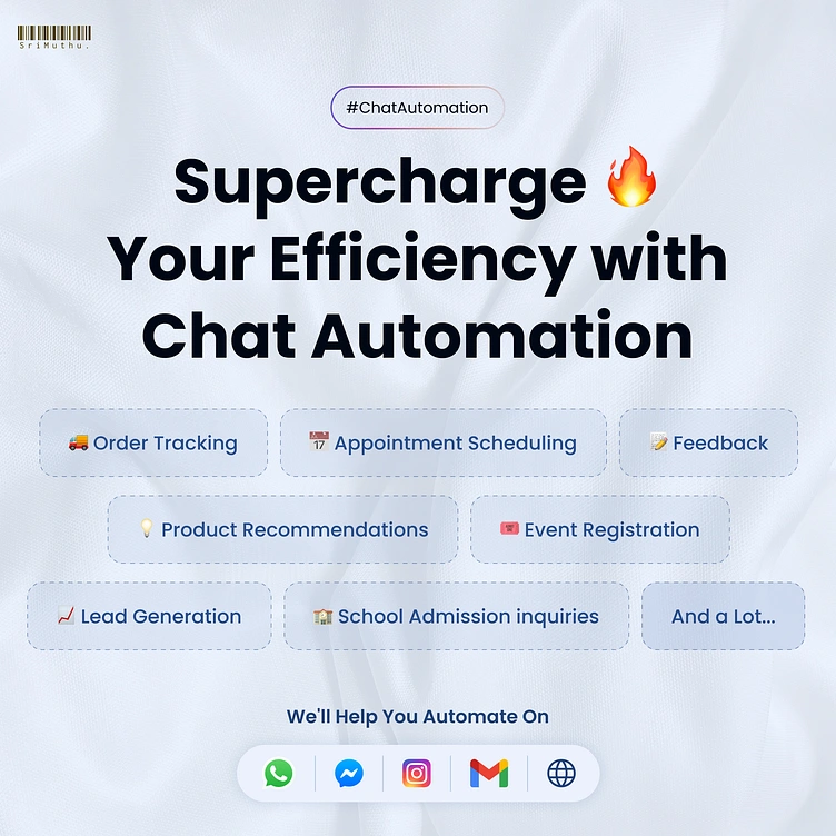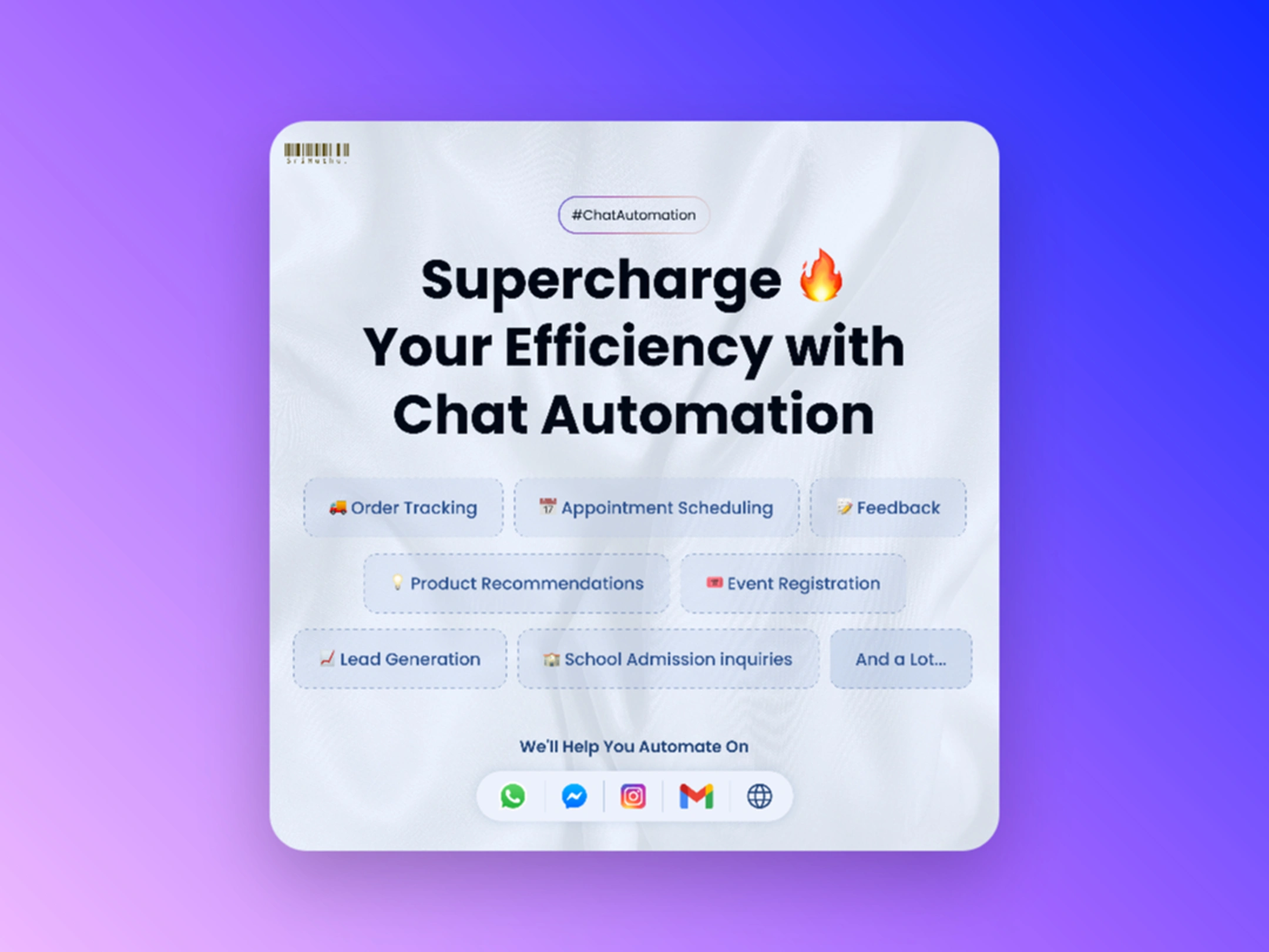 Clean, modern layout promoting chat automation benefits like order tracking, lead generation, and feedback, optimized for multi-platform integration.