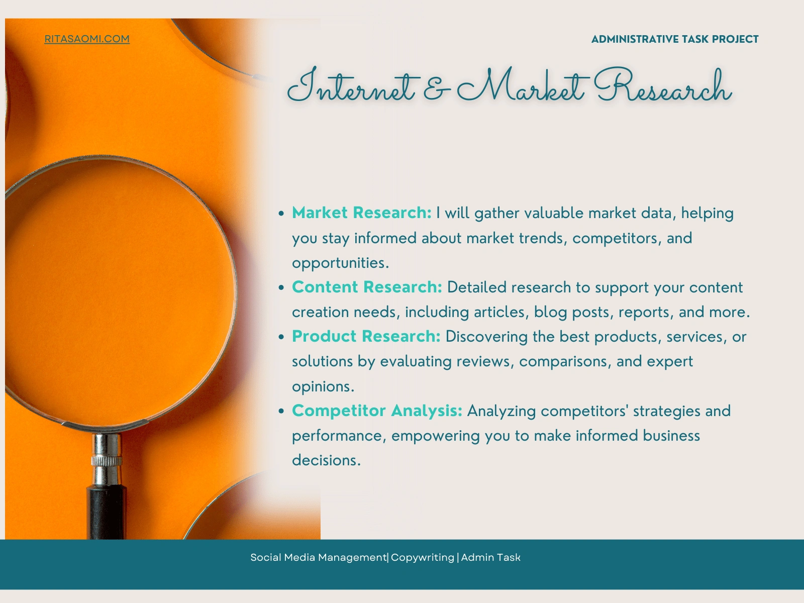 My expertise in Social Media Management, Administrative tasks, and Copywriting. I also can build simple CMS Websites, and generate some AI images.