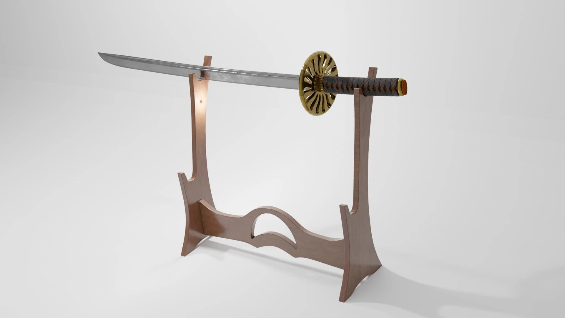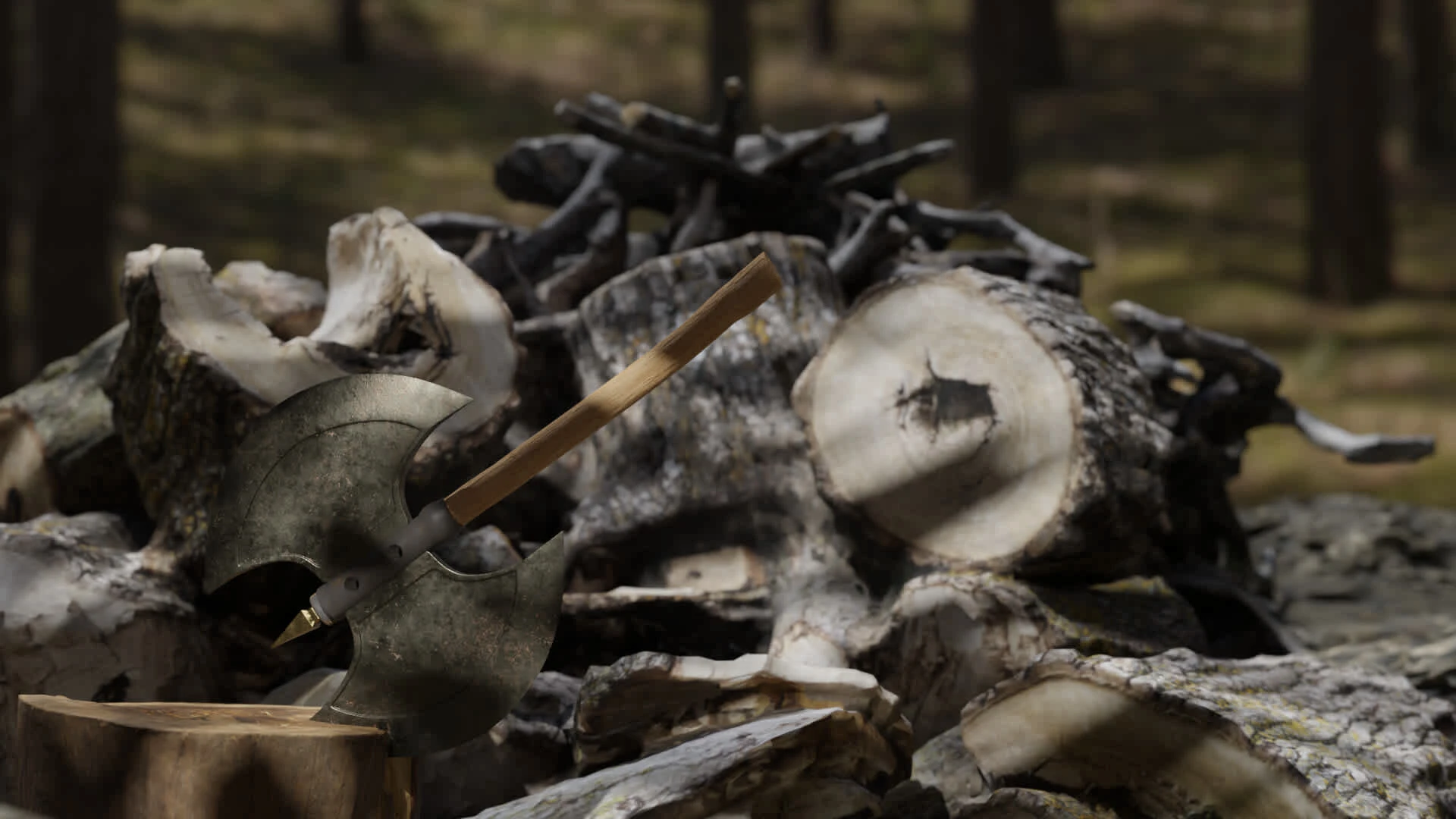 Created detailed 3D models of a worn-out battleaxe and a Damascus katana, highlighting contrast in materials and textures for a realistic historical collection.