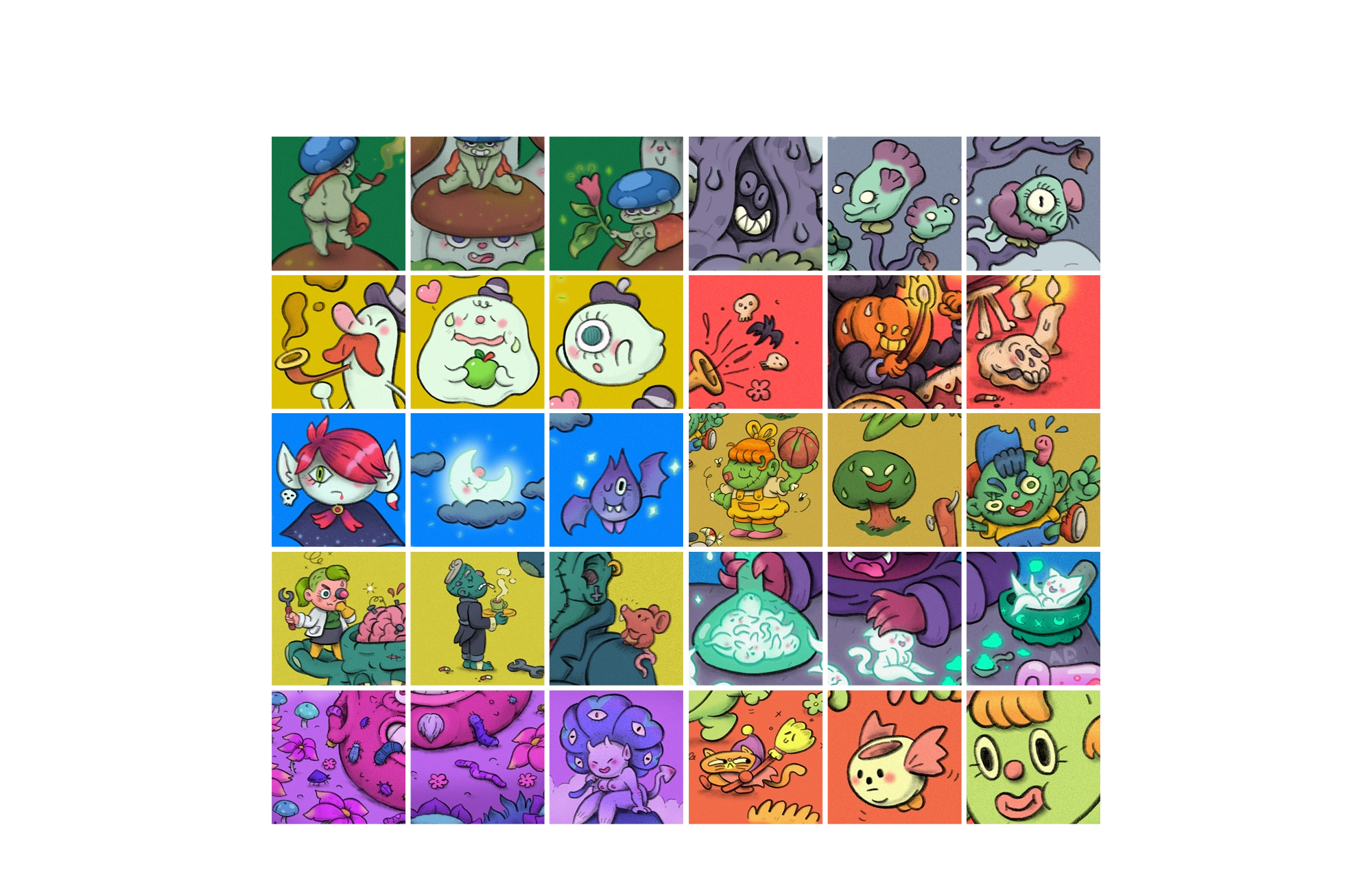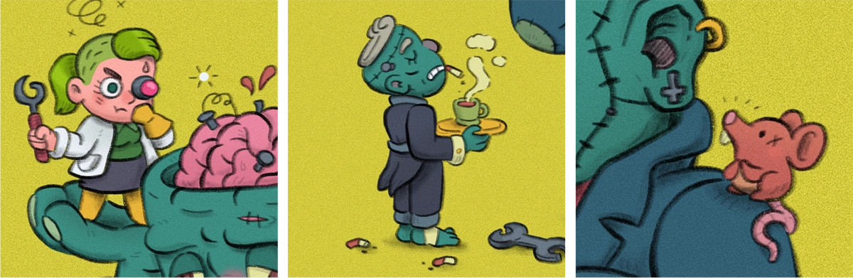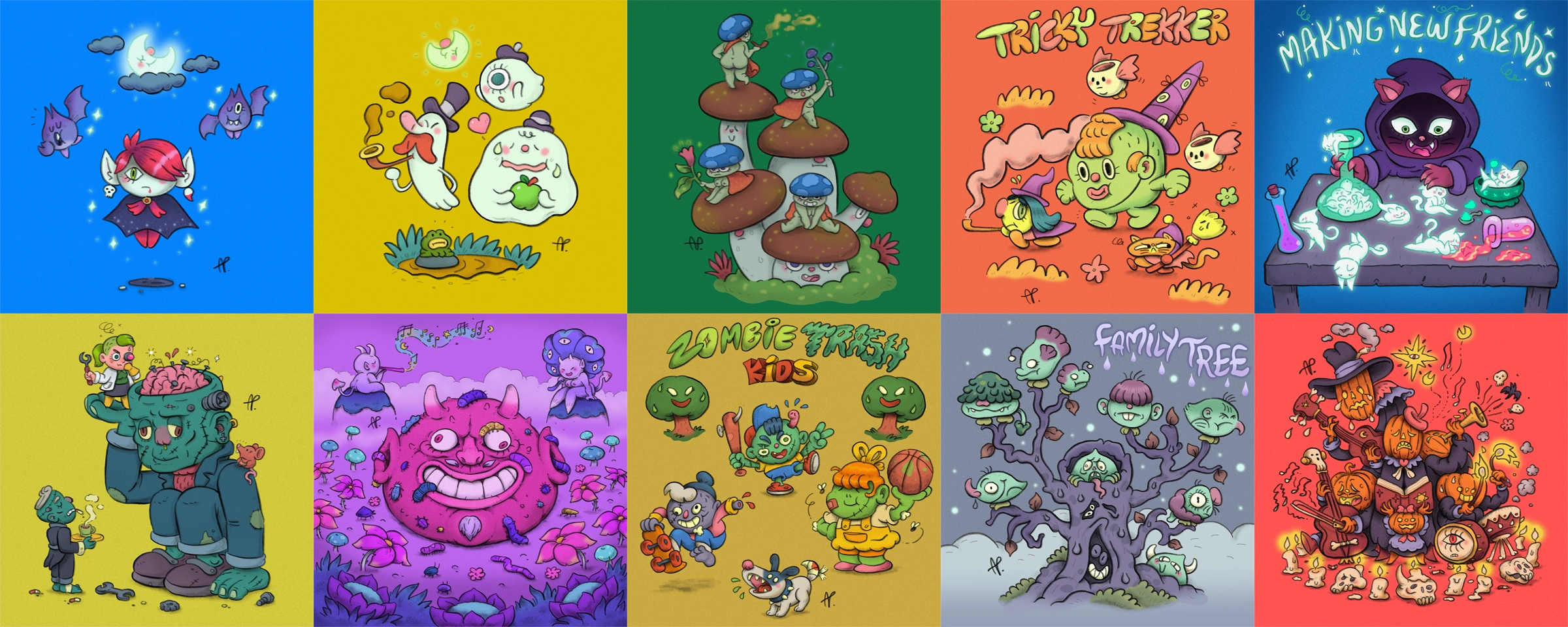 A series of illustrations of ghosts'n'ghouls, creeps 'n' drools...but funny and cute! I had alot of fun over one October getting into the cosy spooky zone and making these.