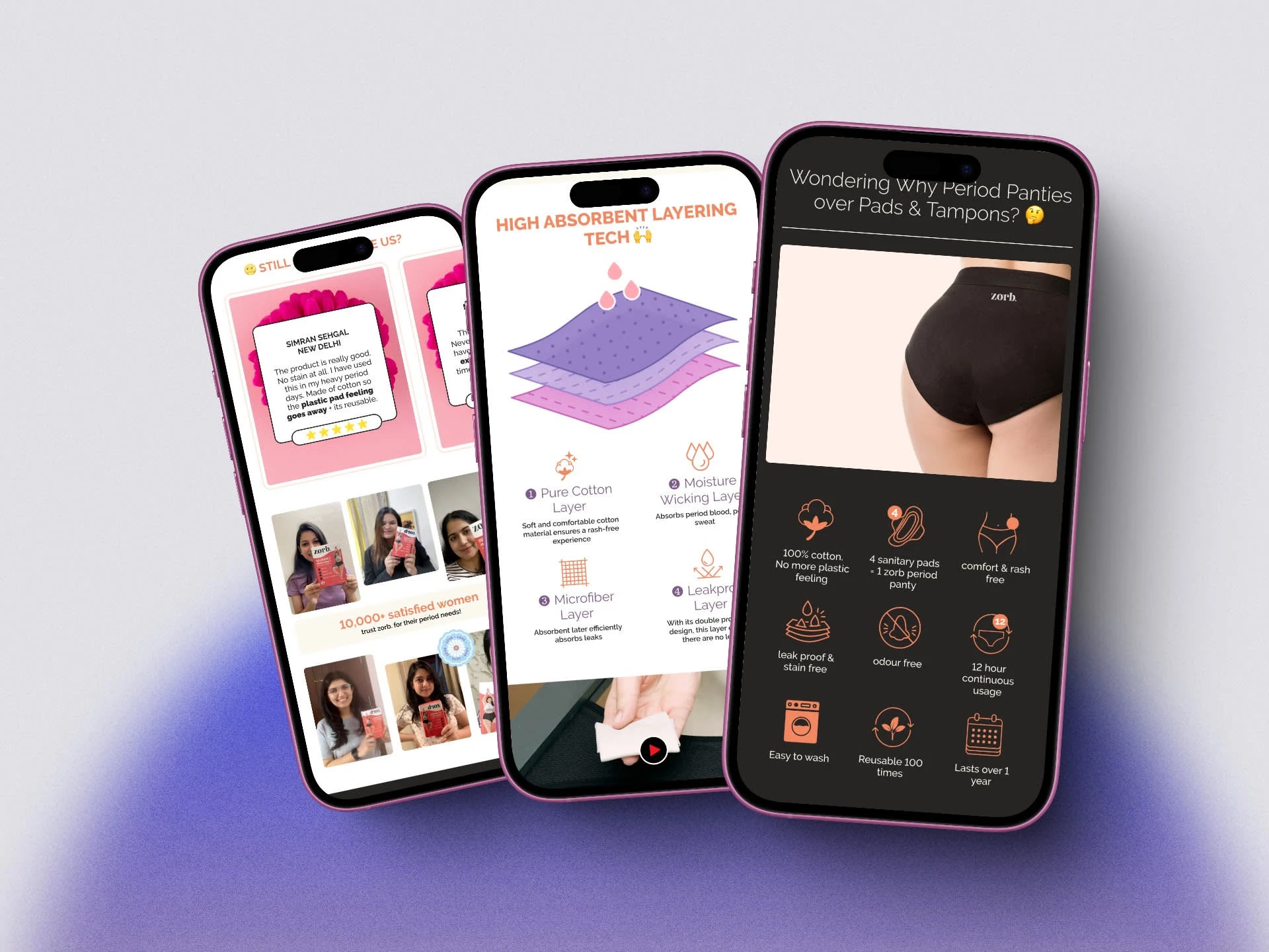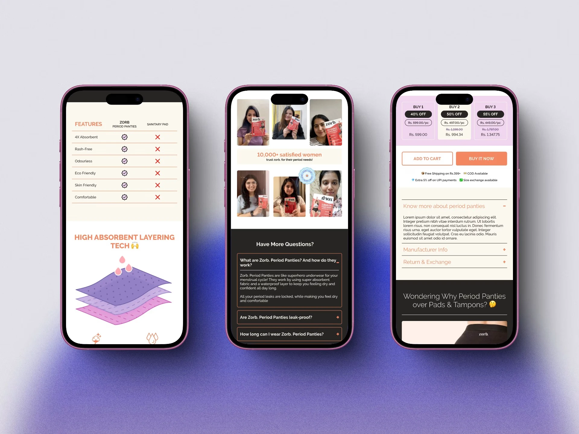 Zorb’s single-product period care website faced low conversions and weak product detail page (PDP) storytelling. The site failed to engage or educate buyers about benefits and unique value.