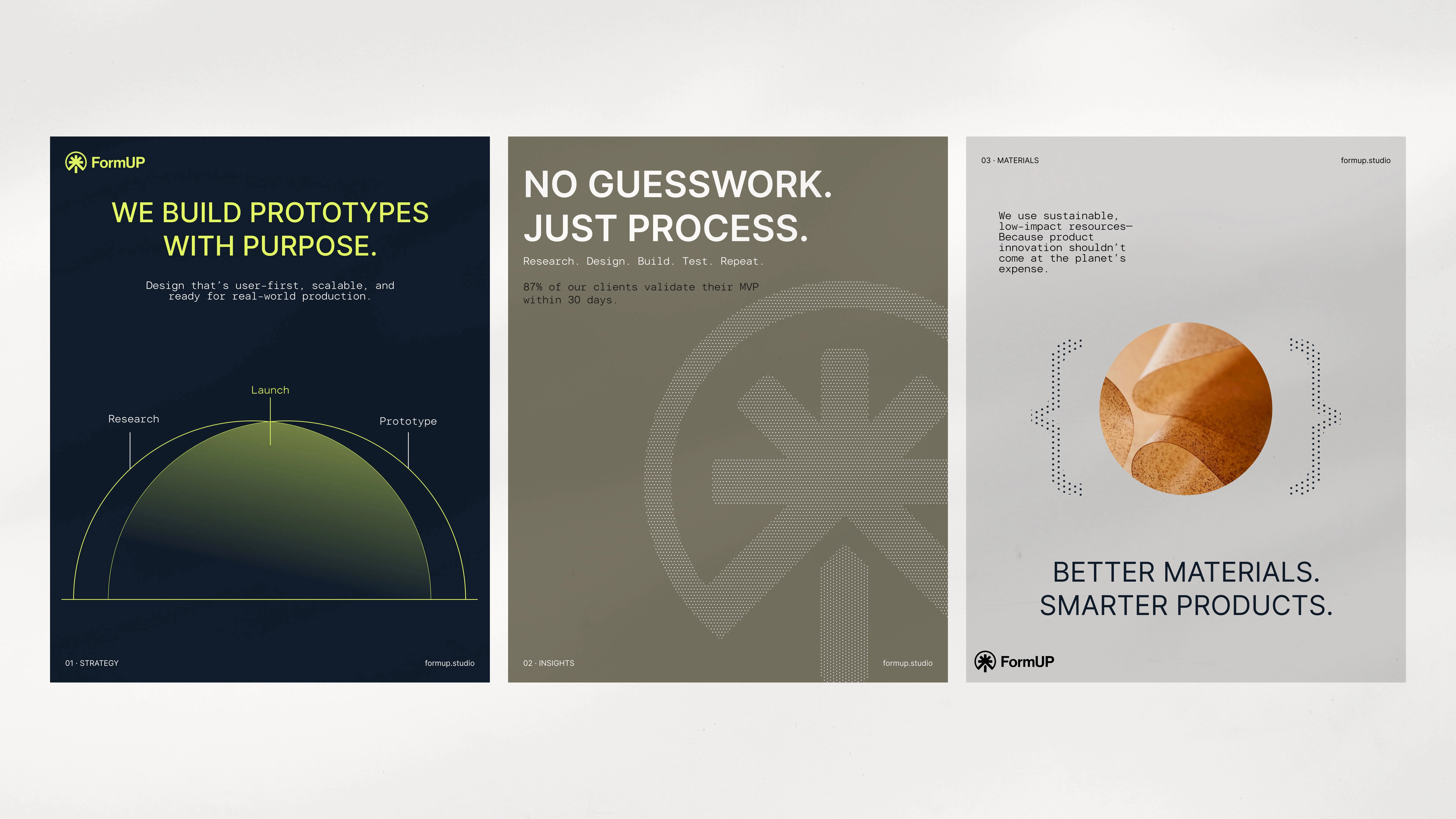 I was responsible for creating a visual identity that captures FormUp’s role as a strategic, hands-on partner. The goal was to build a modern and credible brand system that communicates trust, technical know-how, and adaptability supporting the company’s growth and helping it connect with founders, product managers, and investors alike.