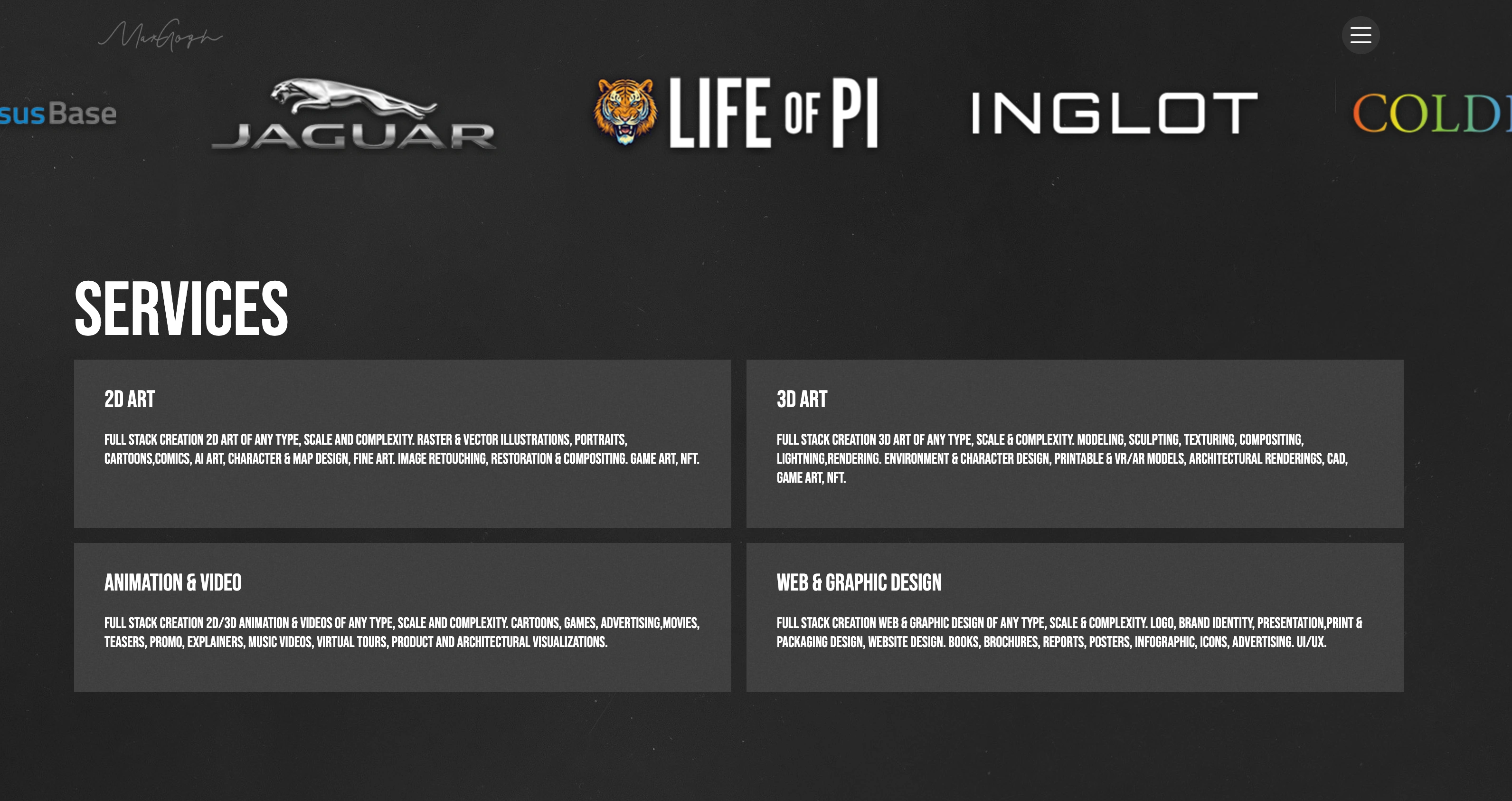Max Gogh – Full-Service CG Art Studio Portfolio Website