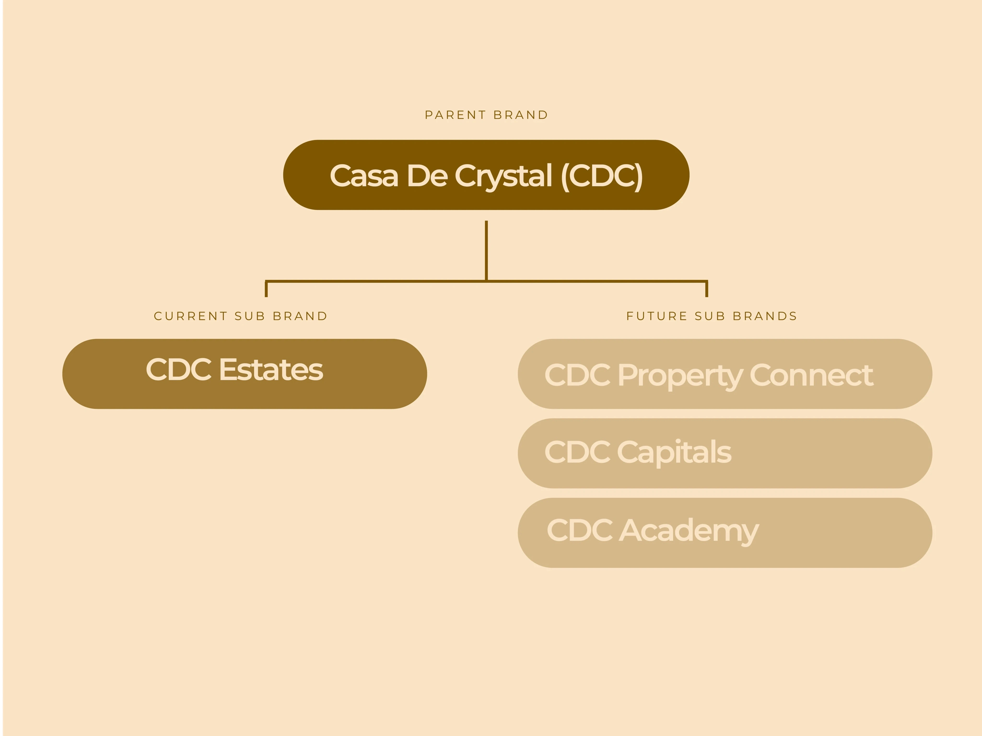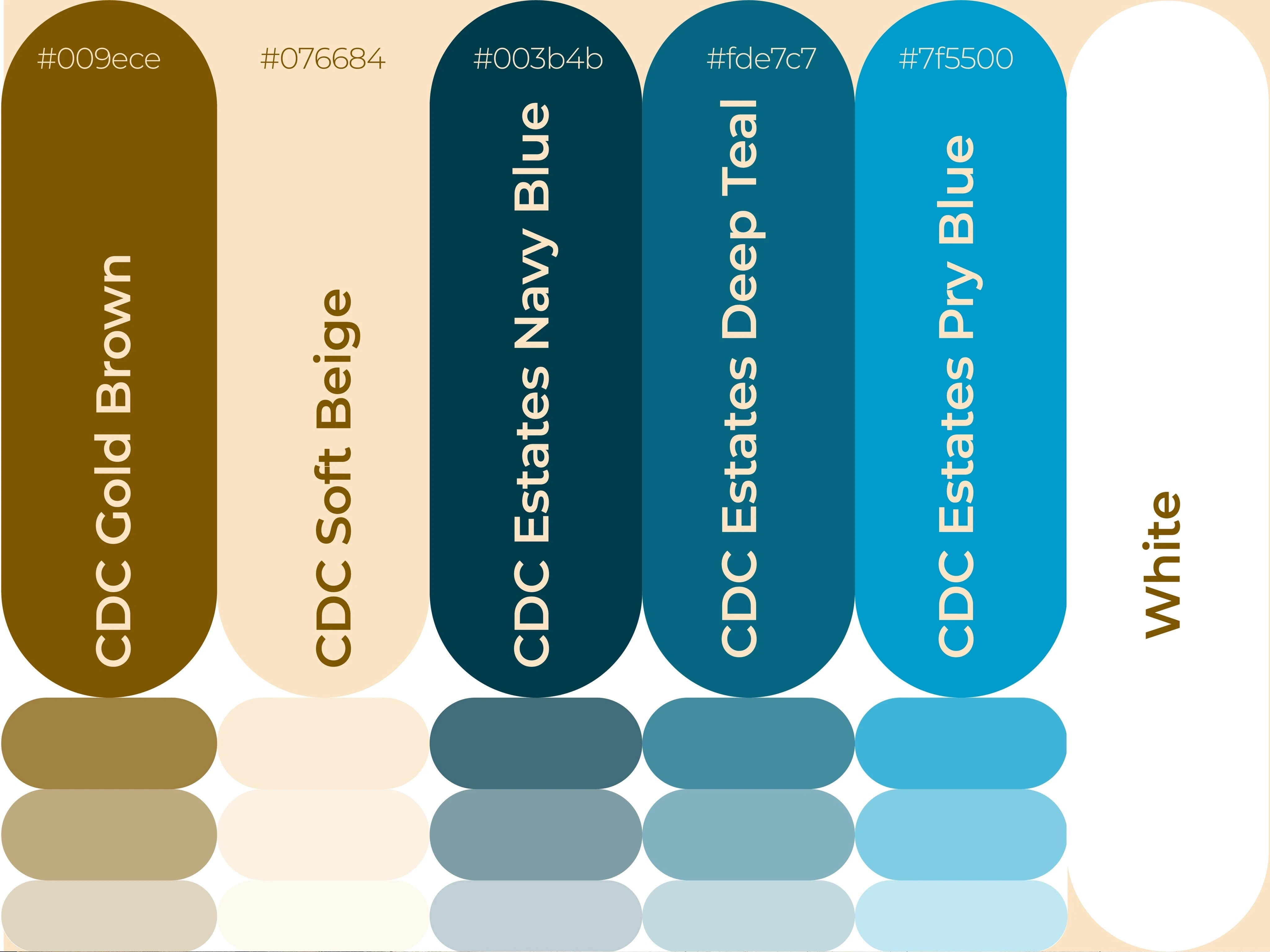 Modular Architecture: A flexible color system that allows sub-brands to have a distinct identity while remaining tethered to the core CDC real estate parent brand.