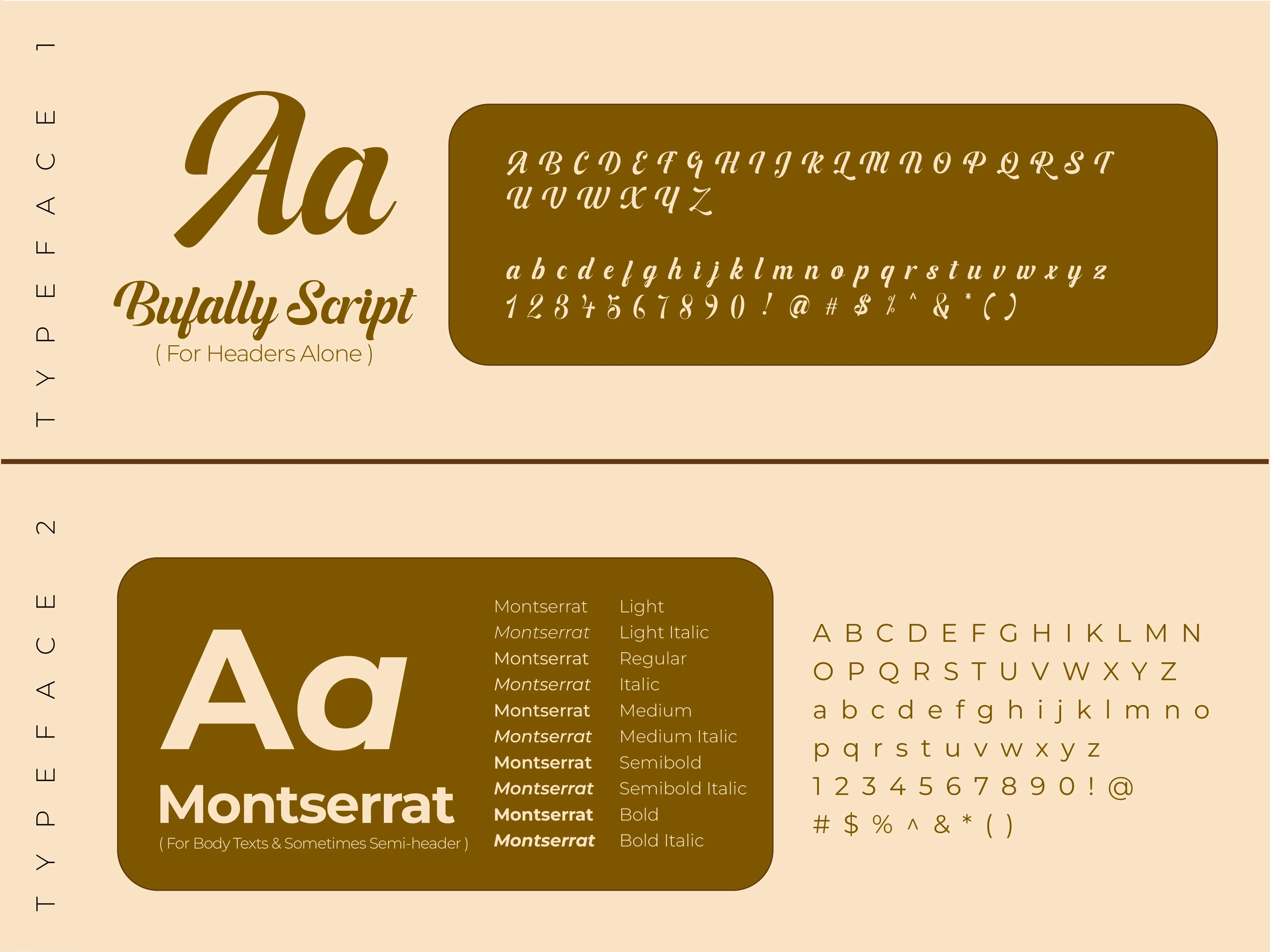 Hybrid Typography: A sophisticated blend of Bufally Script for signature elegance and Montserrat for modern digital readability.