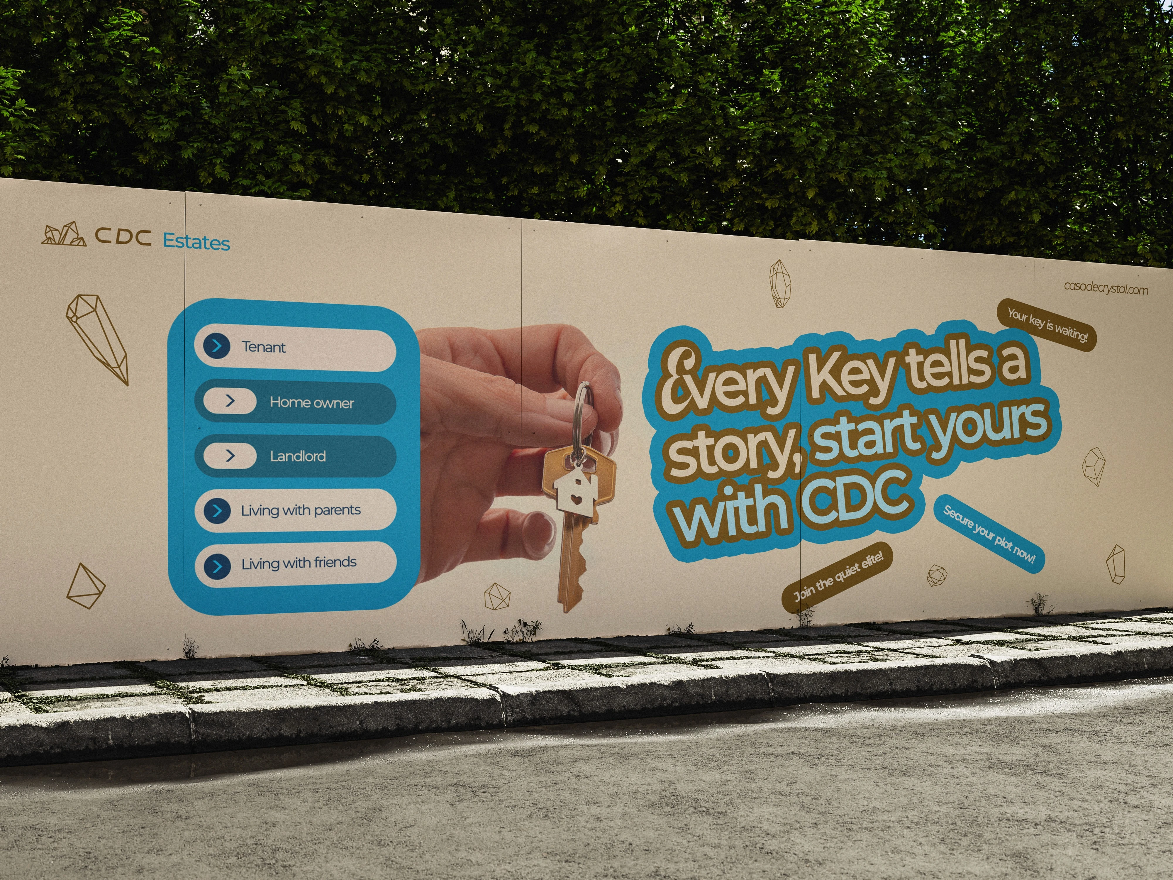 The primary objective was to position CDC as a scalable platform for property-led wealth. The identity balances bold groundings with premium accessibility to appeal to ambitious communities seeking trust and long-term real estate solutions.