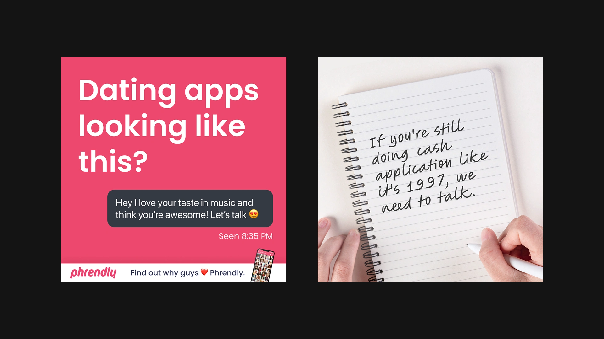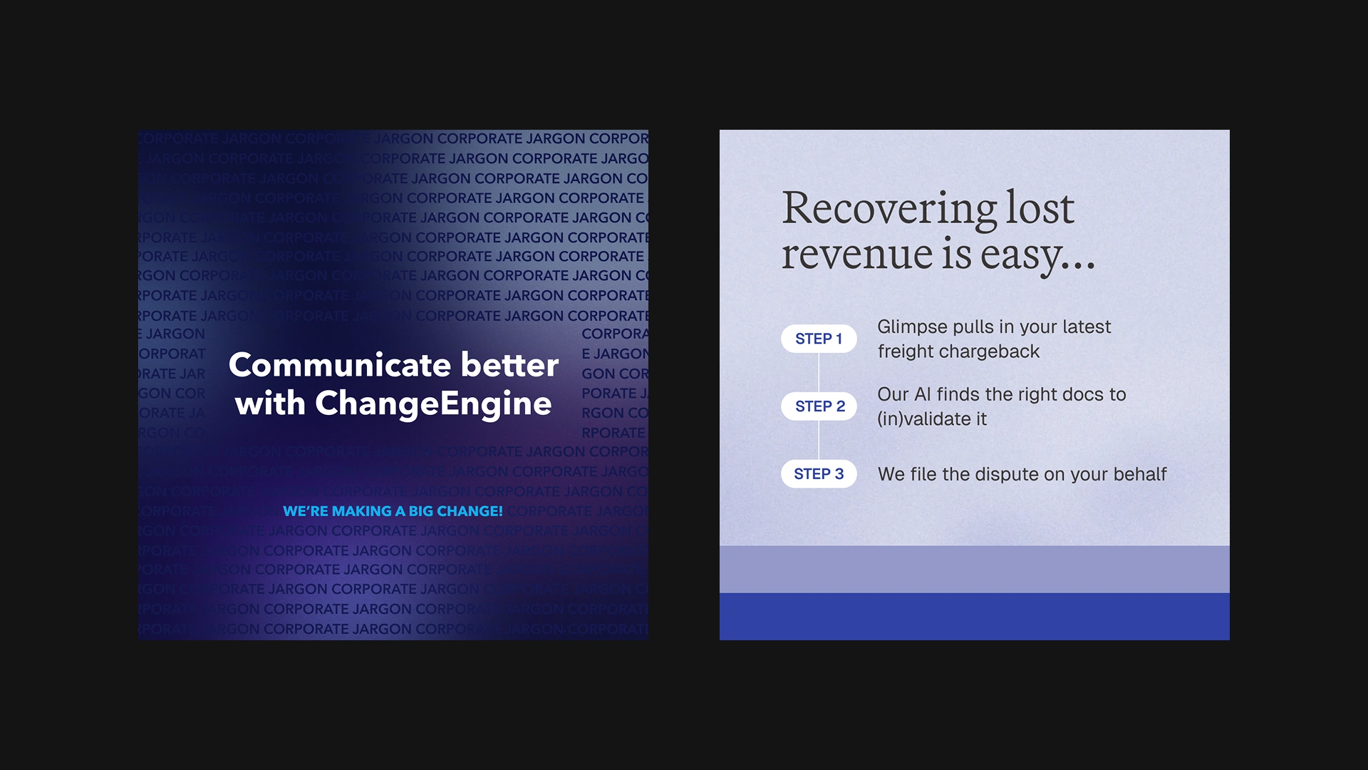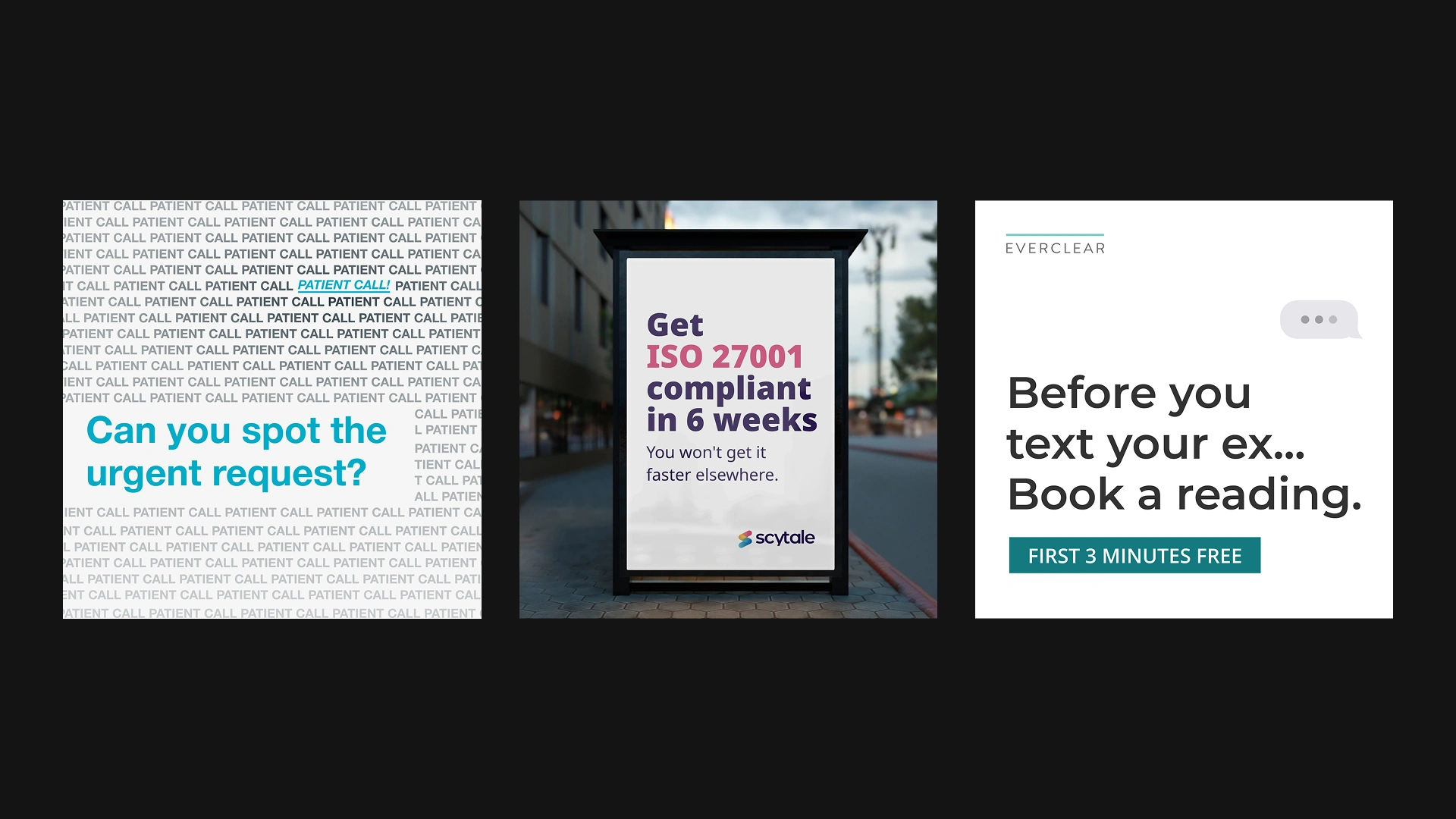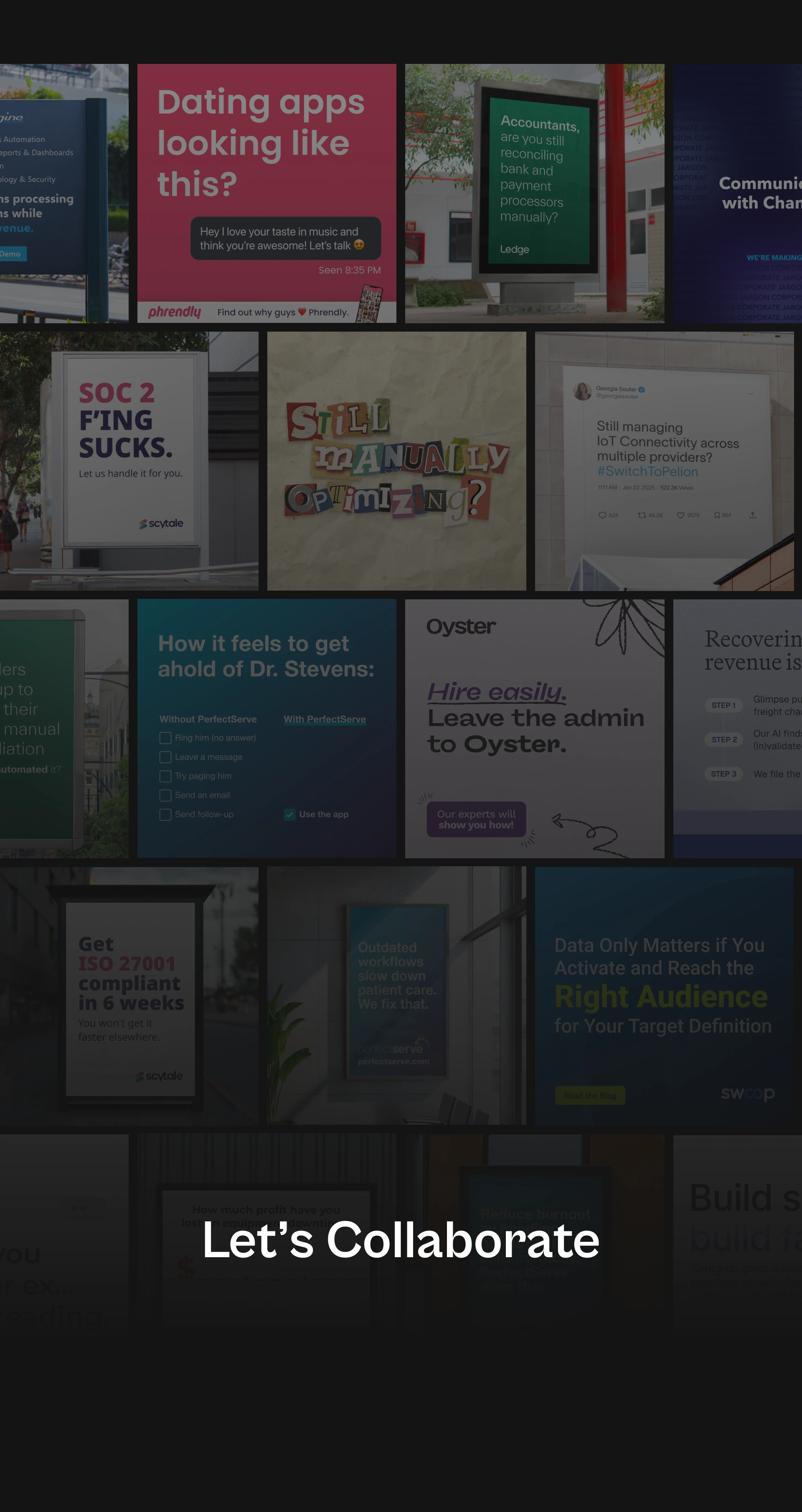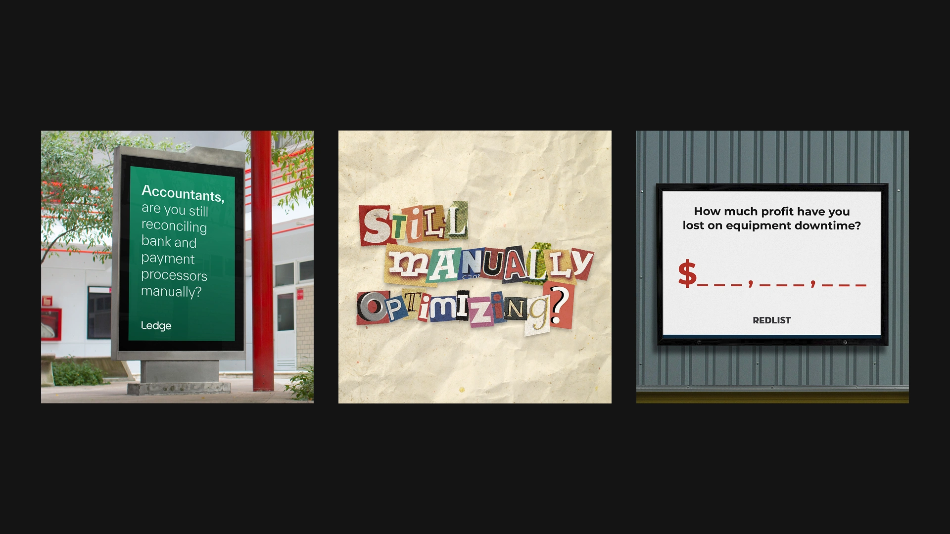Text-based ads for B2B SaaS. Complex workflows are simplified into punchy headlines and value propositions to address specific industry pain points.