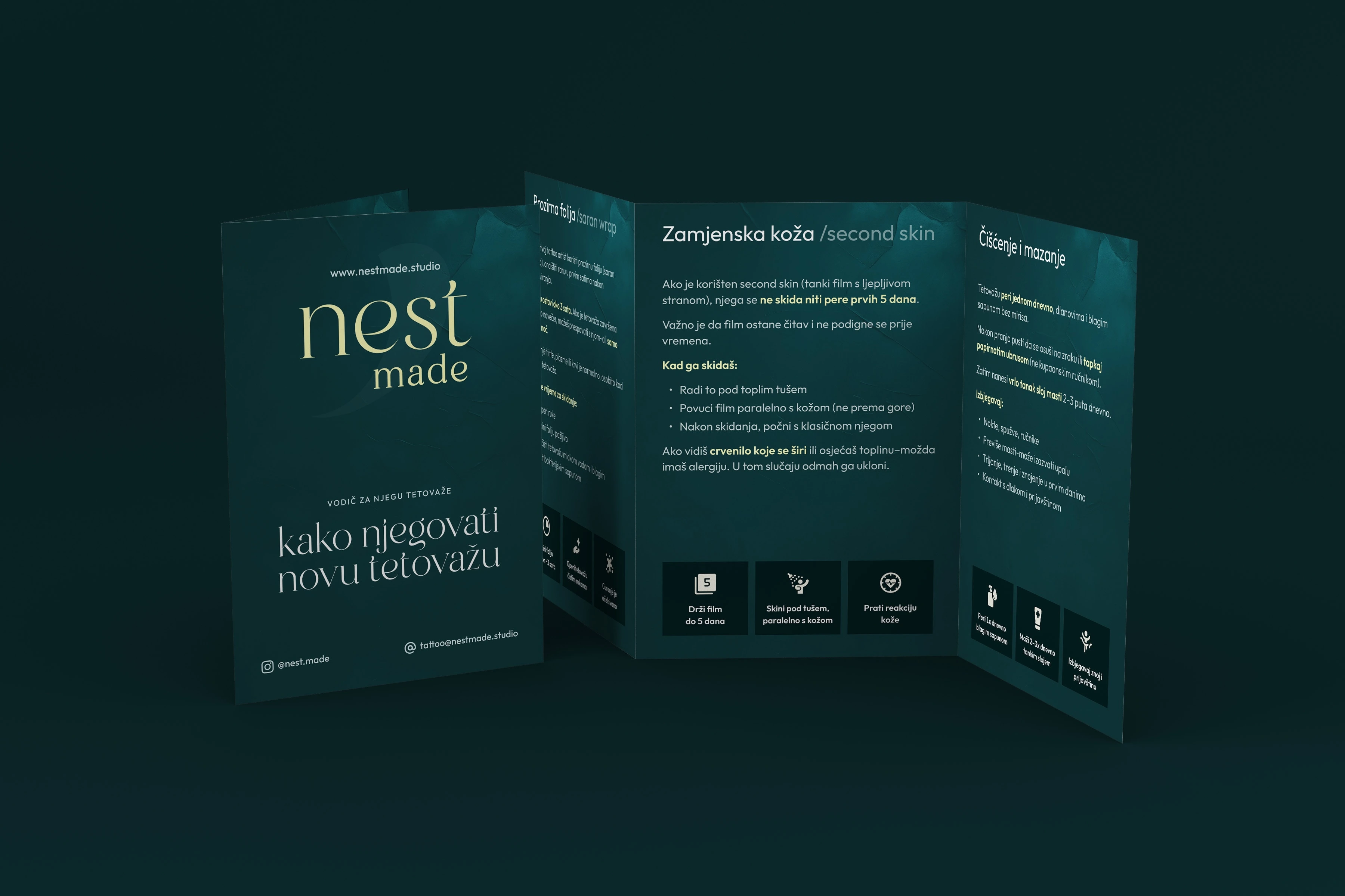 Nestmade is a tattoo studio from Zagreb, Croatia, built around thoughtful artistry, personal storytelling, and a calm, crafted aesthetic. Our goal was to translate that feeling into a digital experience that feels warm, distinctive, and easy to use—while also supporting the practical side of running a tattoo business.