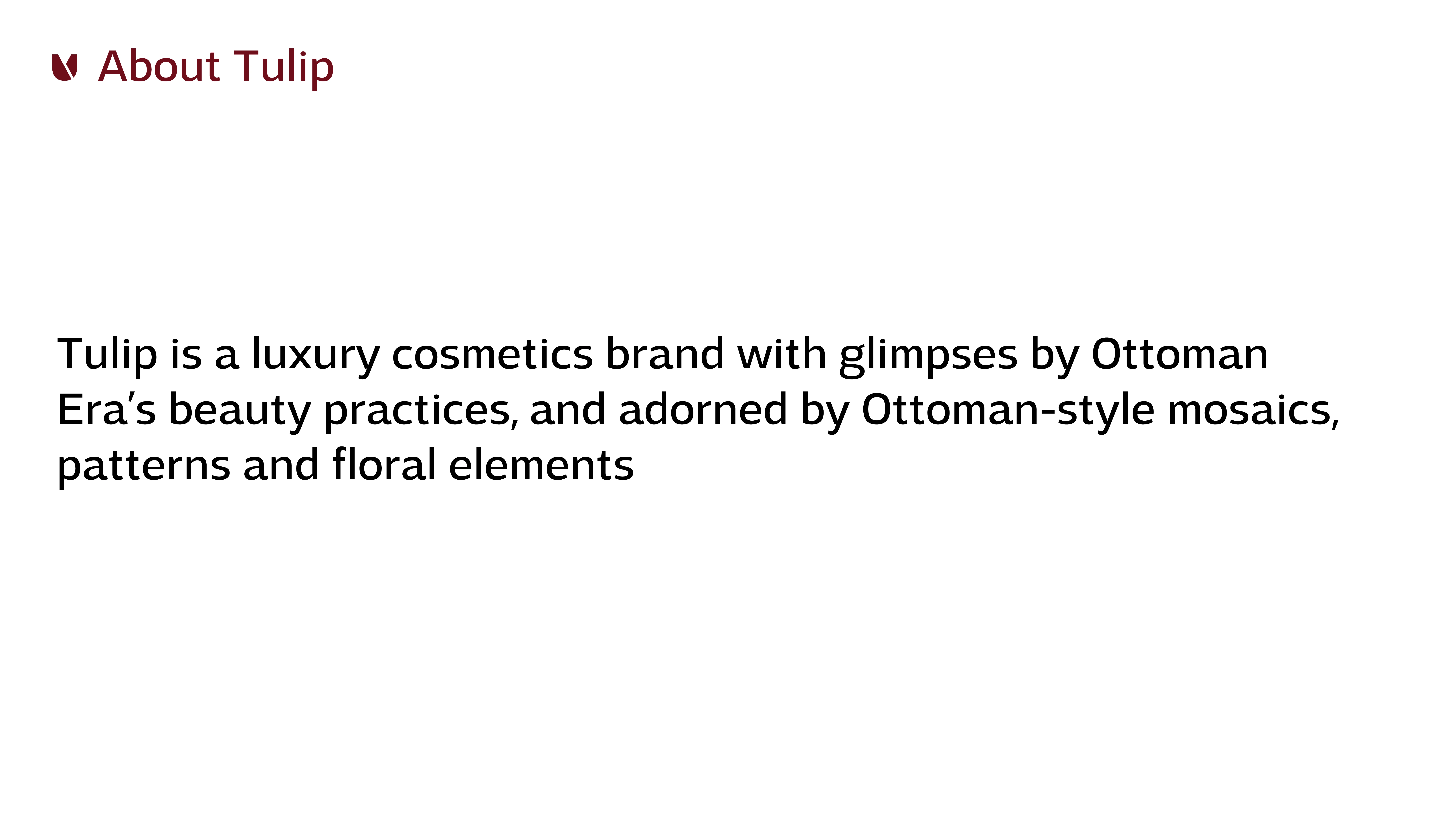 TULIP is a fictional luxury cosmetics brand inspired by Ottoman beauty practices.