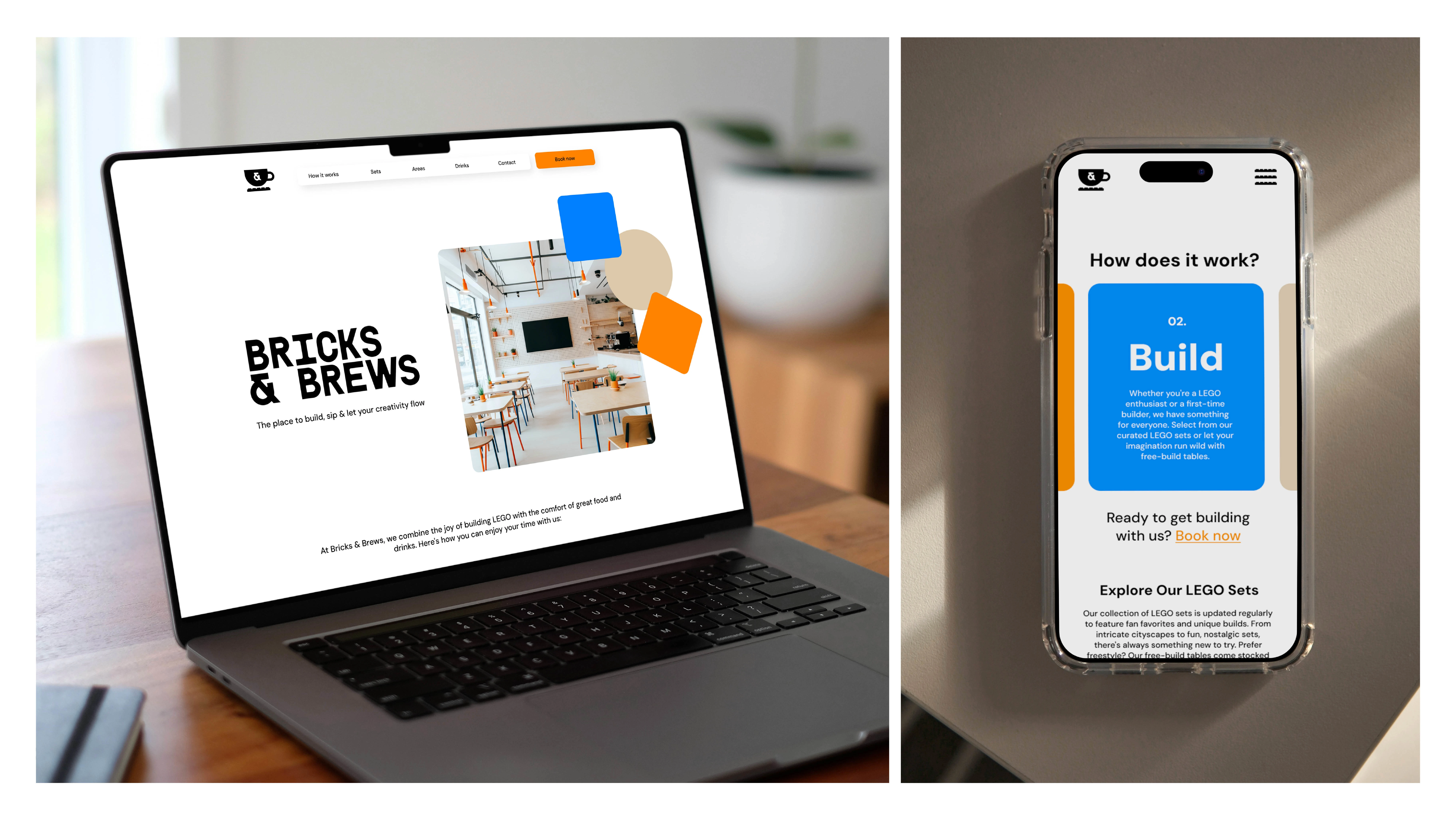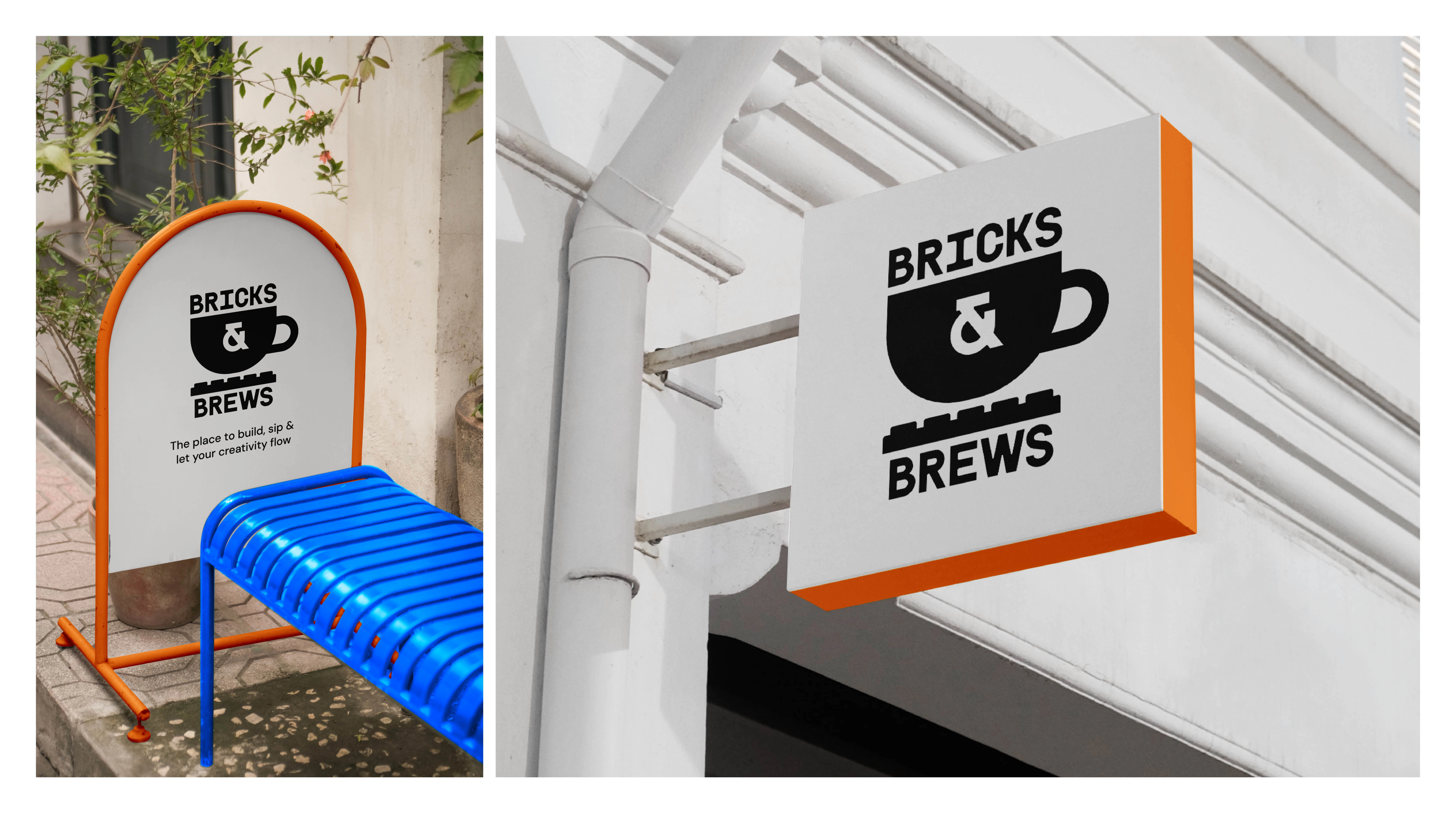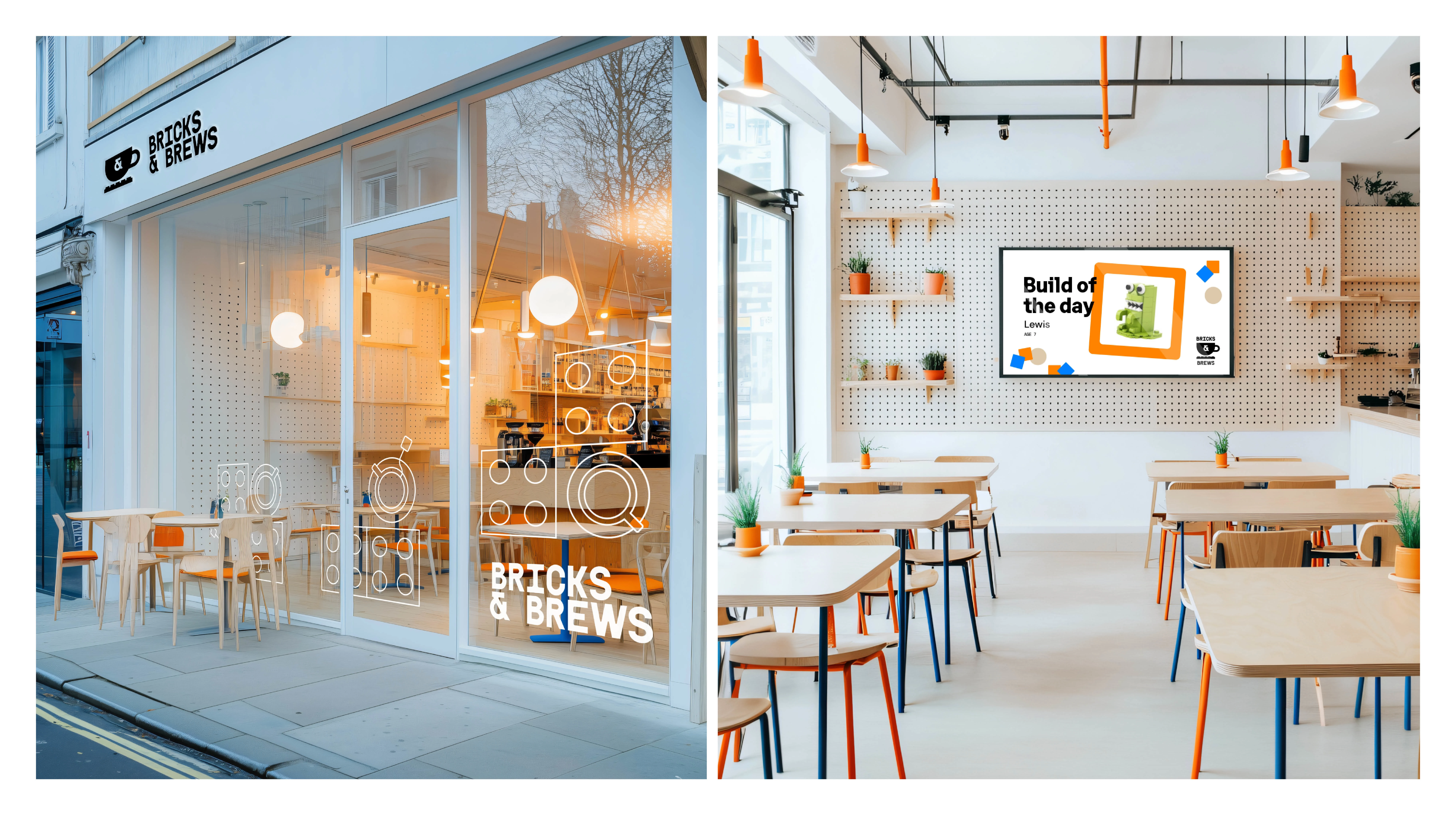 Create a clear but not overly childish brand for the new Lego cafe Bricks & Brews. Avoiding elements that infringe on Legos IP such as the logo and character/figure. The aim is to differentiate Bricks & Brews from the competition, whilst still appealing to a wide Lego loving target audience.