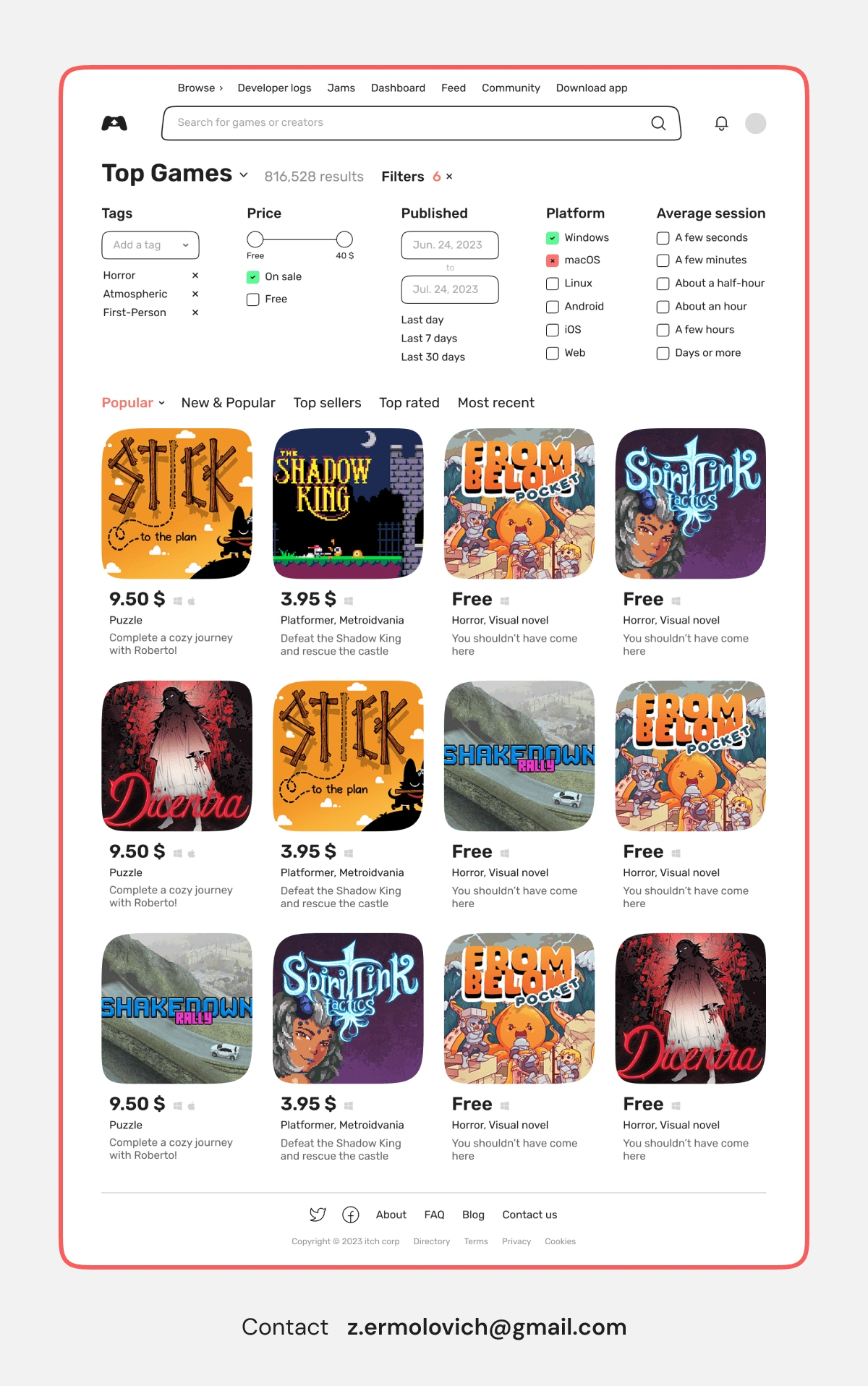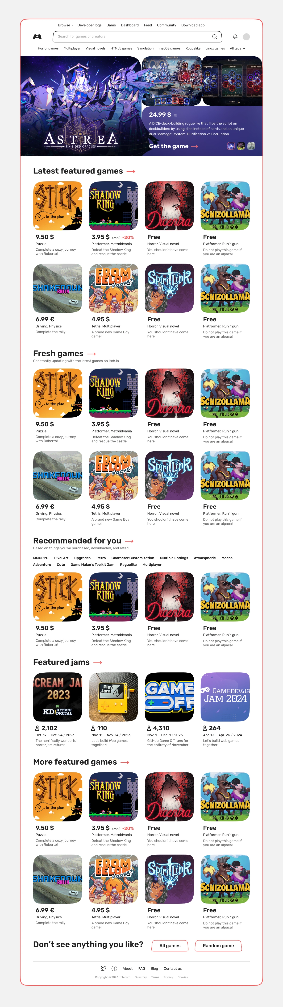 itch.io — UX/UI Website Redesign Personal Project; Desktop & Mobile versions