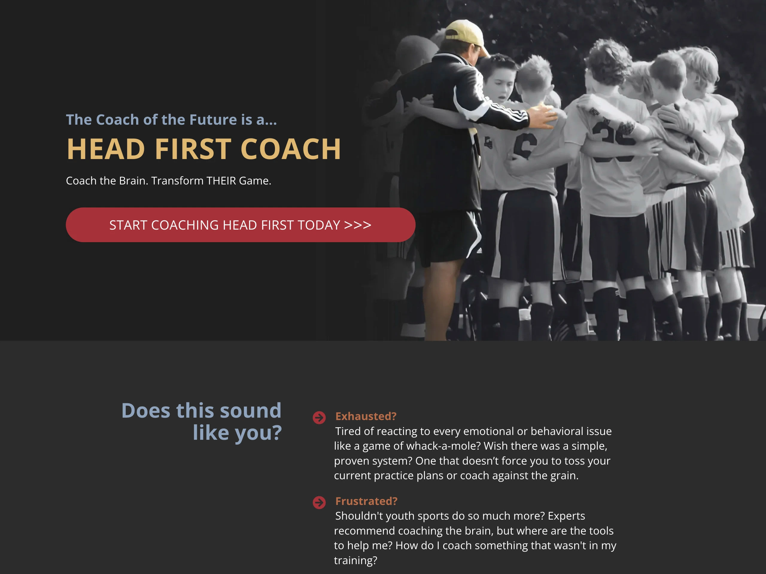 Coach Reed came to us through our friends at Jiffy Courses with a clear vision for his brand but zero tech skills to make it happen. He needed a professional sales page for his new course, Head First Coach, but felt completely overwhelmed by the design process.