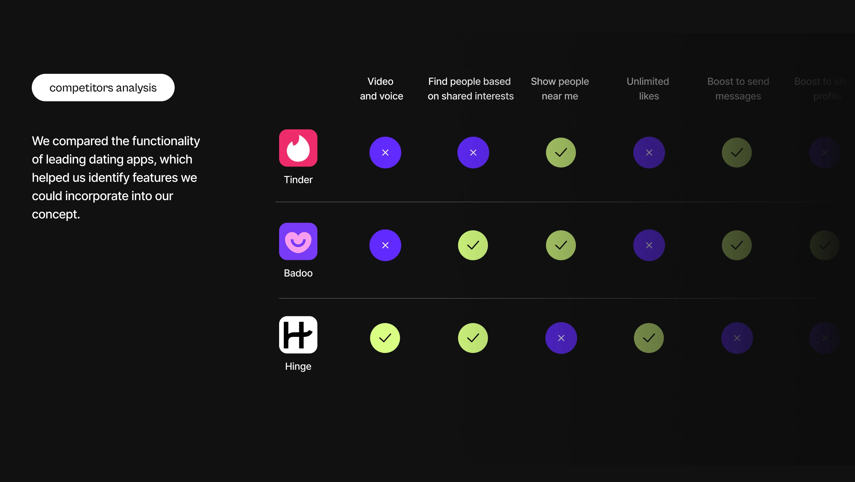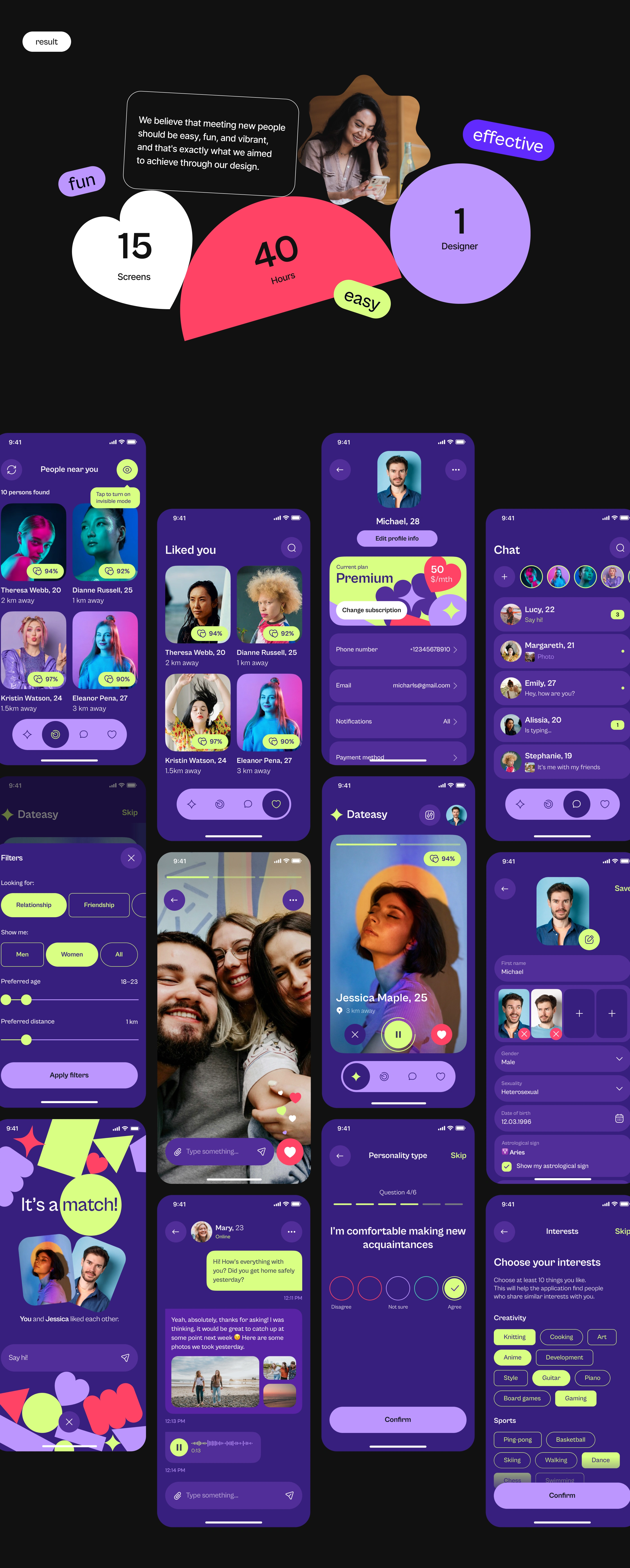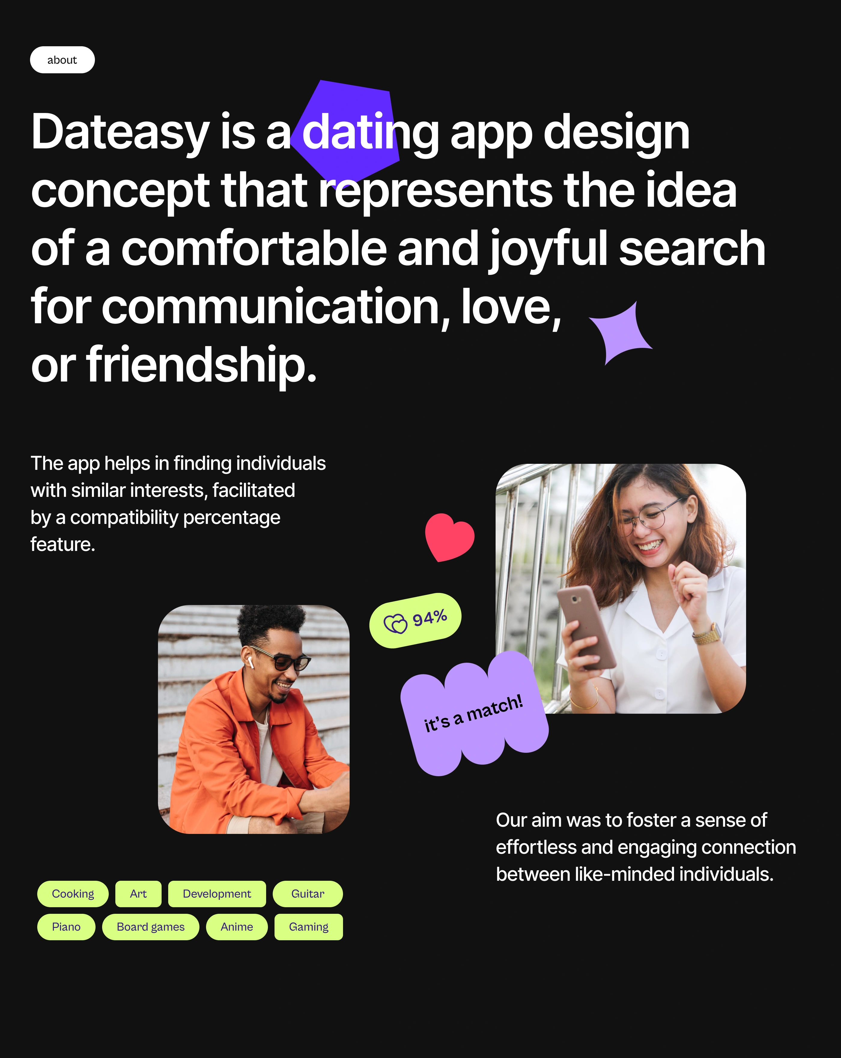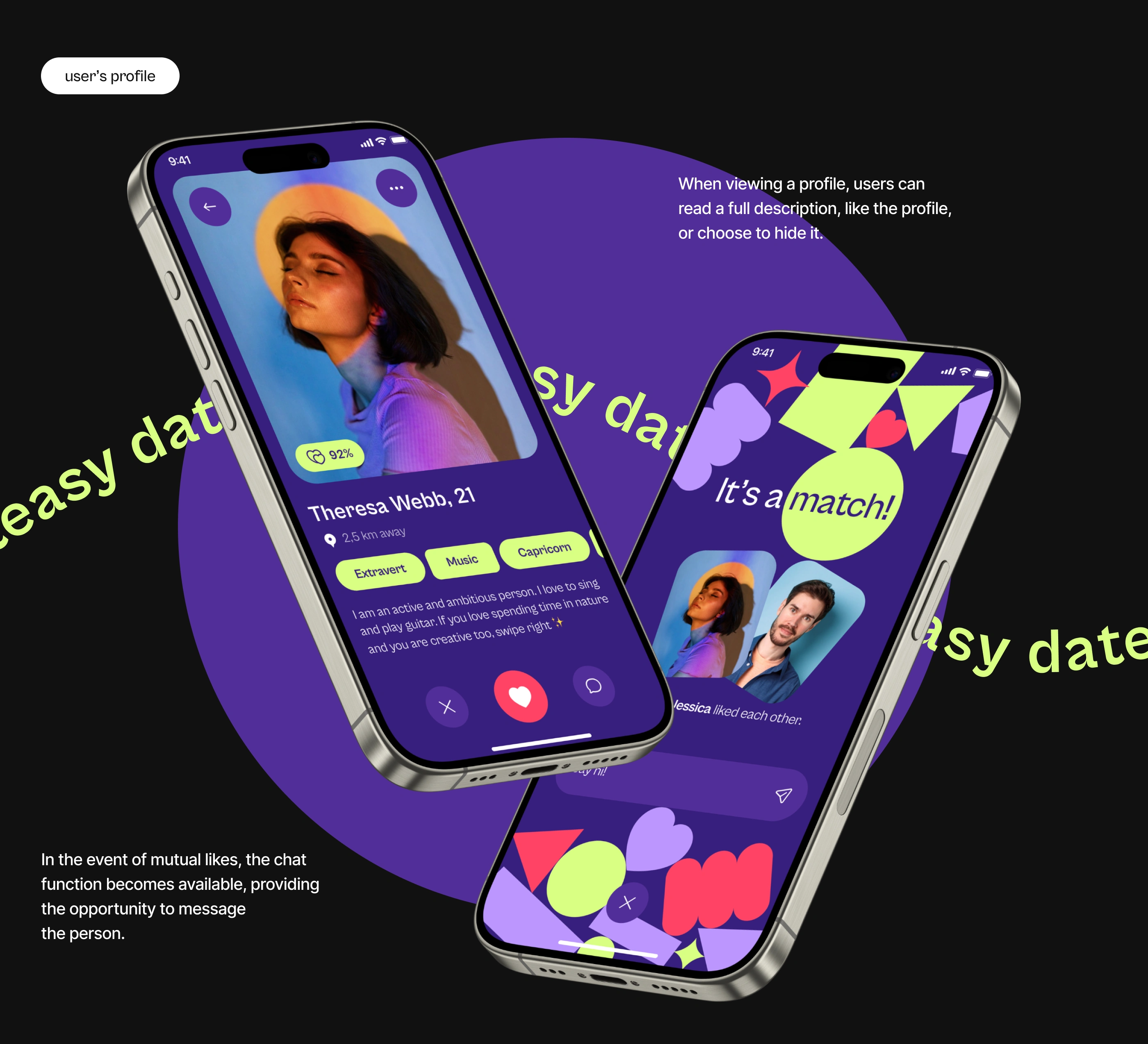 Our design team analyzed the dating app market to create a secure, engaging mobile app concept with appealing UI, better matching, and smooth user experience.
