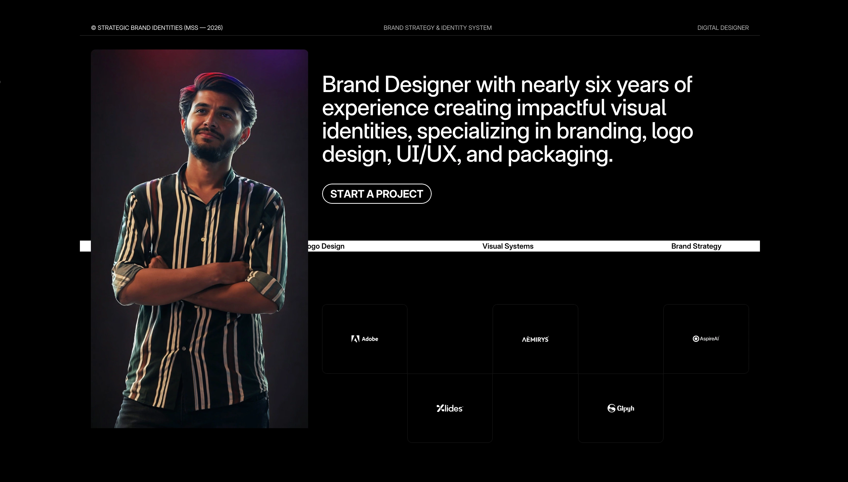 This project involved designing and developing a personal portfolio website for a brand designer to showcase branding, identity, and packaging projects in a clean, modern, and high-impact format.