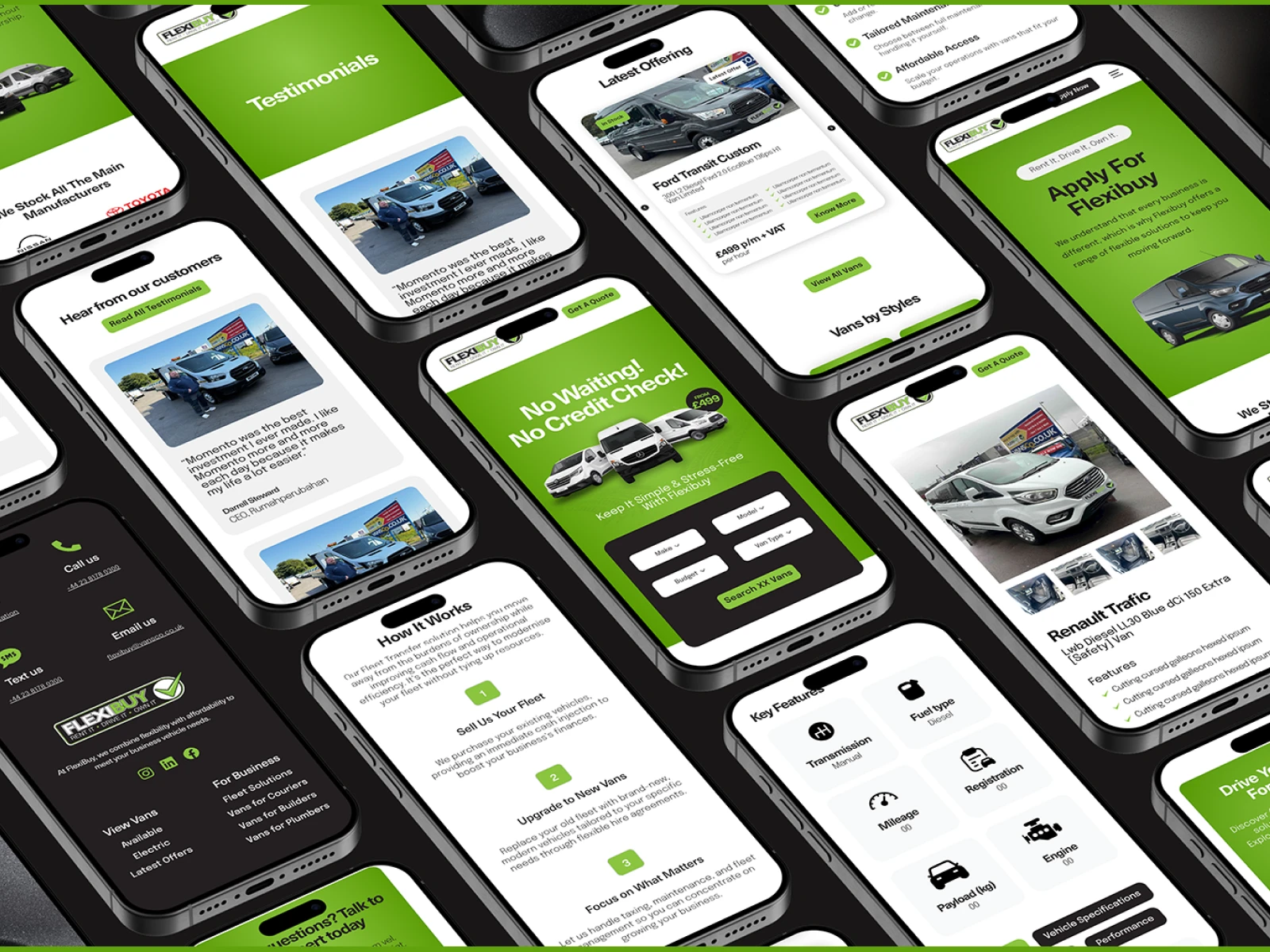 Flexibuy Vans is a sister company of Vansco Ltd, offering flexible van purchasing options for small businesses and tradespeople across the UK. Unlike traditional dealerships, Flexibuy focuses on affordable, adaptable financing—and their website had to reflect that clarity and flexibility from the first click.