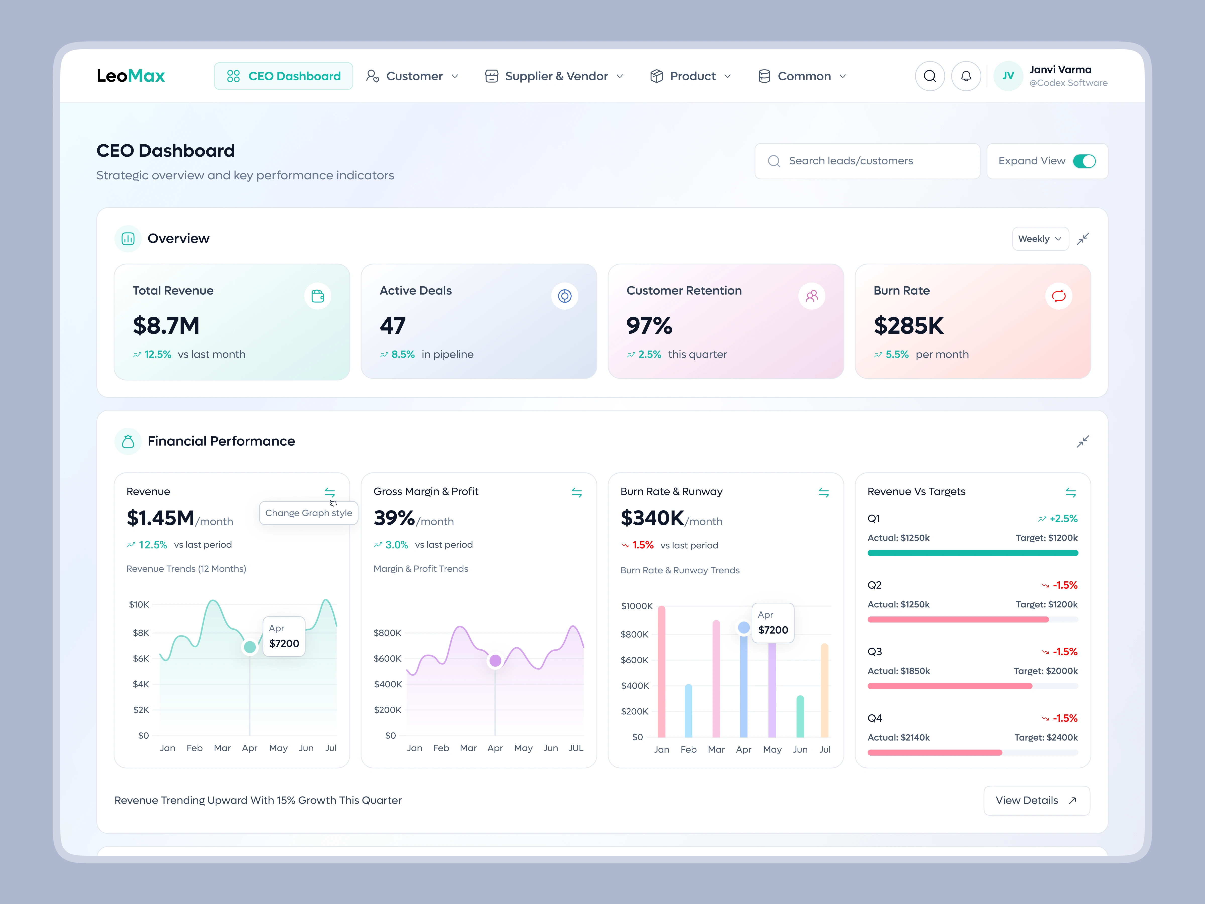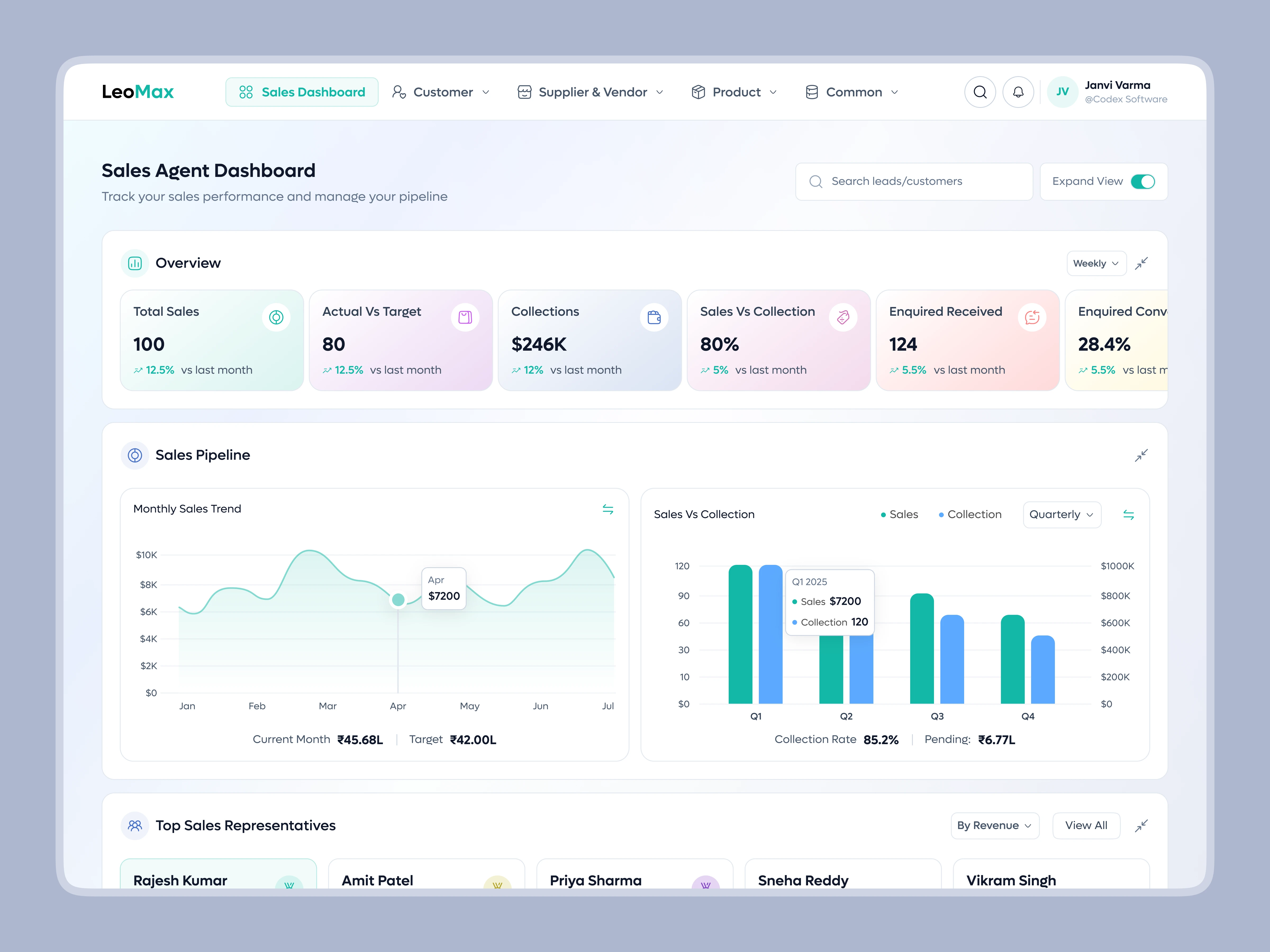 From real-time KPIs and sales trends to customer, product, and enquiry breakdowns, every section is built for clarity, speed, and decision-making.