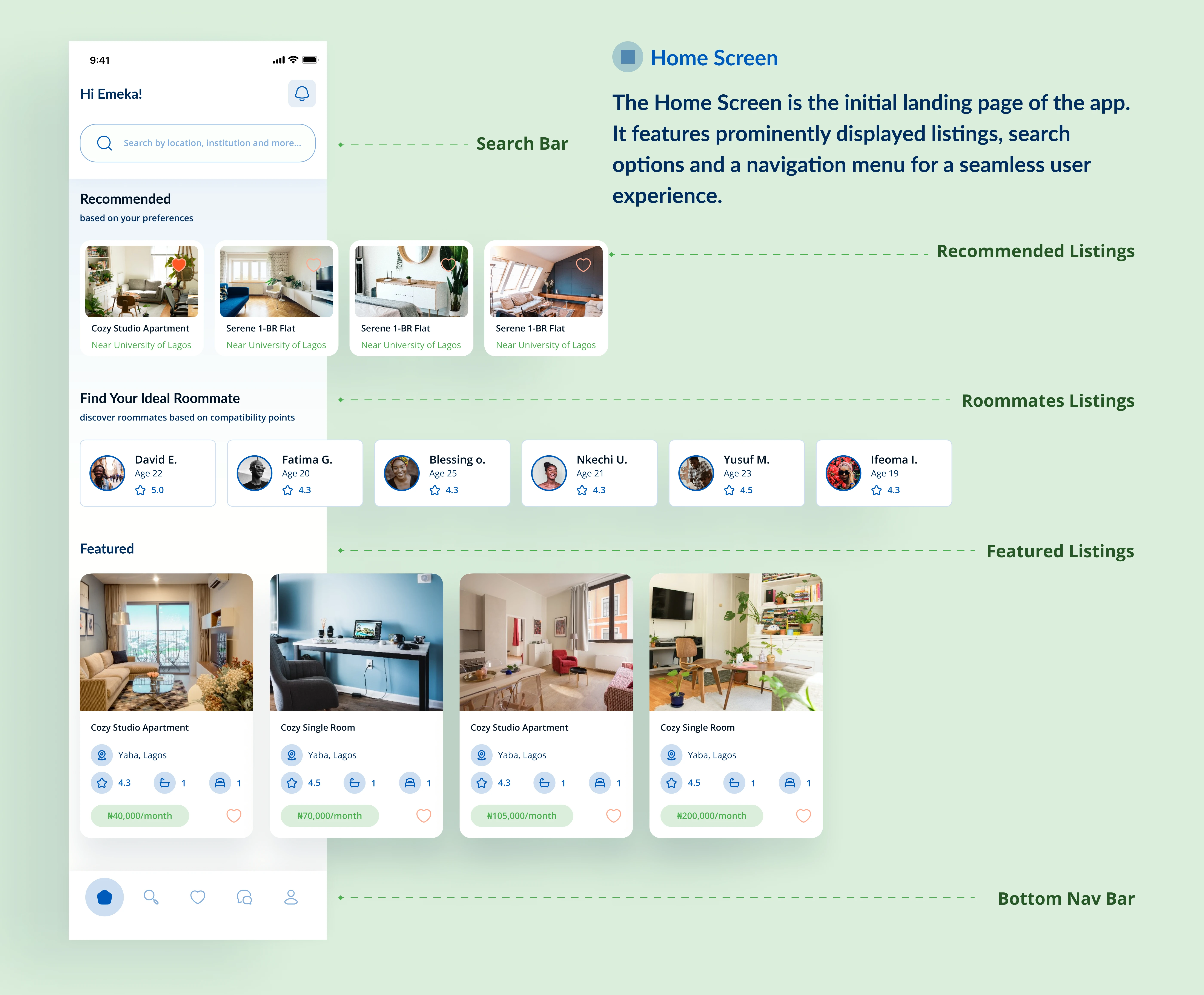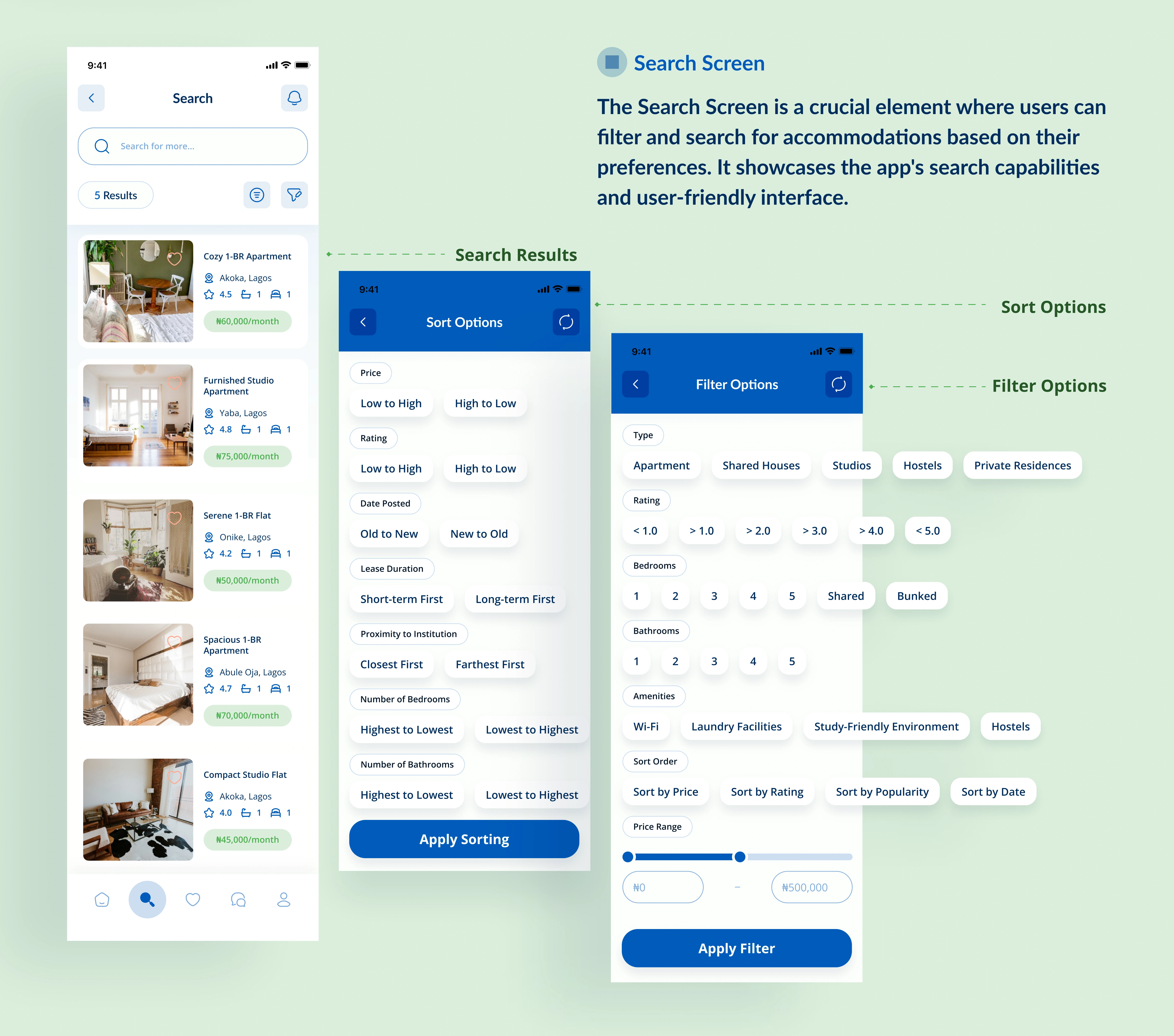 A revolutionary app transforming the student accommodation search by helping students find their ideal home near their institutions with intuitive design.