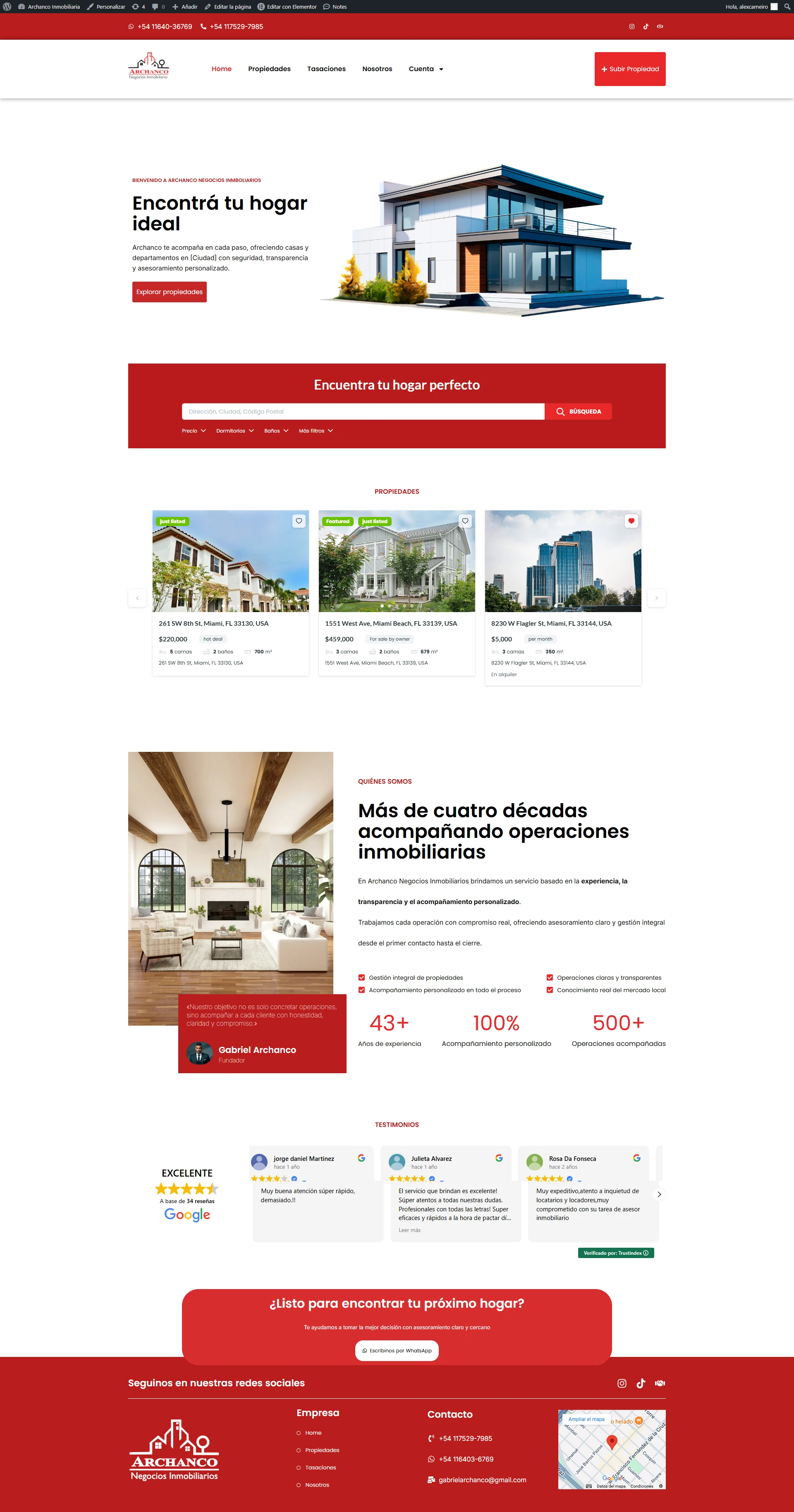 Real estate website for Archanco. Multi-page site with property listings, company history, testimonials & WhatsApp integration. Clean & responsive.