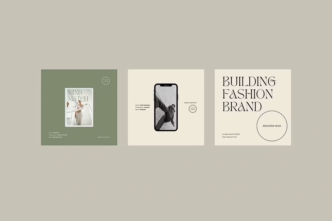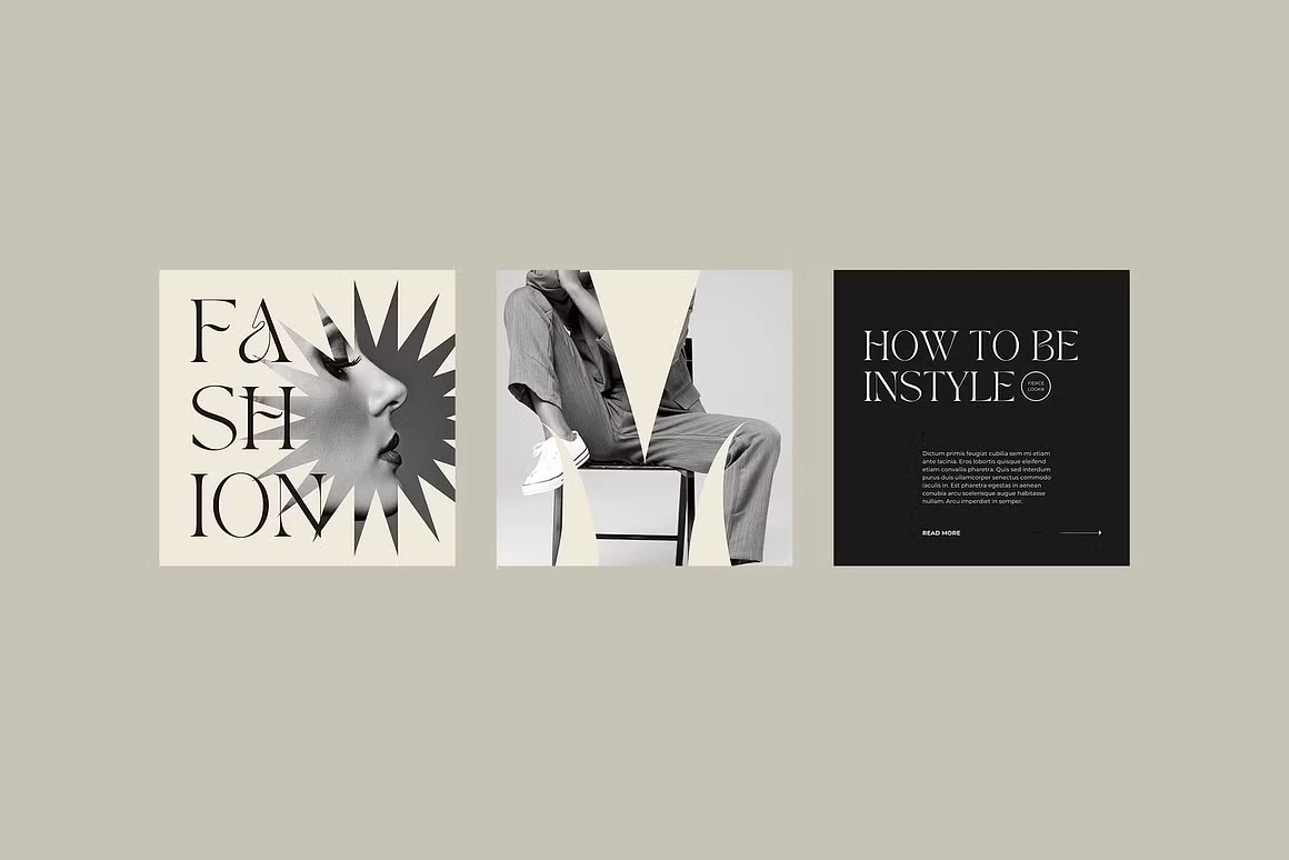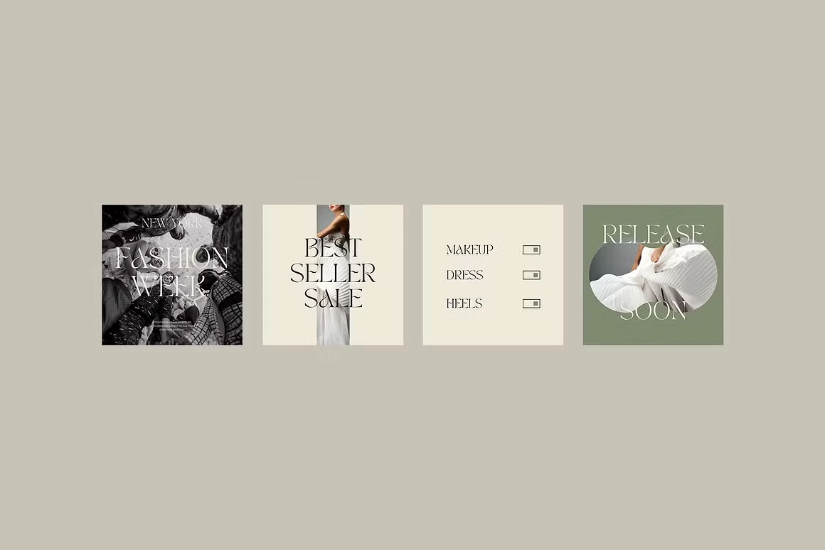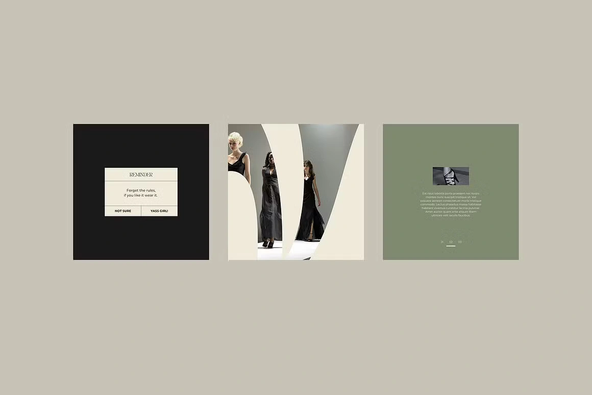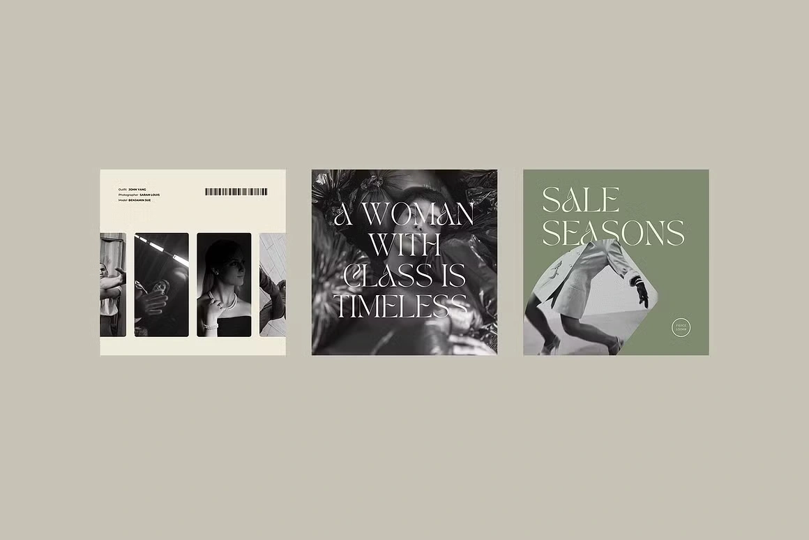 Fierce Look is a Canva social media kit built for fashion and lifestyle brands that lead with attitude. The aesthetic is editorial and unapologetically bold, deep blacks, sage greens, and warm creams paired with high-contrast serif typography that commands the feed. Templates cover everything from product drops and store announcements to quotes, lookbooks, and fashion week content. Each layout is designed to feel like a magazine spread, giving your brand a polished, high-fashion presence without the studio budget.
