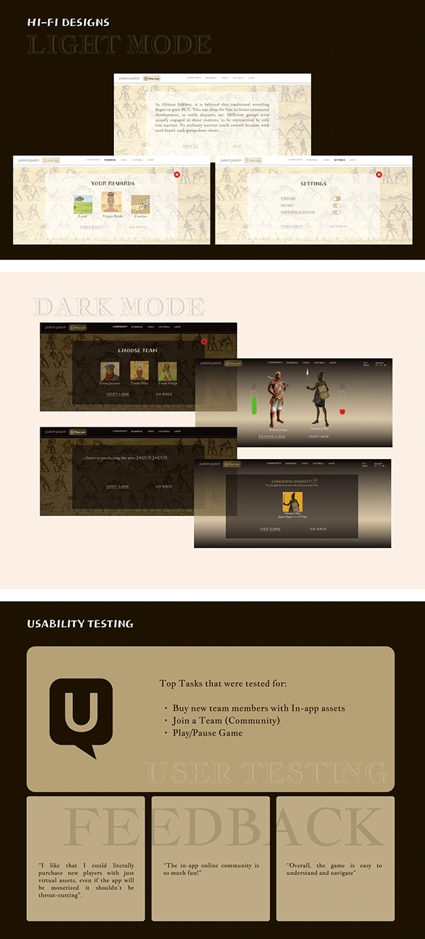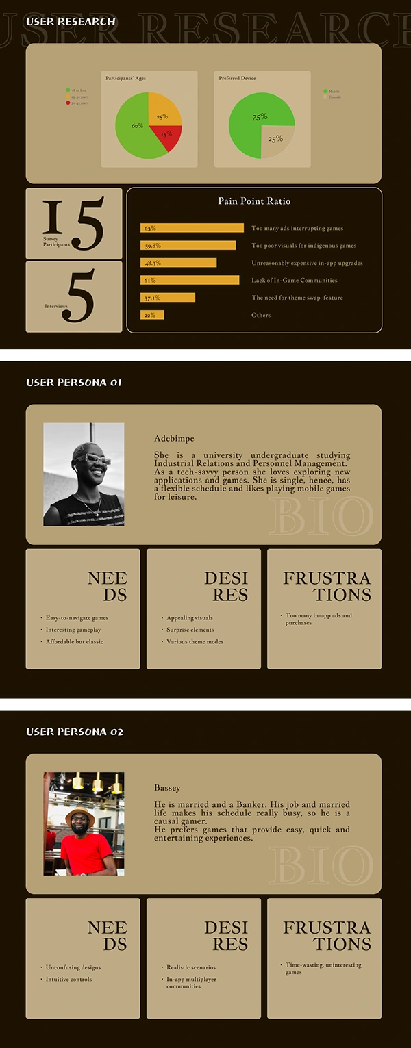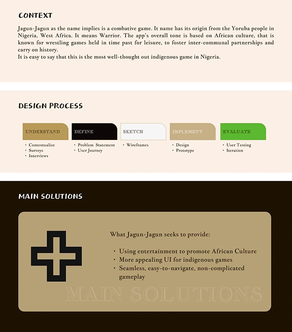 Easy-to-navigate interactive game UI, with gamer experience steeped in African Culture, and revenue generation to meet user needs & business goals as well.