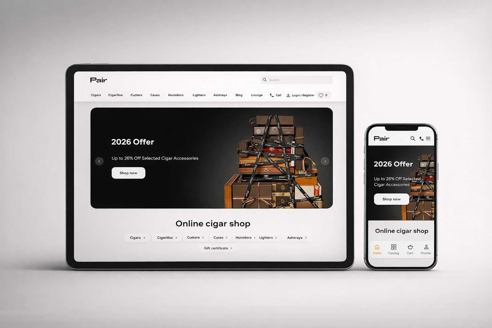 Pairstore is a premium online boutique for luxury cigars, tailored for the United Arab Emirates market. The project was aimed at a high-income audience, sensitive to status, aesthetics, service, and expertise.