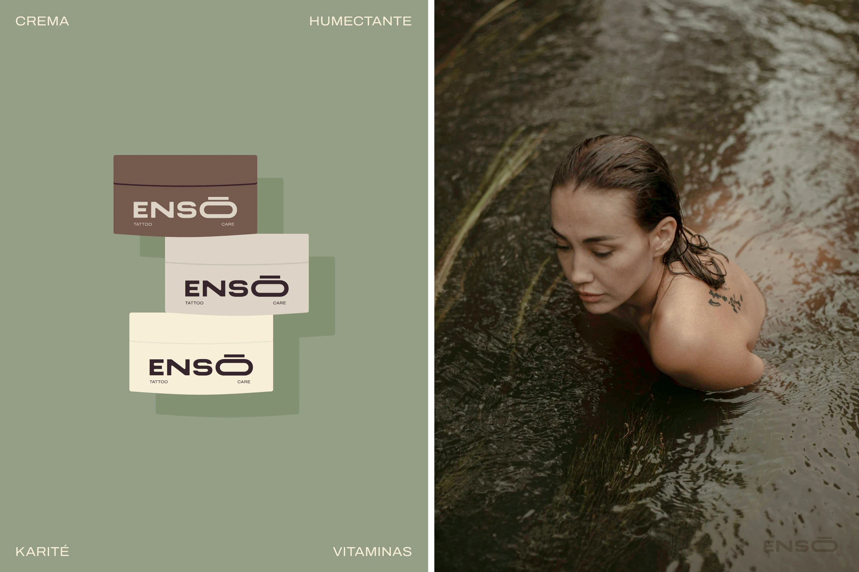 Ensō is a brand specialized in tattooed skin care, focusing on skin regeneration and protection after the tattooing process. Its product line, consisting of creams and soaps, is formulated with a carefully selected blend of vitamins and natural extracts, providing hydration, relief, and restoration to keep tattoos in optimal condition.