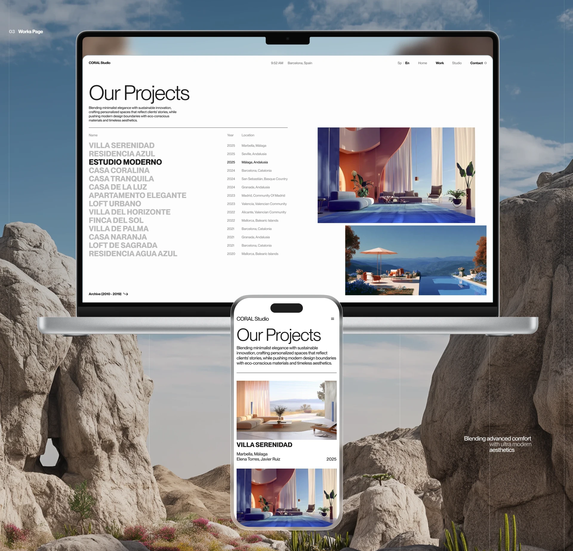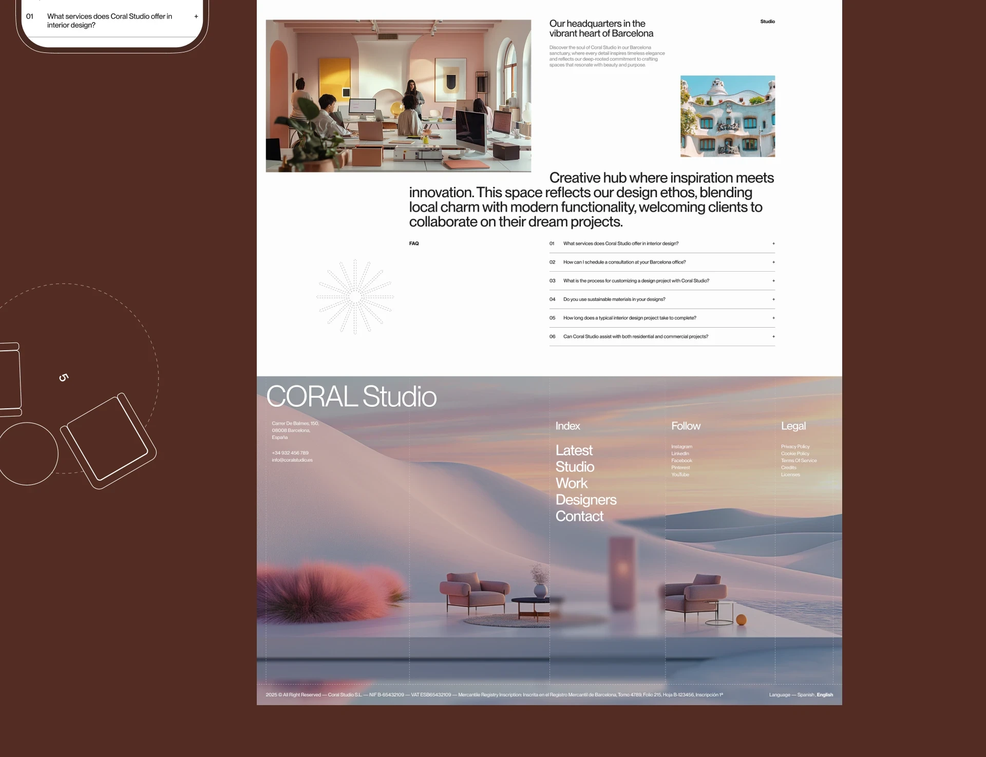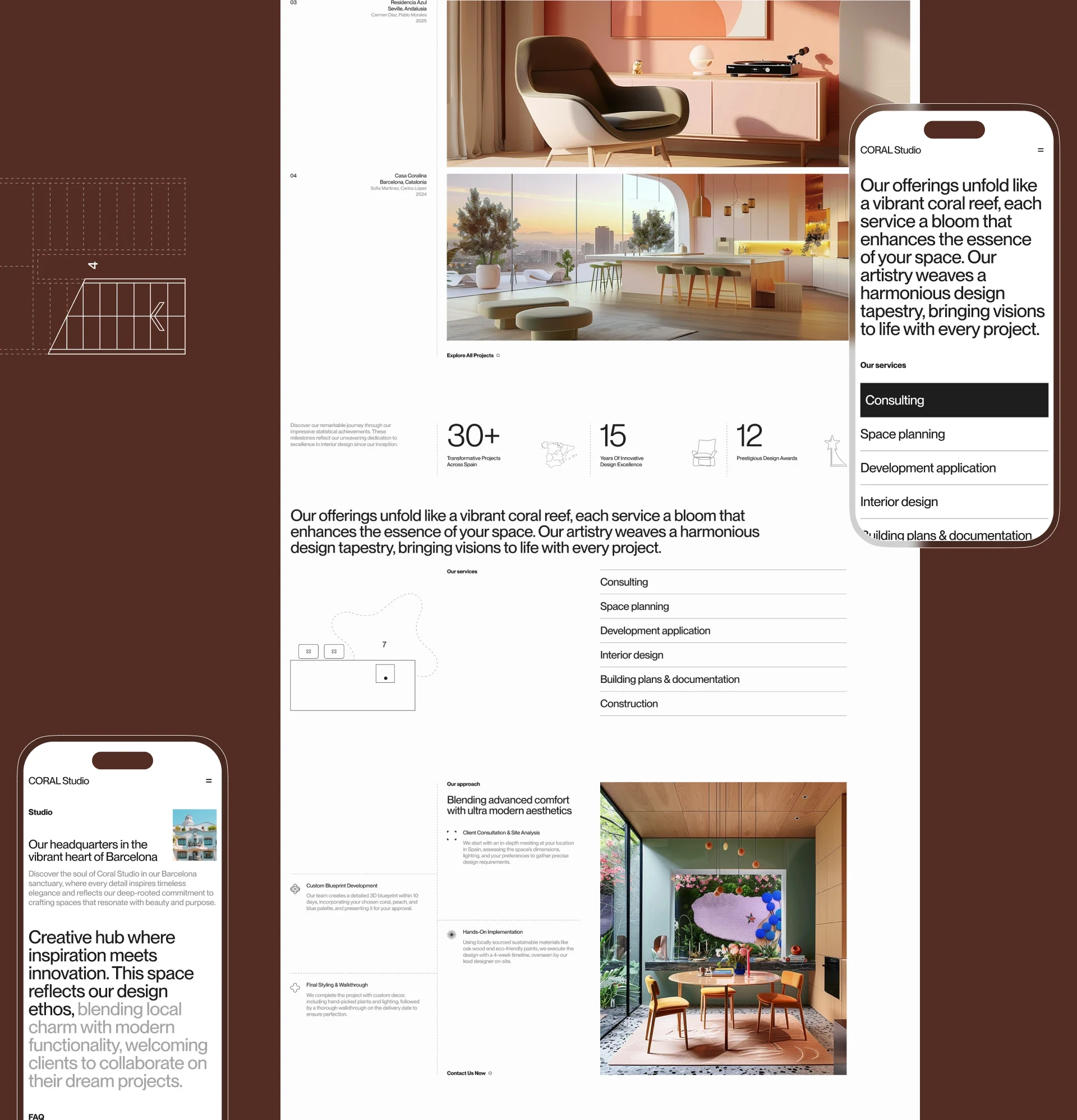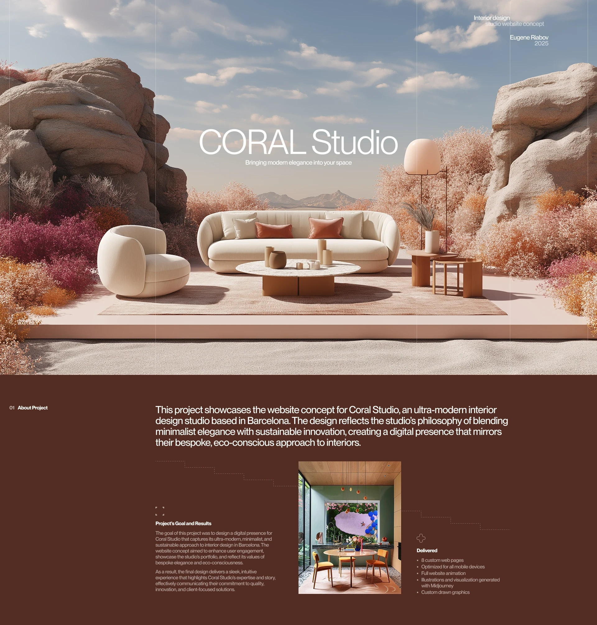 Sleek web design concept created for Coral Studio, an ultra-modern interior design studio based in Barcelona.