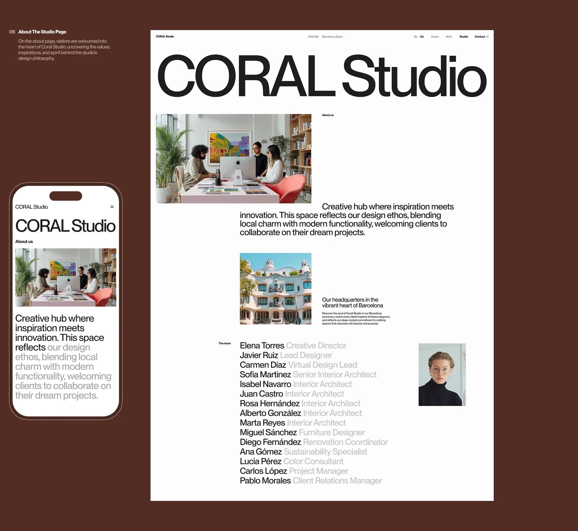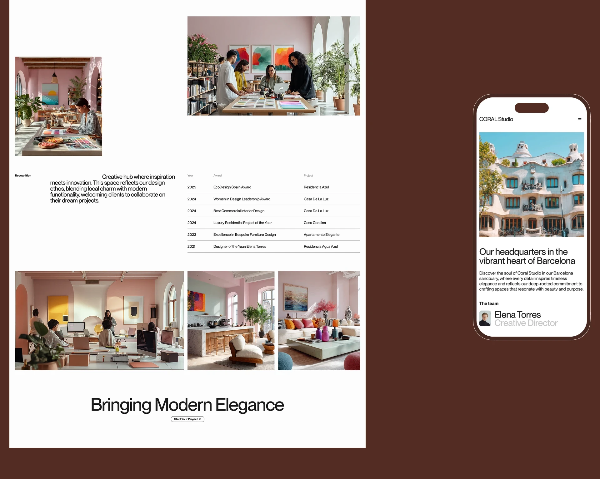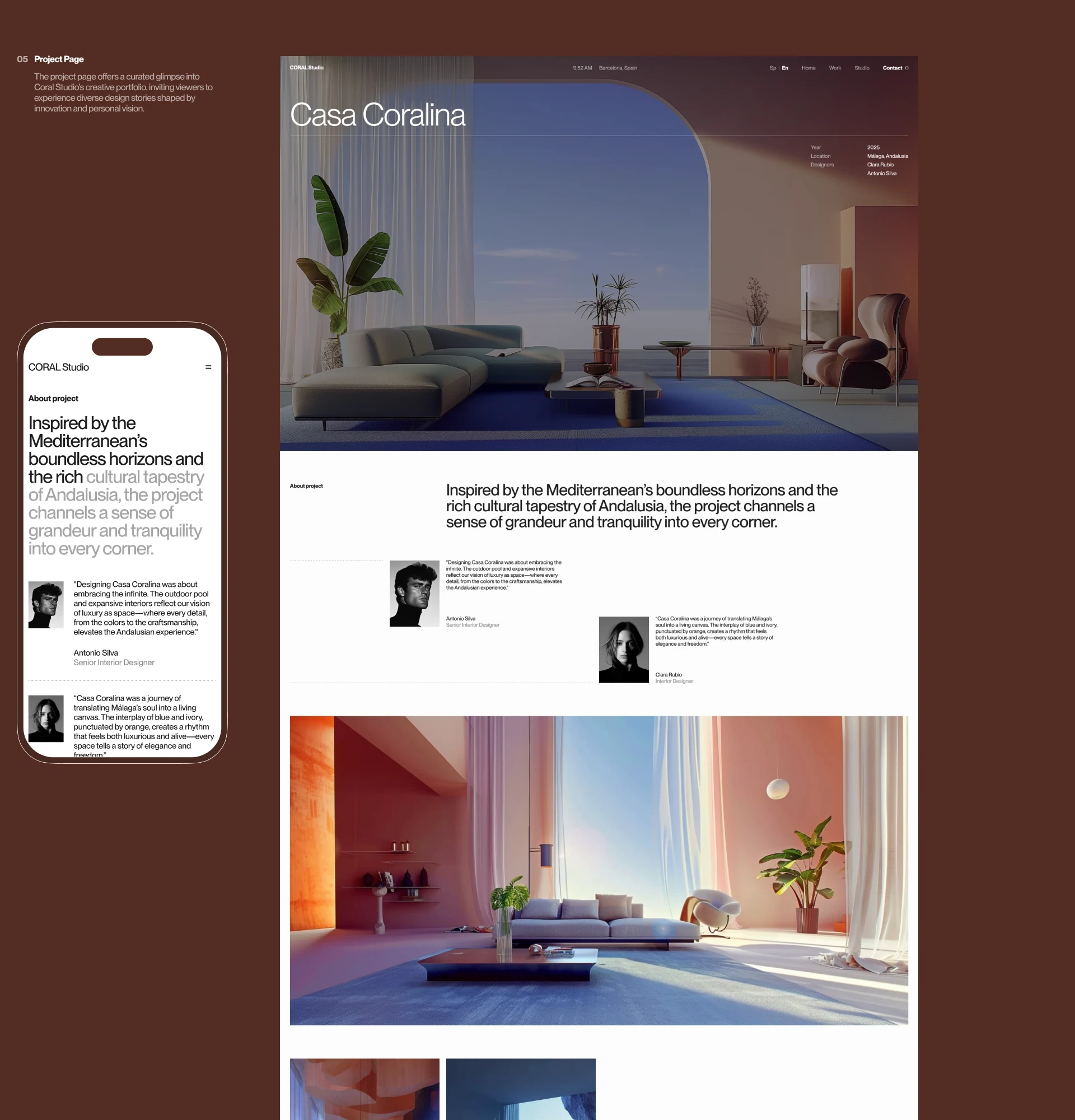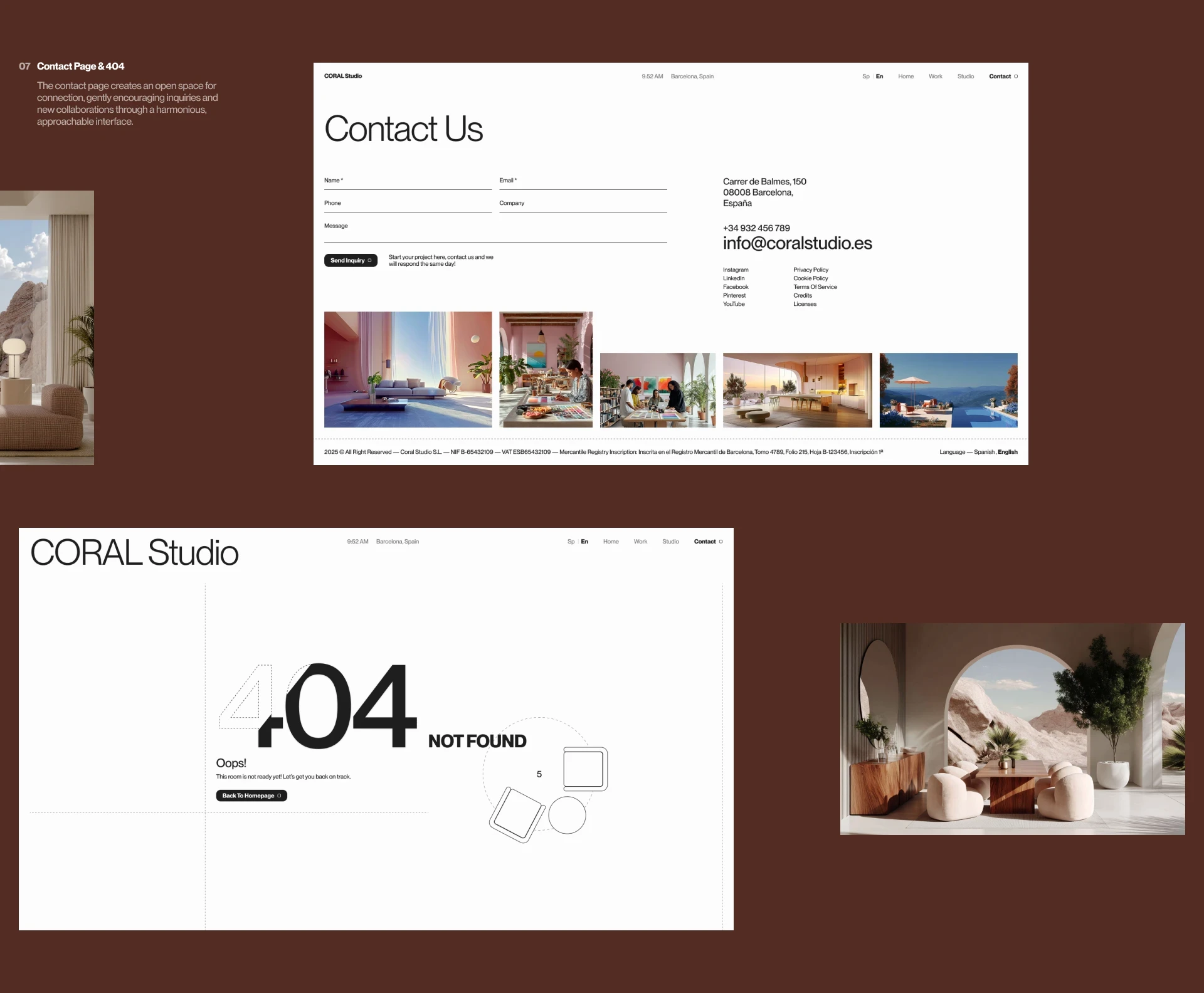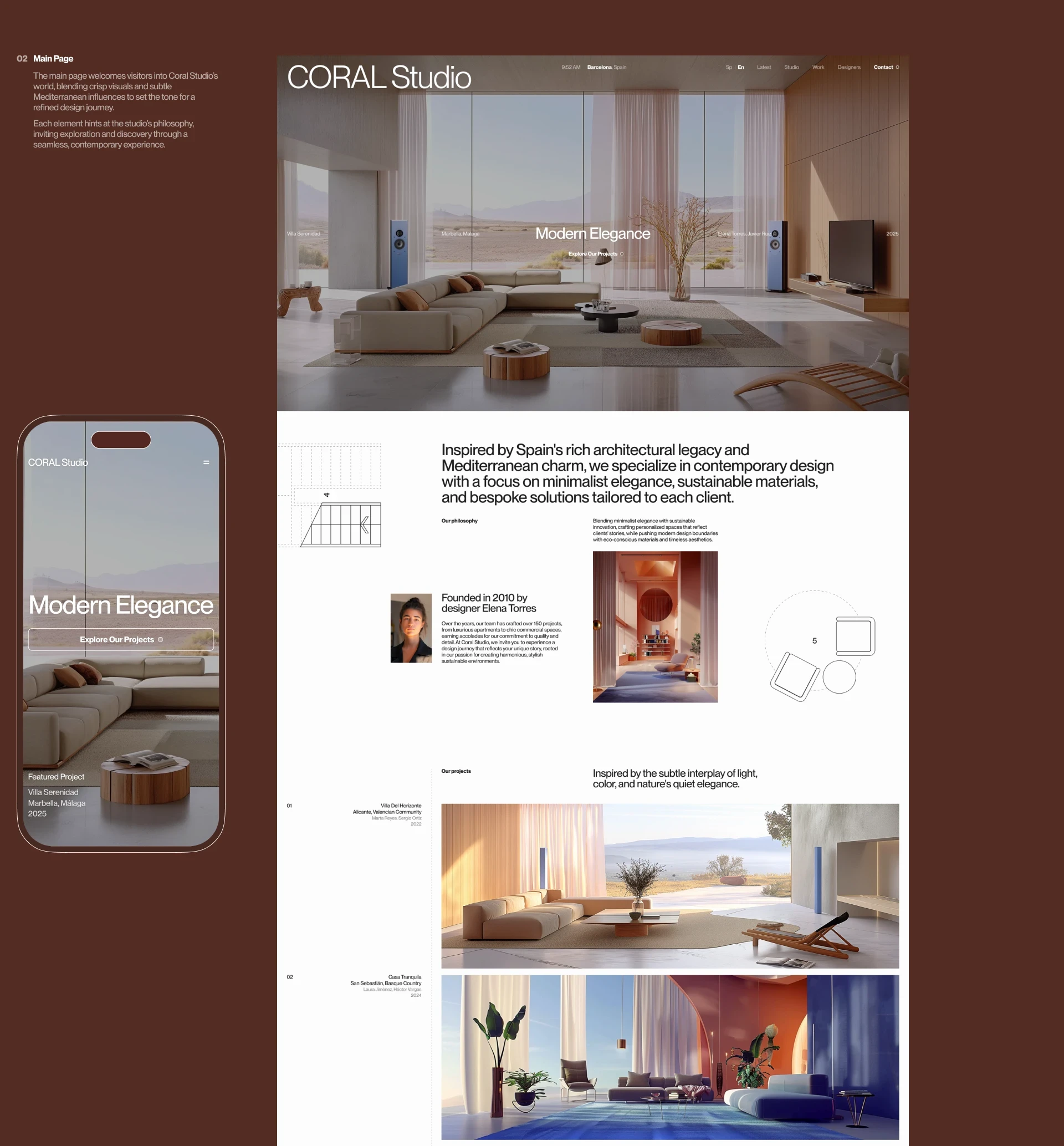 Sleek web design concept created for Coral Studio, an ultra-modern interior design studio based in Barcelona.