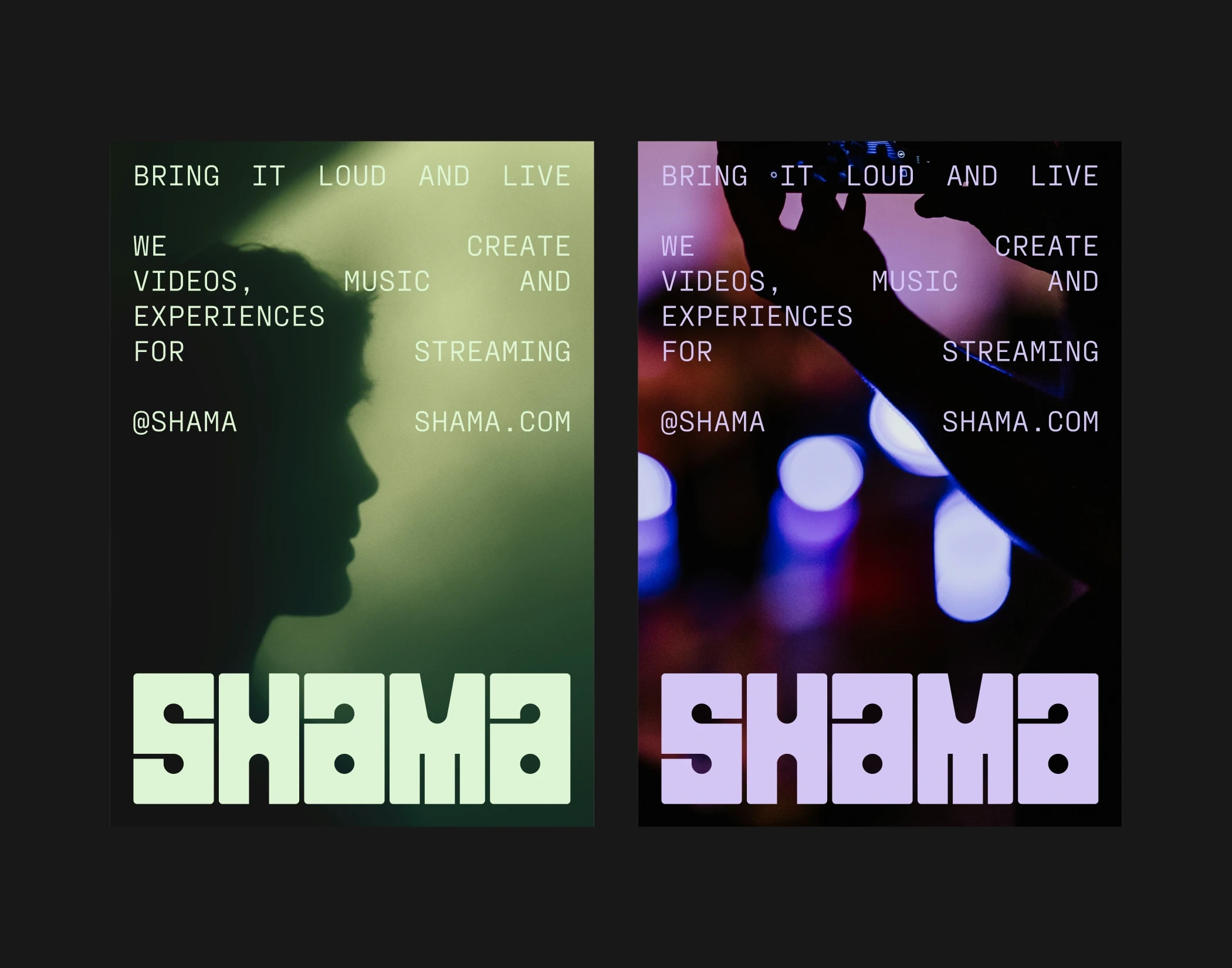 SHAMA is a creative agency that embraces an immersive approach to digital content. Conceived as a live production studio, the brand develops an engaged vision of streaming, where media becomes experience. Its motto, “Bring it loud and live”, reflects a clear intent: to make formats — and audiences — resonate.