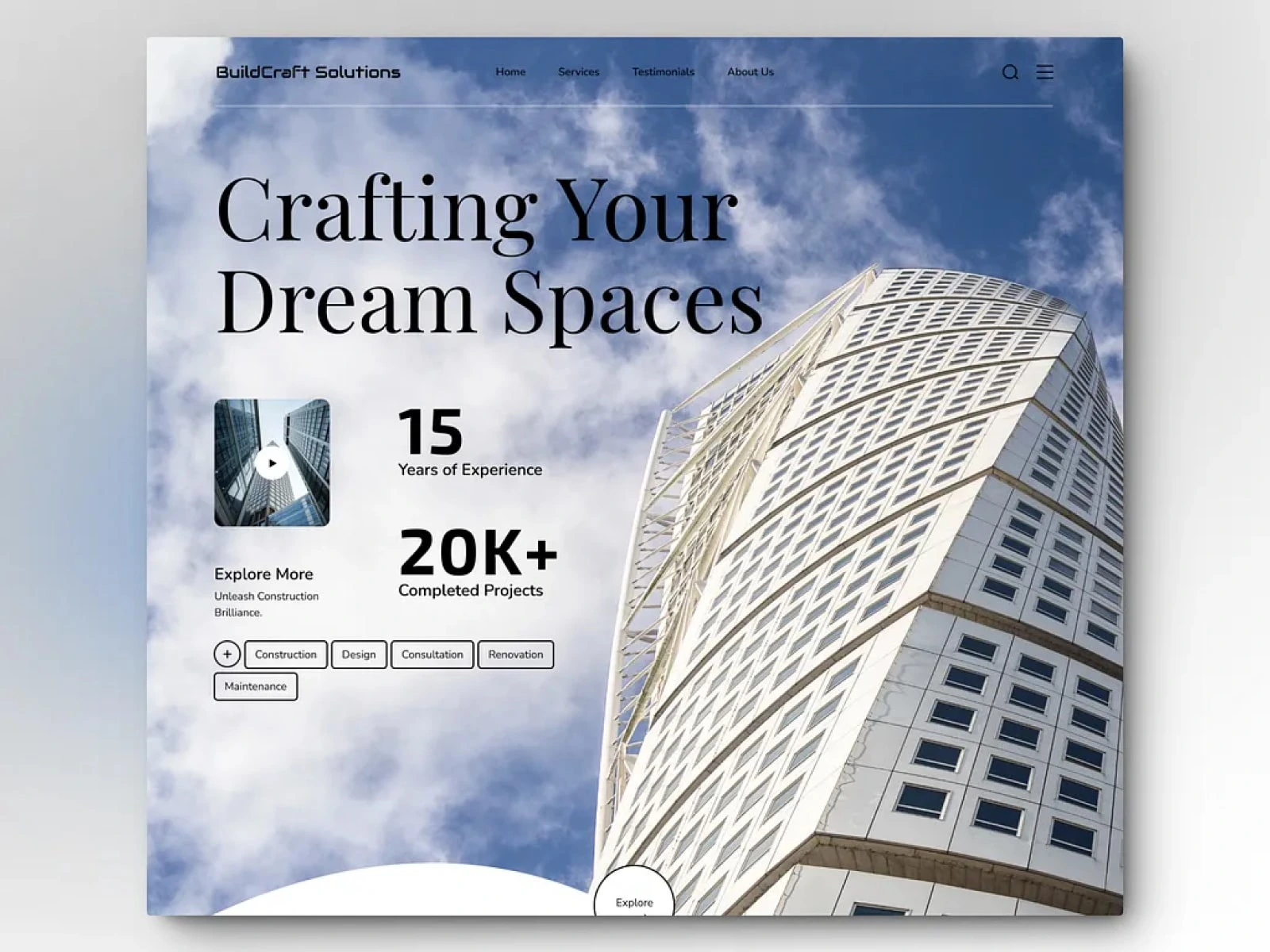 ๐ Bold trust metrics front and center โ 15 Years & 20K+ Projects โ no words needed
