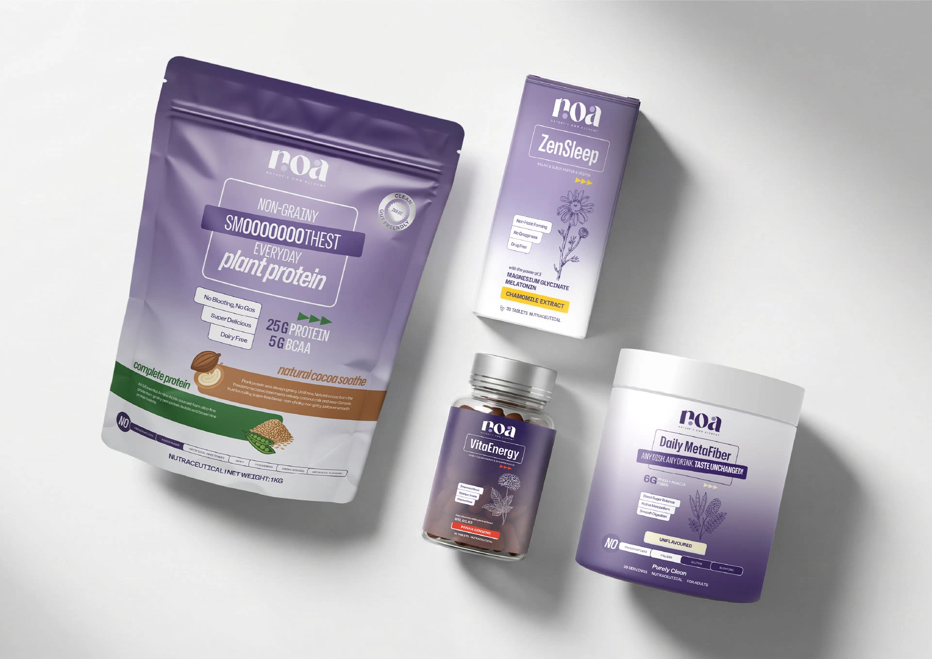 NOA is a premium health supplement brand designed to simplify decision-making in a crowded wellness market. The packaging focuses on clarity, trust, and shelf impact, ensuring customers understand the product benefits at a single glance.
