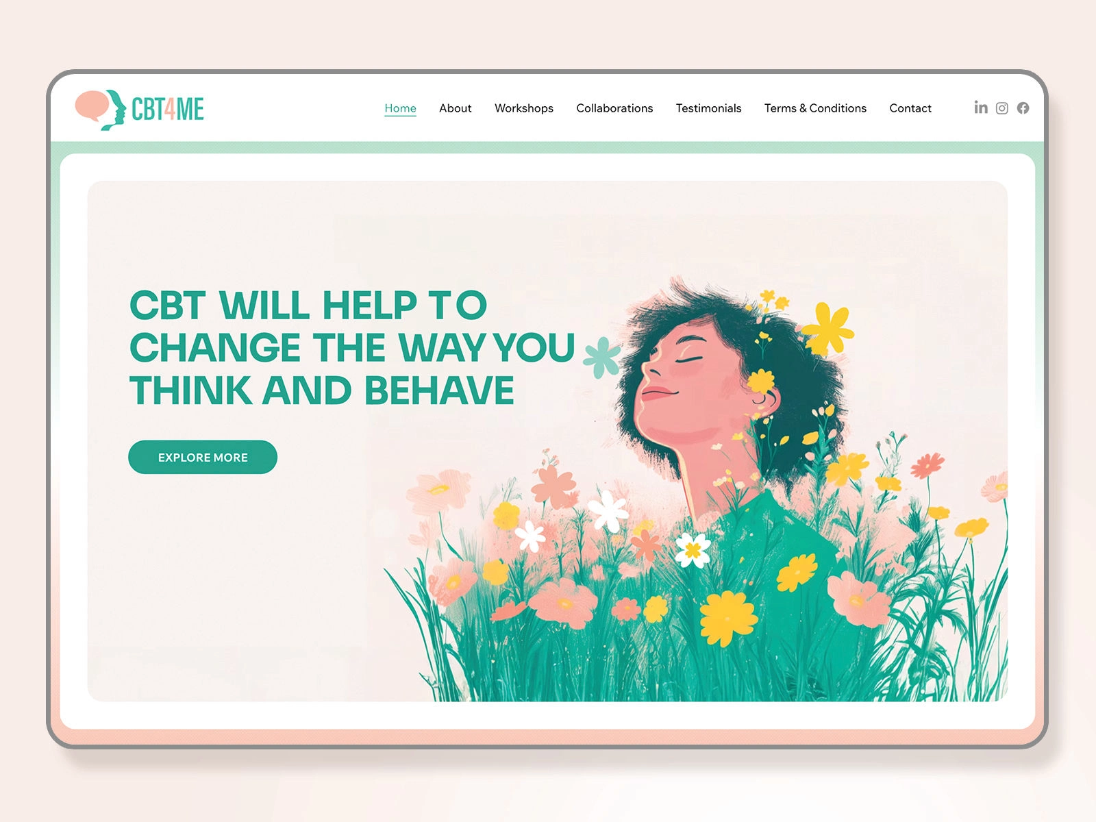 Working closely with my client, we defined a soft pastel colour palette to set a calming, approachable tone. Rather than using stock images, we decided that custom illustrations would best convey the complexity of mental health. Using my advanced skills in AI tools like MidJourney, I created a series of bespoke illustrations that visualised abstract concepts, such as different mental states, in a way that feels relatable and visually engaging. This approach allowed us to communicate sensitive themes with lightness, creativity, and clarity.