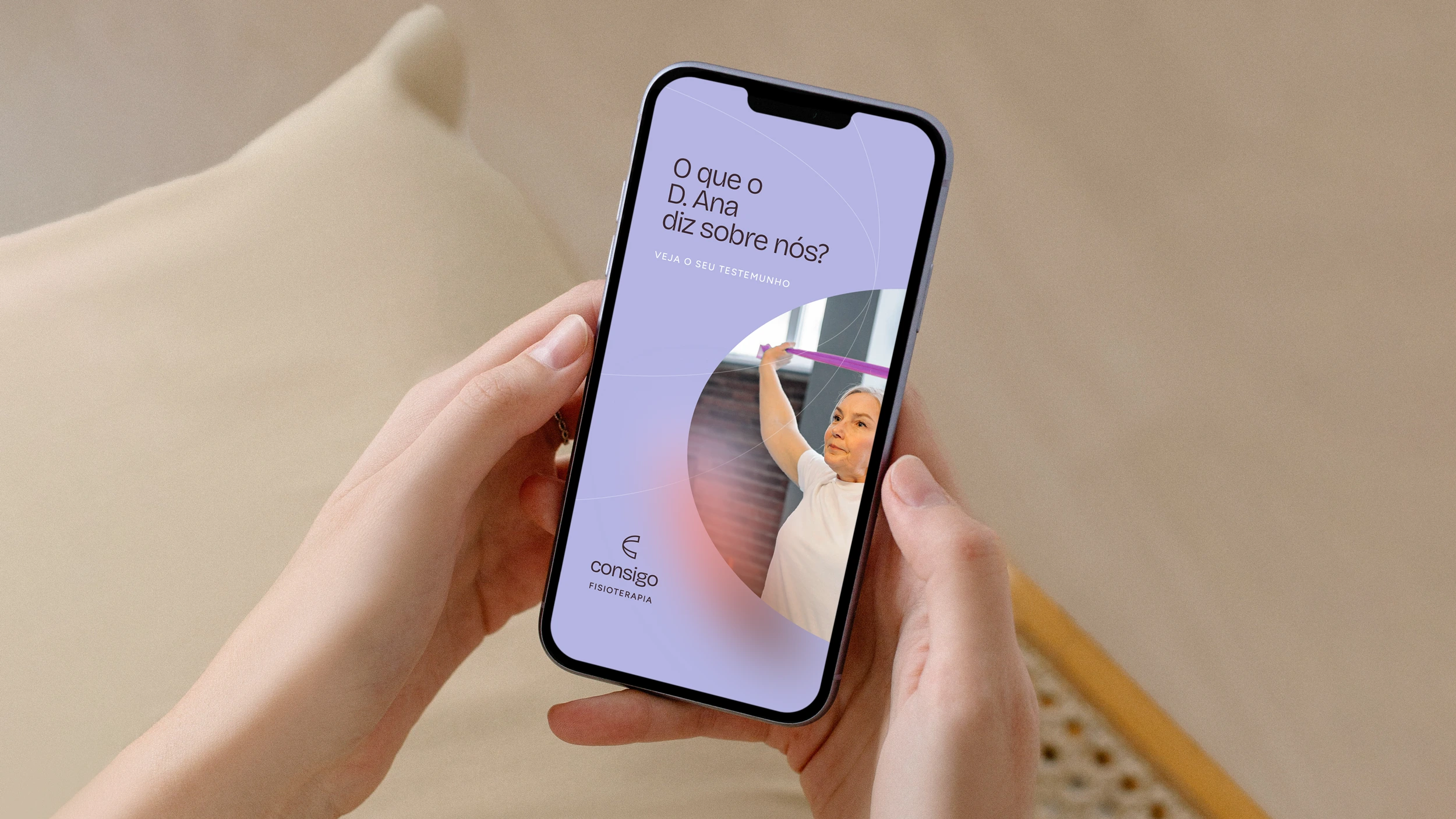 Consigo, located in Amadora, Portugal, is dedicated to recovery, prevention, and the promotion of physical well-being, with a personalized, patient-centered approach. With a team of experienced professionals, it employs advanced physiotherapy techniques to treat injuries, relieve pain, and improve the quality of life of its patients, always with a strong sense of closeness and care. After a decade of existence, the space underwent an internal restructuring, giving rise to a new identity, a new name, and a renewed strength – this is how Consigo was born! In Portuguese, "Consigo" means "with you," reinforcing the brand's commitment to a personalized and close-knit approach. To mark this important moment, I was invited to develop the new identity and all the communication for the space.