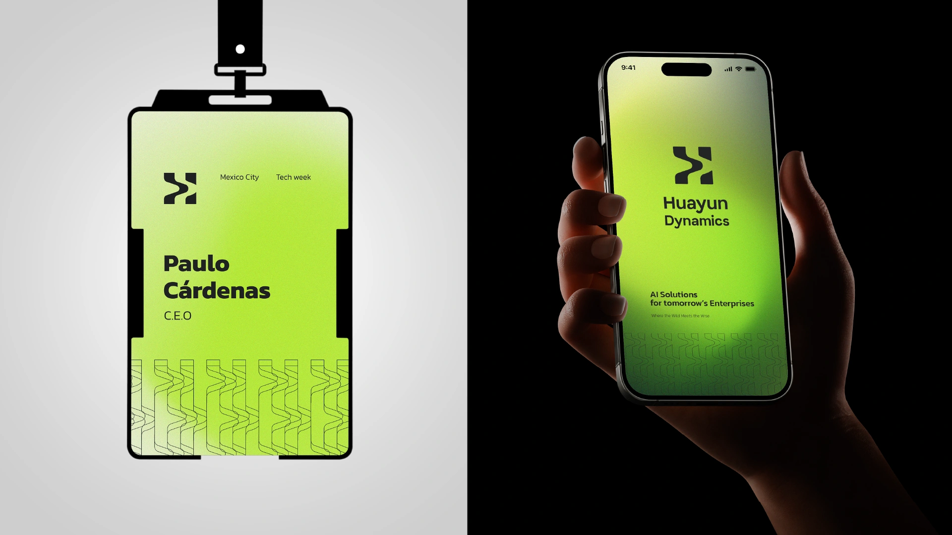 Huayun Dynamics is an AI solutions company based in Chilean Patagonia, with a concept that combines human wisdom with the technological innovation of artificial intelligence. For this project, we created their visual identity, logo, color palette, textures, and correct use of these elements to create their landing page and various materials that required art direction.