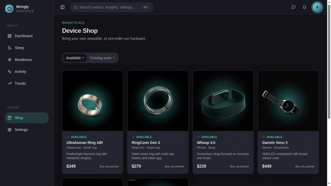 Bring your own ring. Don't gate the experience on proprietary hardware. Sync from any wearable the user already owns.