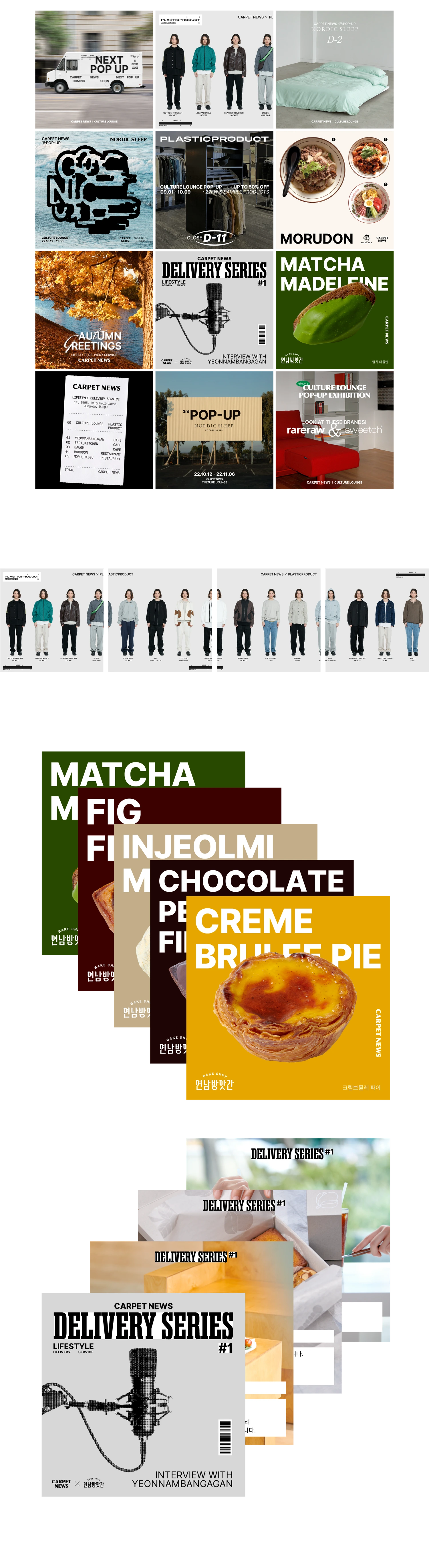Visual direction for Carpet News’ social media, with a feed designed to harmonize typography and photography. The layout emphasized an editorial tone to make current events feel more curated and approachable. A consistent visual rhythm enhanced brand credibility and engagement across digital platforms.